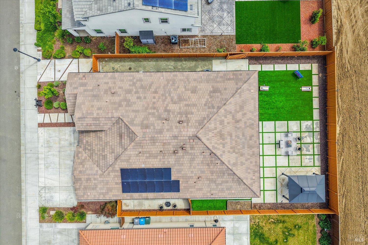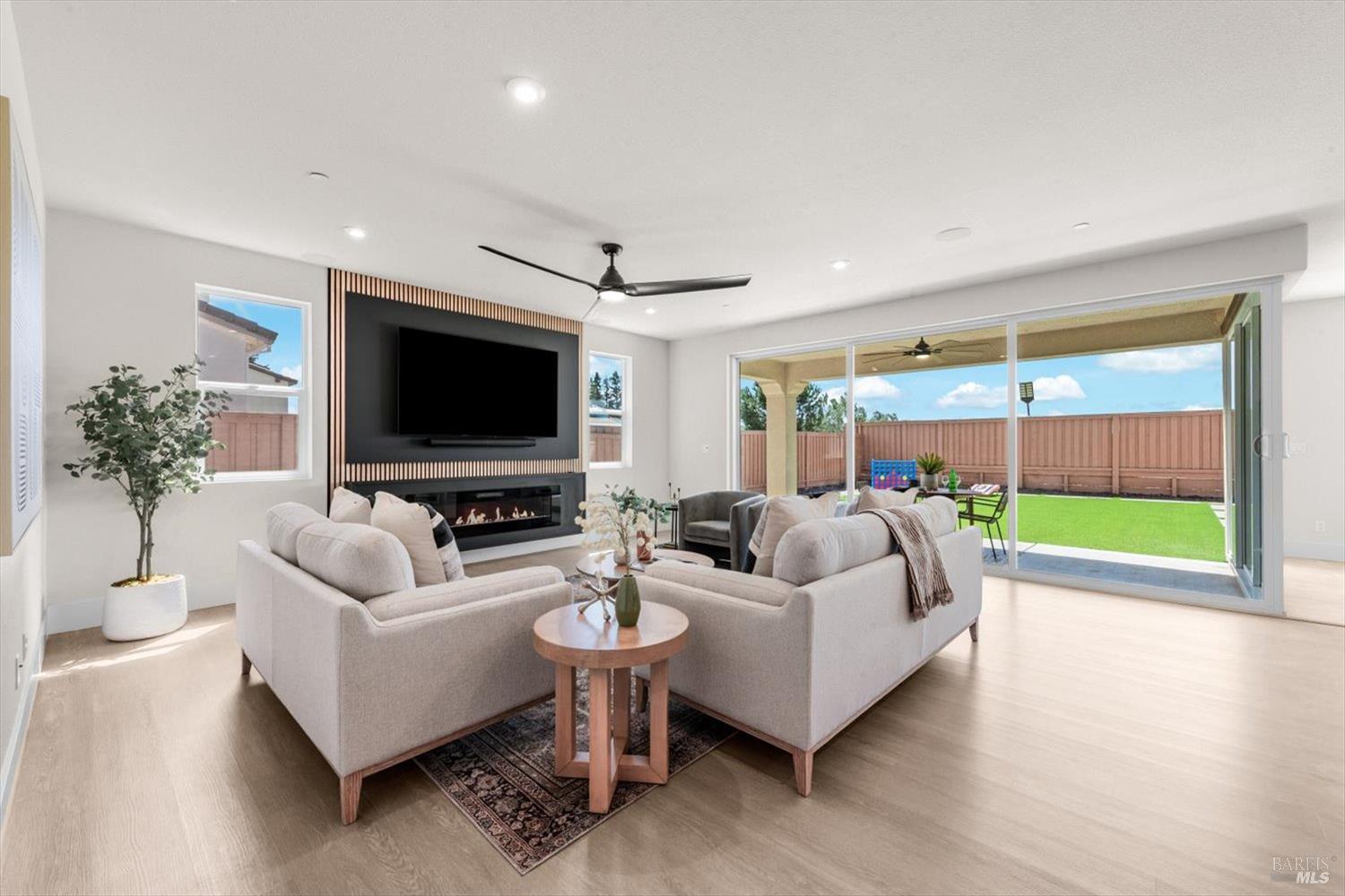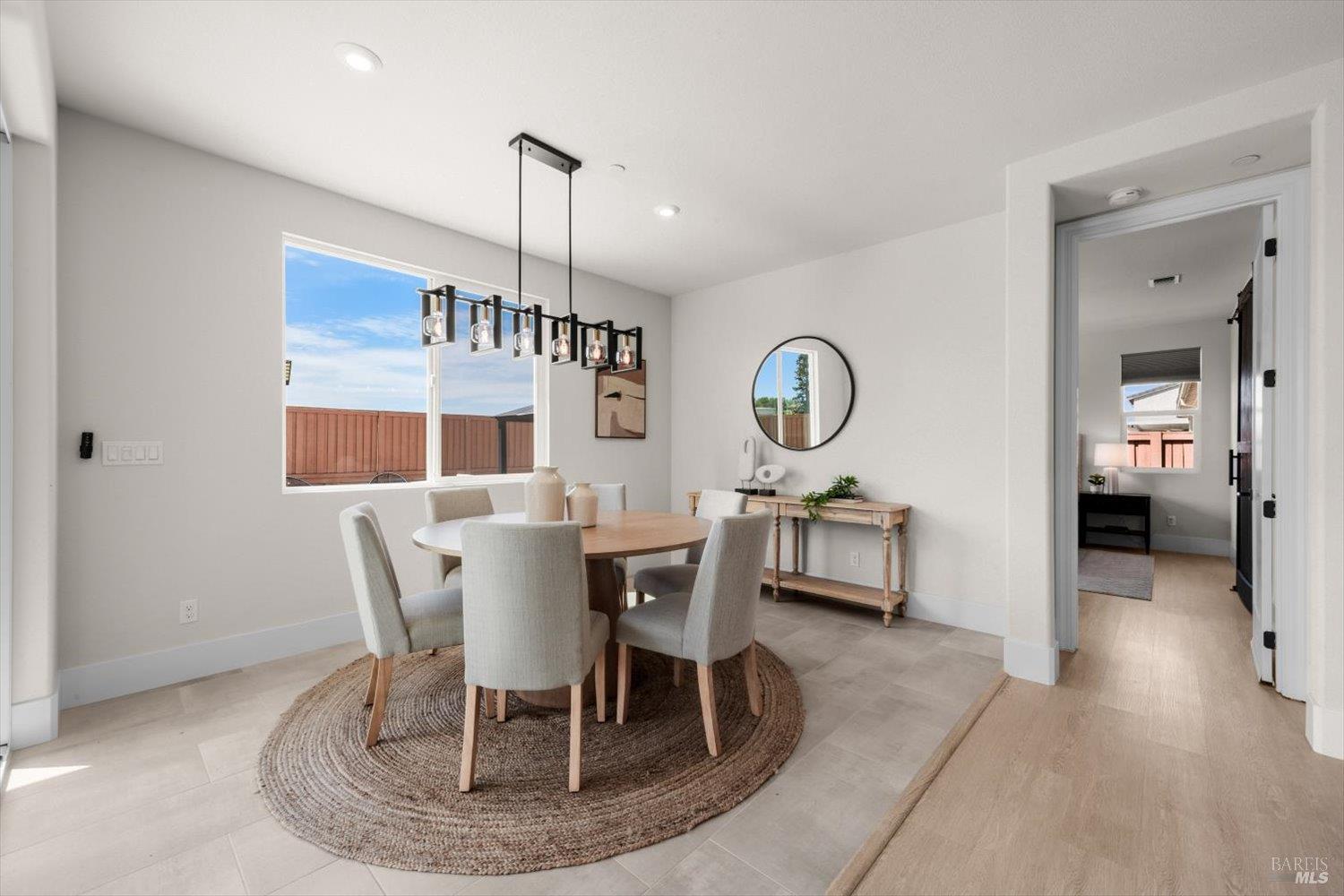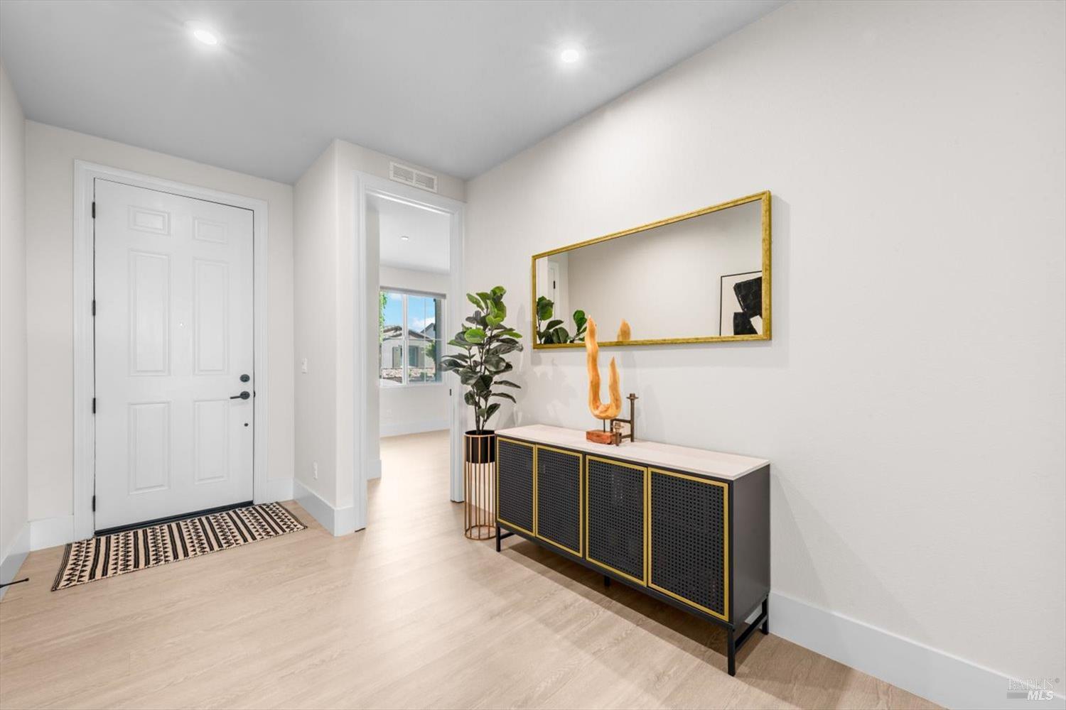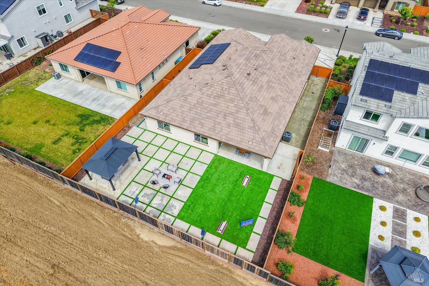 1455 Blossom Way offers nearly 3,000 square feet of single-story living, a 3-car garage, and an attached private, independent living suite. The main home is defined by a floor-to-ceiling, expansive sliding glass door that creates a seamless connection to the outdoors. Built in 2022, this 4-bedroom plus office, 3.5-bathroom home blends modern design with today's living needs. A welcoming entry and elegant hallway lead into the main living space, featuring 9-foot ceilings, where the kitchen, dining, and living areas come together in an open and inviting layout. A striking floor-to-ceiling, sliding glass door spans two walls, creating a seamless connection to the backyard, taking indoor-outdoor living to a whole new level. The kitchen showcases a transitional aesthetic with light gray cabinetry, gold hardware, quartz countertops, a gas cooktop, and a walk-in pantry, blending classic design with current finishes that feel both fresh and timeless. The primary suite offers a spacious retreat with an oversized tiled walk-in shower, dual sinks, and a large walk-in closet with built-in organizers. A dedicated office features a unique interior glass window, creating a connected workspace while still offering separation. Additional highlights include a walk-in laundry room with added storage. Privately positioned, the attached suite includes its own entrance, living room, bedroom, kitchenette, shower stall, walk-in closet, and laundry hookups and private patio. This flexible space works well for extended living, guests, or additional income potential. The backyard provides generous space to gather whether you want to relax or play games on the open turf, all while backing to open space for added privacy. With tall the benefits of newer construction, including energy efficiency, modern systems, plus completed landscaping, this home is move-in ready and conveniently located just minutes from I-80. If you have been searching for true multigenerational living with elevated design, this home delivers.