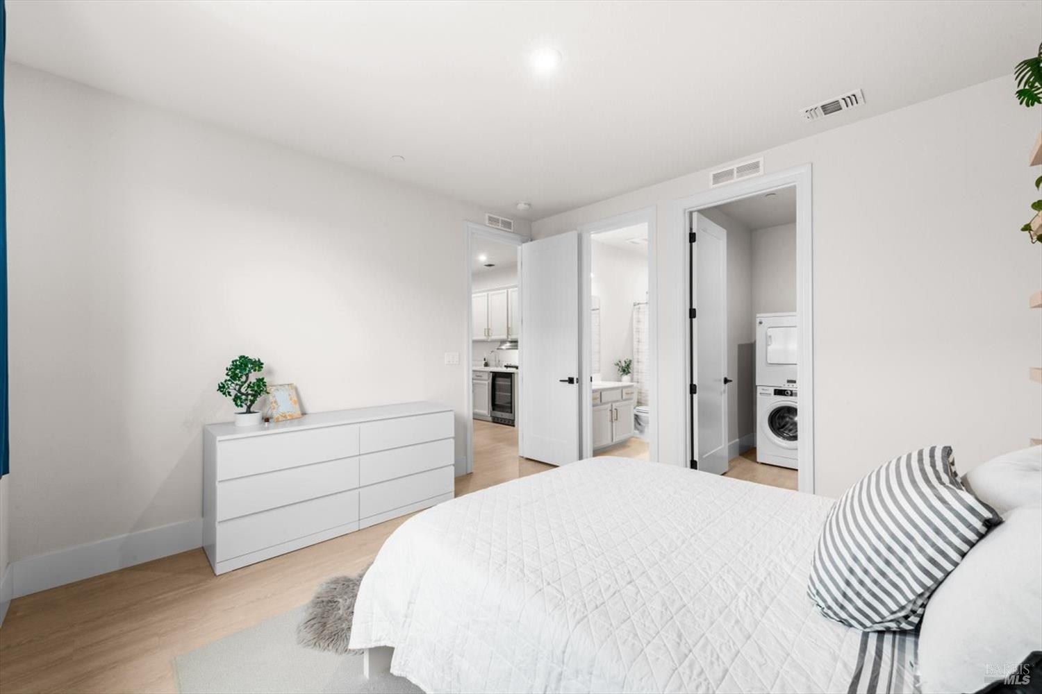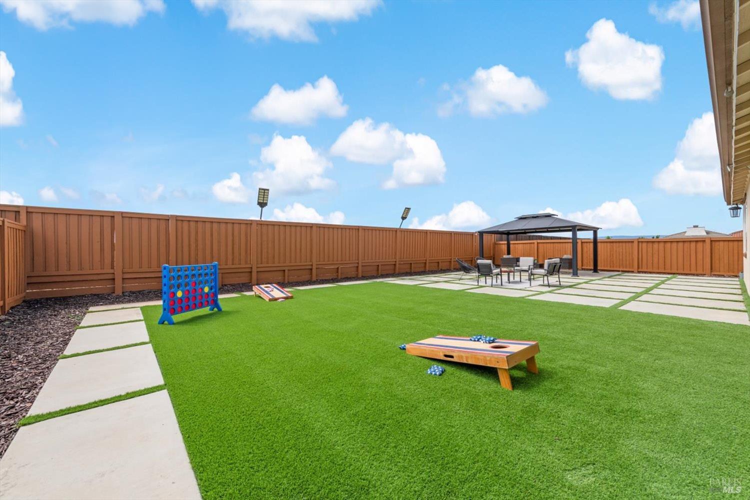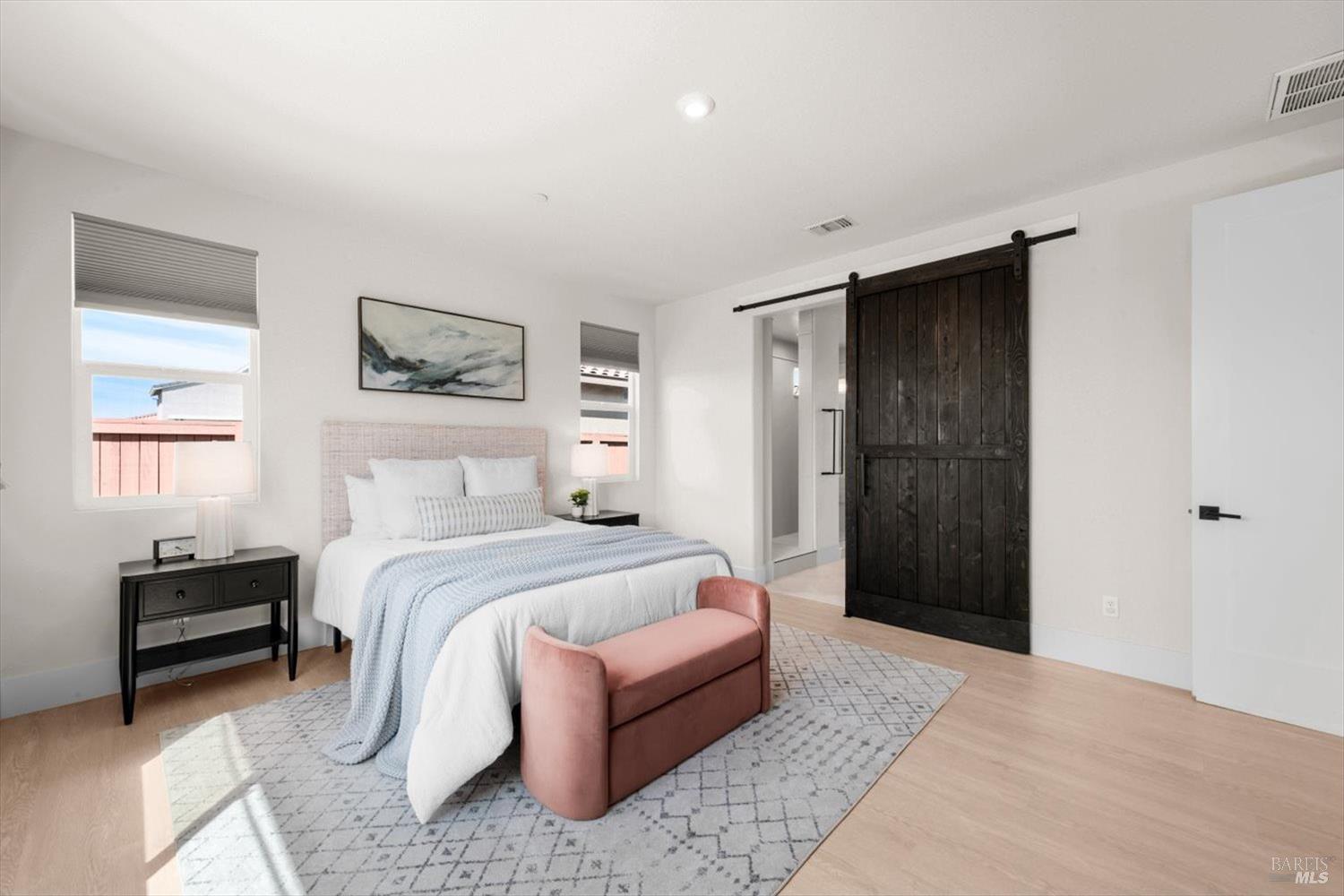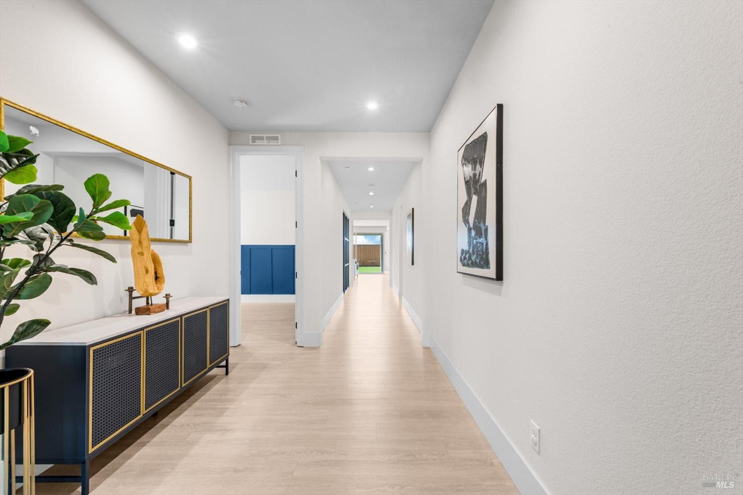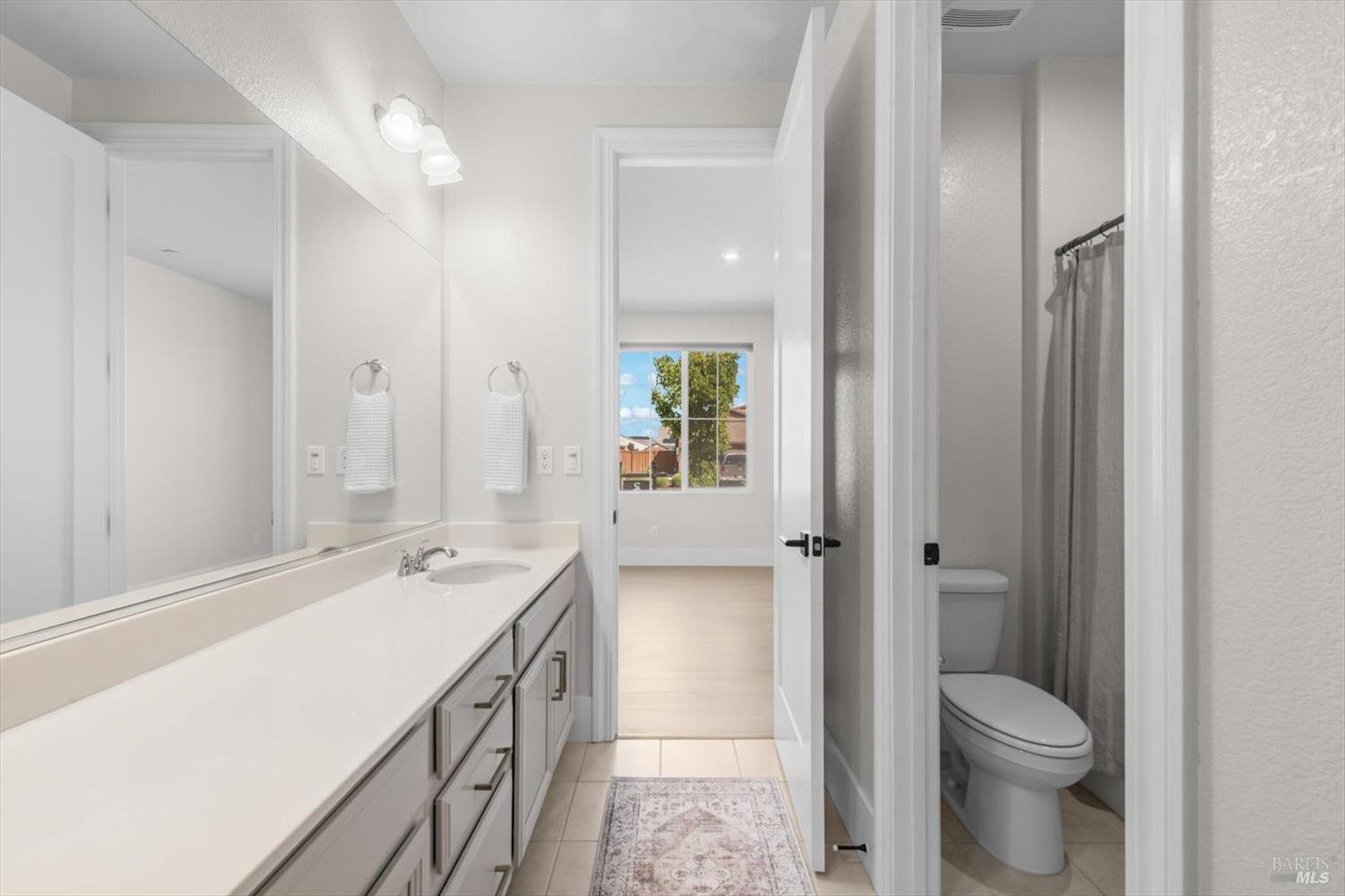 1455 Blossom Way offers nearly 3,000 square feet of single-story living, a 3-car garage, and an attached private, independent living suite. The main home is defined by a floor-to-ceiling, expansive sliding glass door that creates a seamless connection to the outdoors. Built in 2022, this 4-bedroom plus office, 3.5-bathroom home blends modern design with today's living needs. A welcoming entry and elegant hallway lead into the main living space, featuring 9-foot ceilings, where the kitchen, dining, and living areas come together in an open and inviting layout. A striking floor-to-ceiling, sliding glass door spans two walls, creating a seamless connection to the backyard, taking indoor-outdoor living to a whole new level. The kitchen showcases a transitional aesthetic with light gray cabinetry, gold hardware, quartz countertops, a gas cooktop, and a walk-in pantry, blending classic design with current finishes that feel both fresh and timeless. The primary suite offers a spacious retreat with an oversized tiled walk-in shower, dual sinks, and a large walk-in closet with built-in organizers. A dedicated office features a unique interior glass window, creating a connected workspace while still offering separation. Additional highlights include a walk-in laundry room with added storage. Privately positioned, the attached suite includes its own entrance, living room, bedroom, kitchenette, shower stall, walk-in closet, and laundry hookups and private patio. This flexible space works well for extended living, guests, or additional income potential. The backyard provides generous space to gather whether you want to relax or play games on the open turf, all while backing to open space for added privacy. With tall the benefits of newer construction, including energy efficiency, modern systems, plus completed landscaping, this home is move-in ready and conveniently located just minutes from I-80. If you have been searching for true multigenerational living with elevated design, this home delivers.