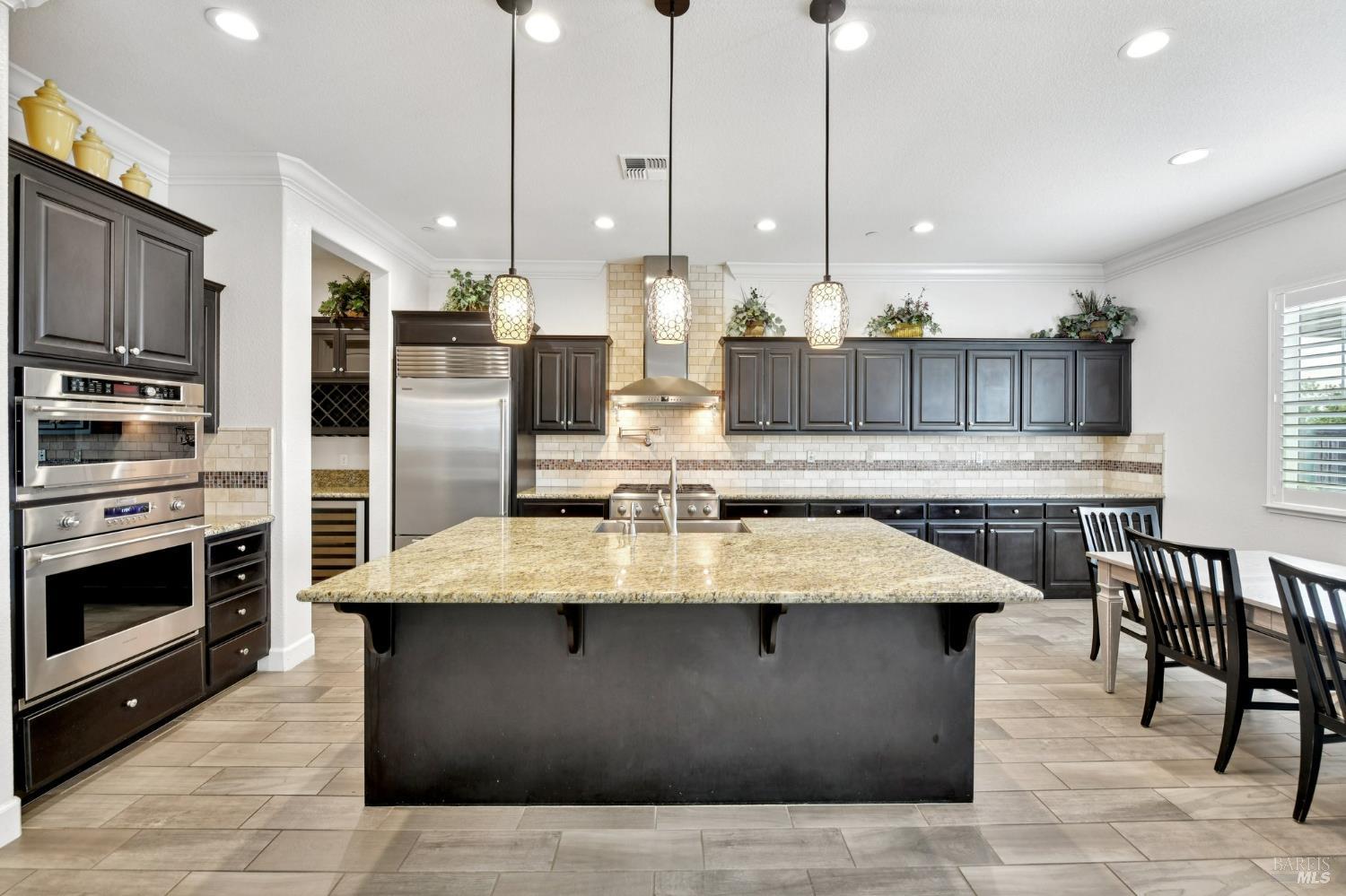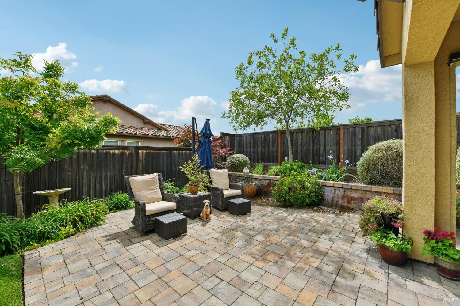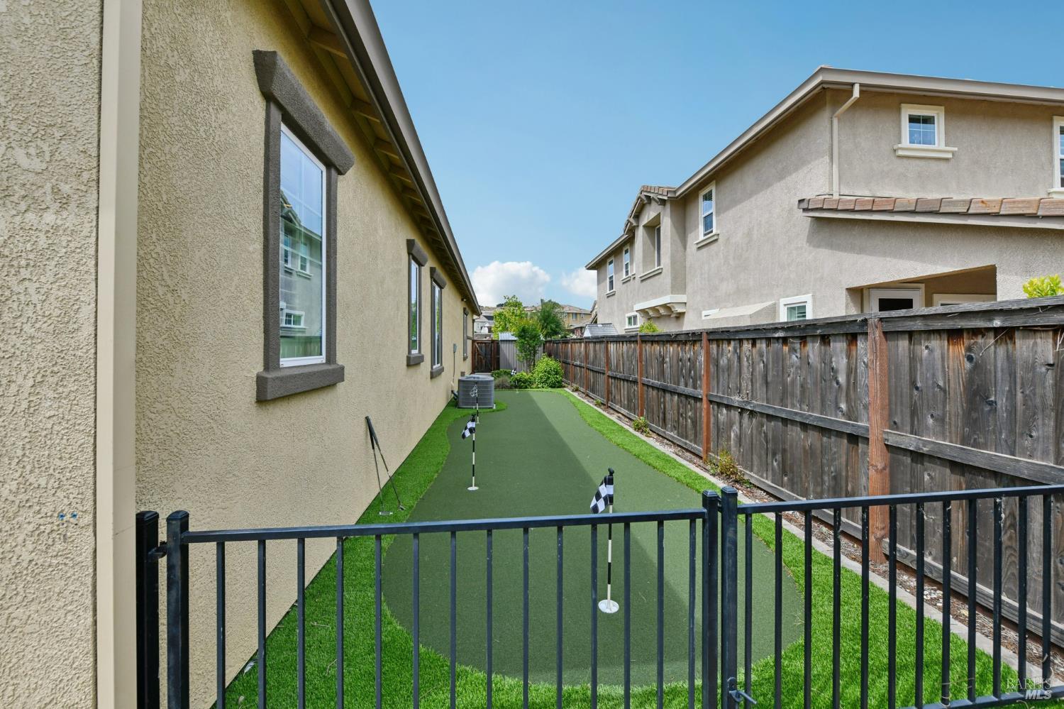 Stunning Single-Story in desirable Cheyenne at Browns Valley. Experience a seamless blend of refined interiors and resort-inspired outdoor living at this meticulously upgraded residence. From the moment you arrive, a beautifully designed paver driveway and private courtyard, accented with sophisticated lighting, create an impressive and welcoming first impression. The backyard is a true showpiece crafted for both grand entertaining and everyday luxury. Expansive paver hardscaping is complemented by striking wall waterfalls, creating a tranquil ambiance. A custom pergola with integrated fan provides shaded comfort, while the built-in outdoor kitchen complete with gas grill and refrigerator offers effortless hosting. Unwind around the fire pit or enjoy your own private putting green, thoughtfully positioned along the side yard for a unique lifestyle touch. At the heart of the home, the chef's kitchen showcases rich granite countertops, a designer backsplash, and a generous center island perfect for gathering, prep, and casual dining. Inside, the home continues to impress with a stunning great room featuring custom built-ins and designer finishes, perfectly balancing elegance and functionality. The primary suite is a private retreat, highlighted by a bespoke walk-in closet tailored for elevated living. Offered with an exceptional array of upgrades and thoughtful enhancements throughout, this is a residence that must be experienced in person to truly appreciate its craftsmanship and lifestyle appeal Some photos have been digitally altered for virtual staging.