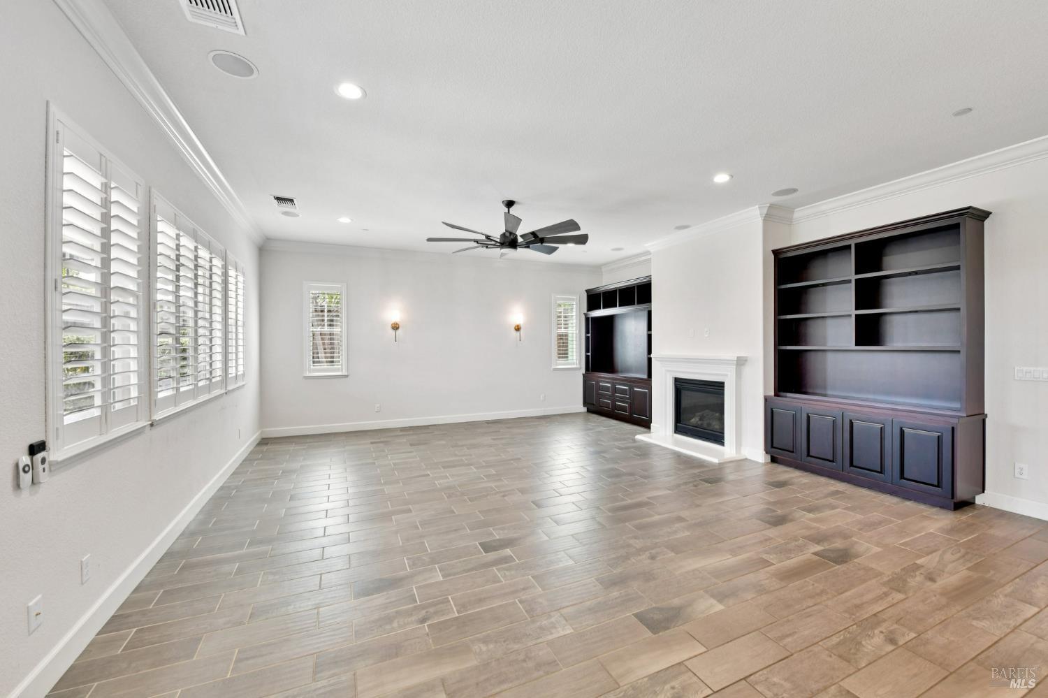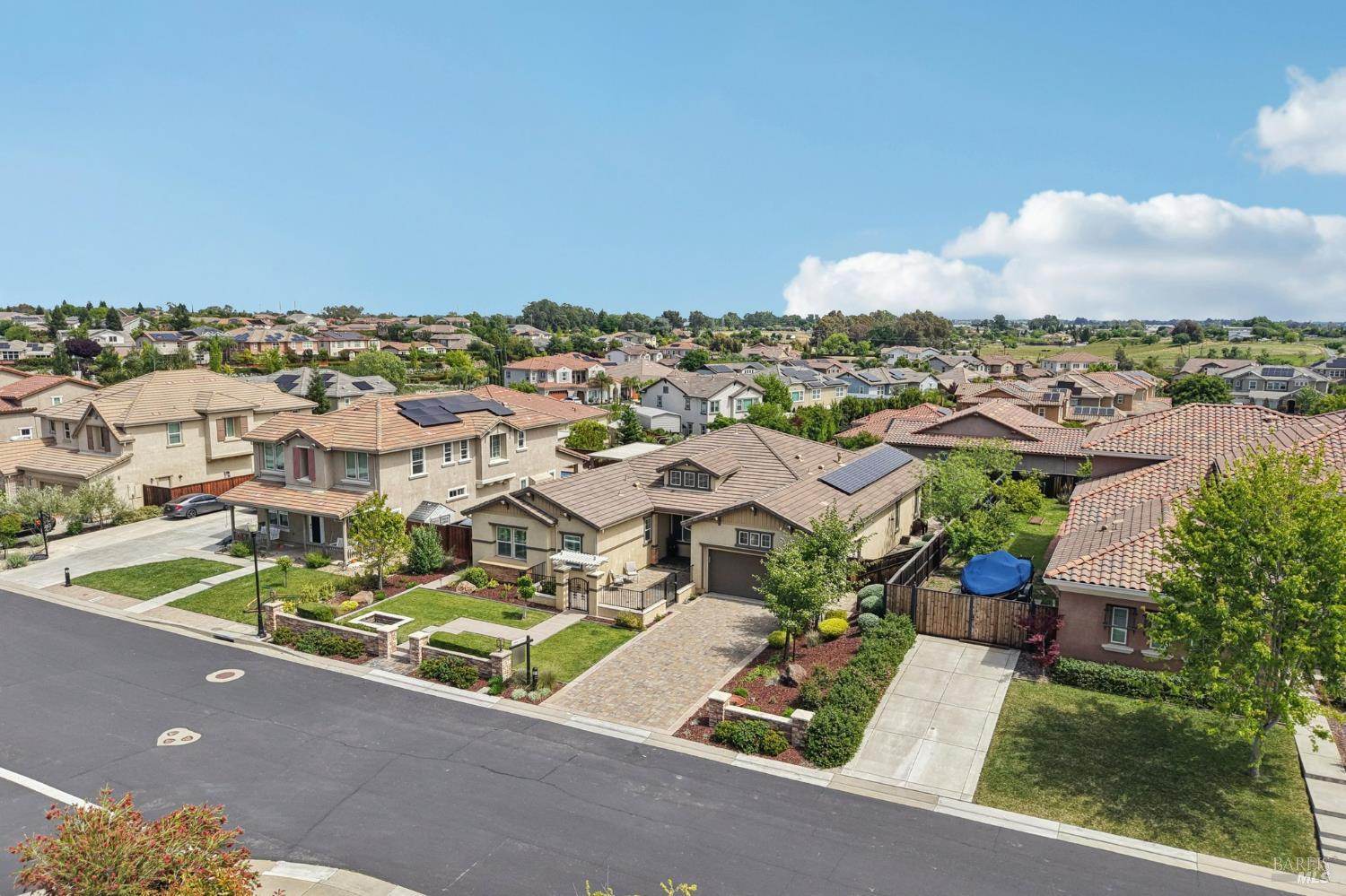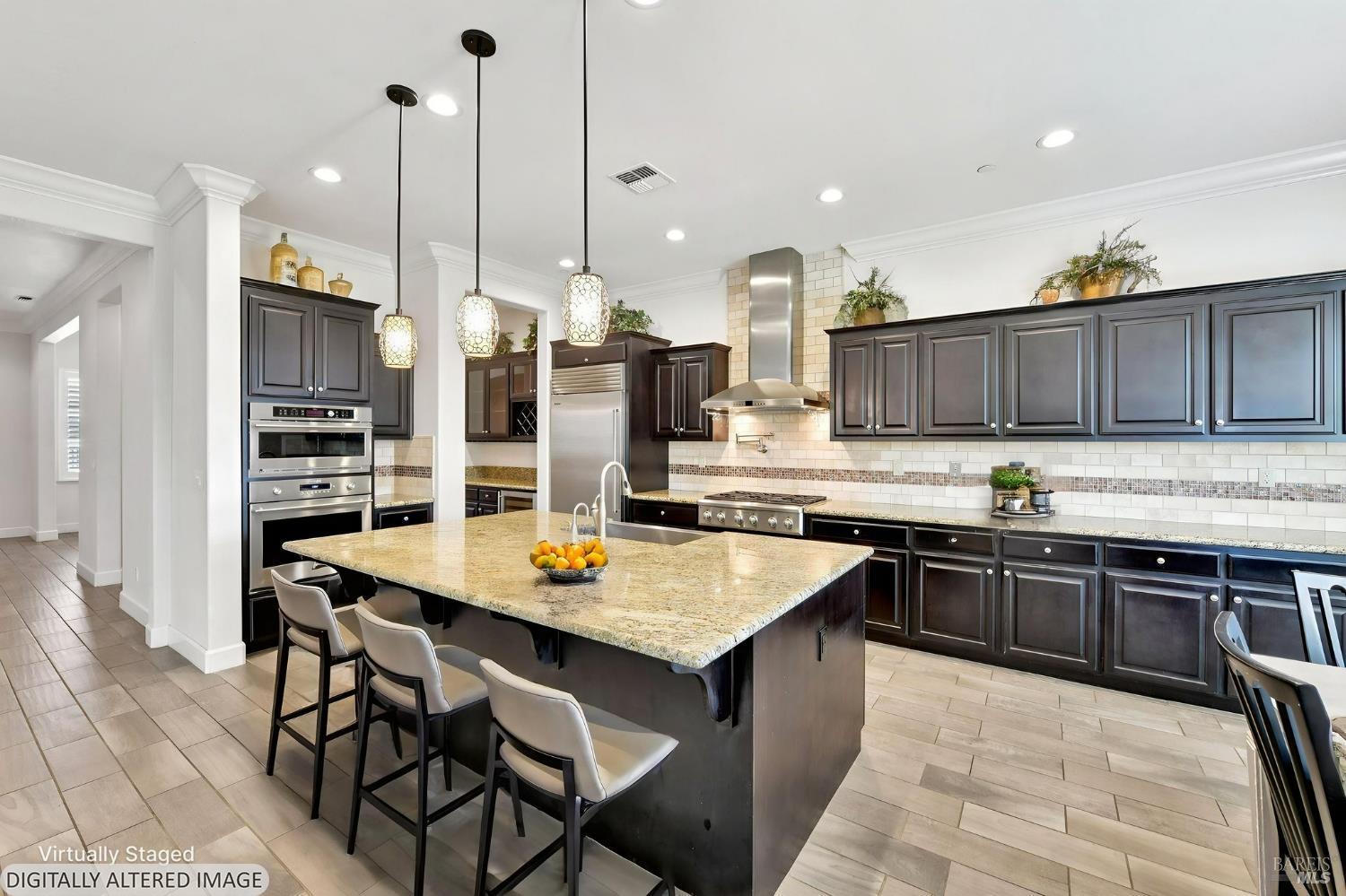 Stunning Single-Story in desirable Cheyenne at Browns Valley. Experience a seamless blend of refined interiors and resort-inspired outdoor living at this meticulously upgraded residence. From the moment you arrive, a beautifully designed paver driveway and private courtyard, accented with sophisticated lighting, create an impressive and welcoming first impression. The backyard is a true showpiece crafted for both grand entertaining and everyday luxury. Expansive paver hardscaping is complemented by striking wall waterfalls, creating a tranquil ambiance. A custom pergola with integrated fan provides shaded comfort, while the built-in outdoor kitchen complete with gas grill and refrigerator offers effortless hosting. Unwind around the fire pit or enjoy your own private putting green, thoughtfully positioned along the side yard for a unique lifestyle touch. At the heart of the home, the chef's kitchen showcases rich granite countertops, a designer backsplash, and a generous center island perfect for gathering, prep, and casual dining. Inside, the home continues to impress with a stunning great room featuring custom built-ins and designer finishes, perfectly balancing elegance and functionality. The primary suite is a private retreat, highlighted by a bespoke walk-in closet tailored for elevated living. Offered with an exceptional array of upgrades and thoughtful enhancements throughout, this is a residence that must be experienced in person to truly appreciate its craftsmanship and lifestyle appeal Some photos have been digitally altered for virtual staging.