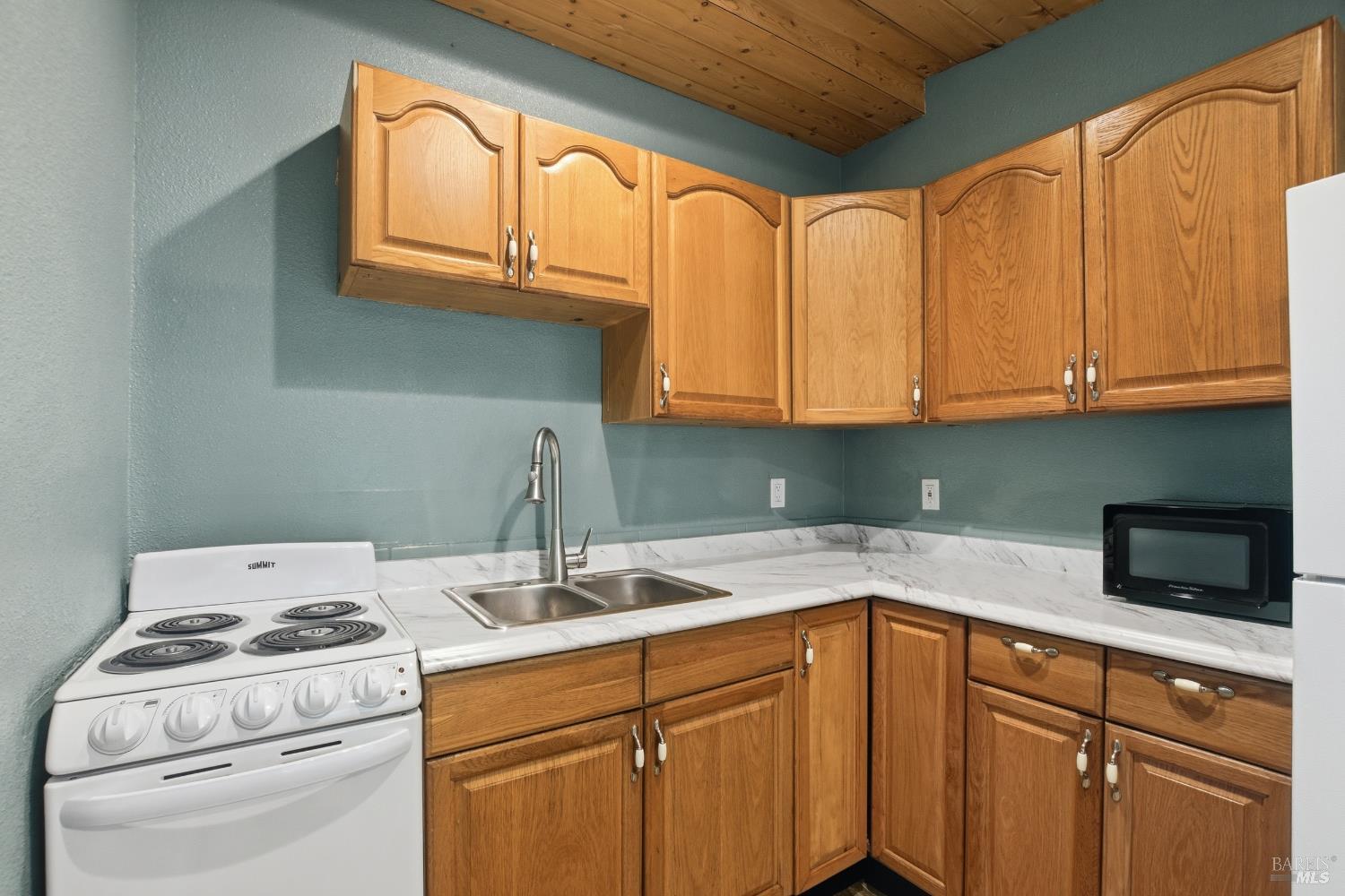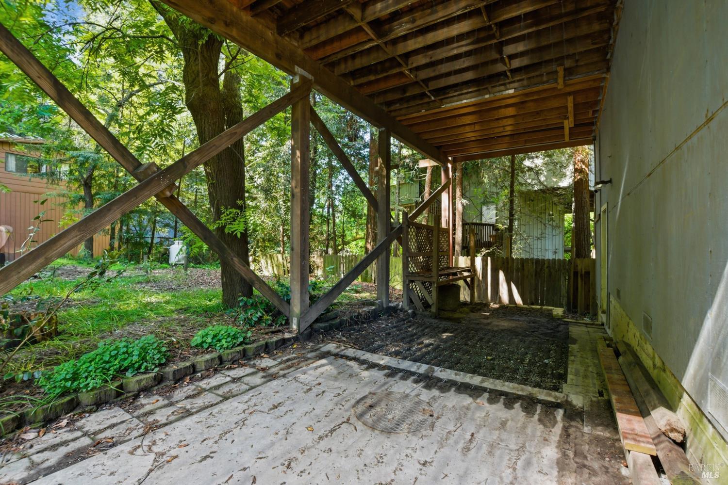 Tucked among the redwoods in the heart of Forestville, this charming 2-bedroom, 1-bath home offers the perfect blend of character, functionality, and Russian River lifestyle. Thoughtfully lifted the home provides peace of mind while keeping you close to all the natural beauty the area has to offer. Step inside to discover warm wood beam ceilings, a vaulted skylight, and a light-filled living area that feels like a true forest sanctuary. The open kitchen flows naturally into the living space, with tree-framed windows bringing the outside in at every turn. Enjoy morning coffee or evening sunsets from the expansive deck - your own private perch among the trees. A separate utility room with washer and dryer adds everyday convenience, while a brand new roof means one less thing to worry about. Whether you're looking for a full-time residence, weekend escape, or investment near the river, this property delivers on all fronts.