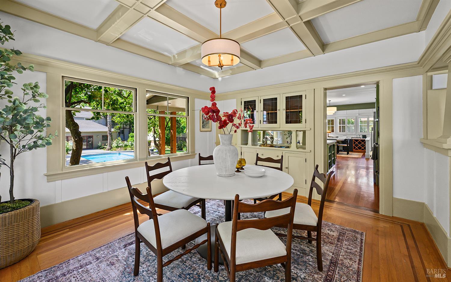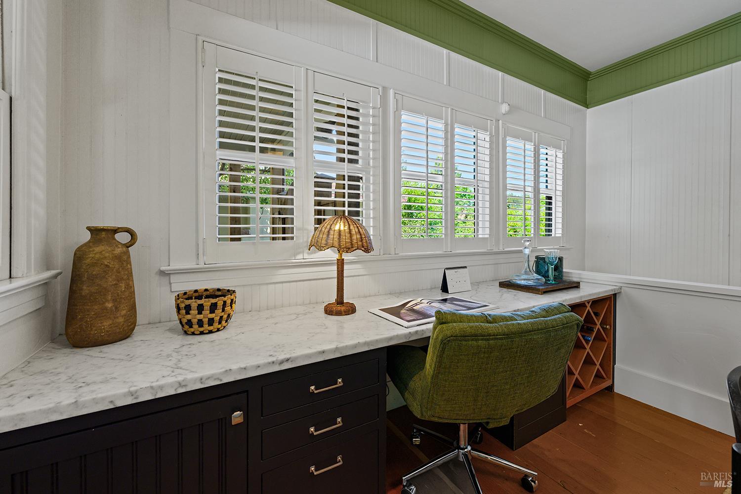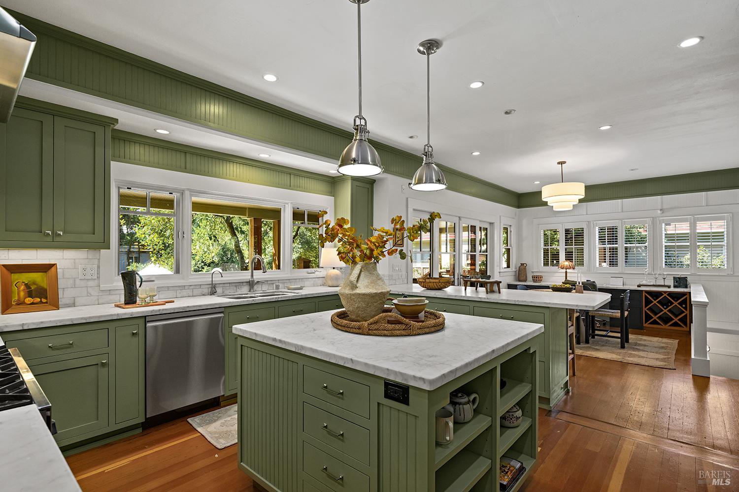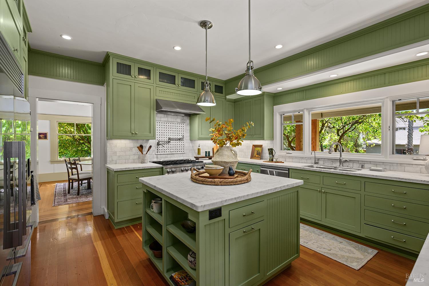 Nestled on one of Healdsburg's most coveted streets, just a short stroll from the vibrant Plaza, 438 Matheson St. is a stunning example of early 20th-century charm paired with modern-day versatility. Set on a generous corner lot spanning approximately a quarter acre, this property boasts a serene oasis with formal gardens, a sparkling pool, and room to expand with additional flower or vegetable beds. Steeped in character, the over 3,000 sq. ft. home (+/-) spans three thoughtfully designed levels. The main floor has a formal parlor and dining room, a beautifully remodeled gourmet kitchen, and a cozy media room, all anchored by timeless details and abundant natural light. Upstairs, two spacious bedrooms plus an office and two bathrooms share the spotlight with a delightful covered porch, perfect for enjoying quiet moments overlooking the picturesque street below. The versatile lower level opens up endless possibilities, offering space for one to two additional bedrooms, a home office, or even a private theater. Complete with a full bath and laundry room, it's a flexible haven for evolving needs. Outside, a detached garage sparks inspiration with its potentialimagine transforming it into a summer kitchen, guest quarters, or an ADU. Recent upgrades, including fresh interior and exterior paint, a brand-new roof, and a solar system, make this home as efficient as it is enchanting. 438 Matheson seamlessly blends timeless elegance with modern functionality, offering an unparalleled opportunity to live in one of Healdsburg's most desirable locations.