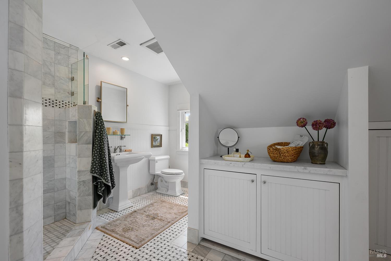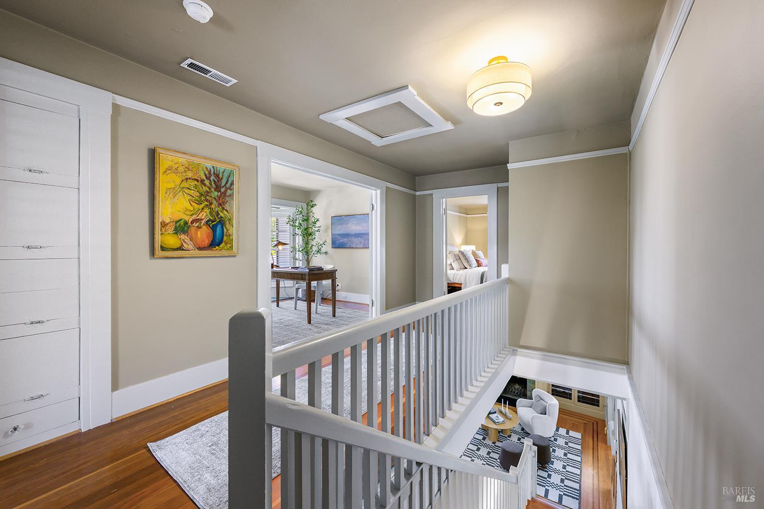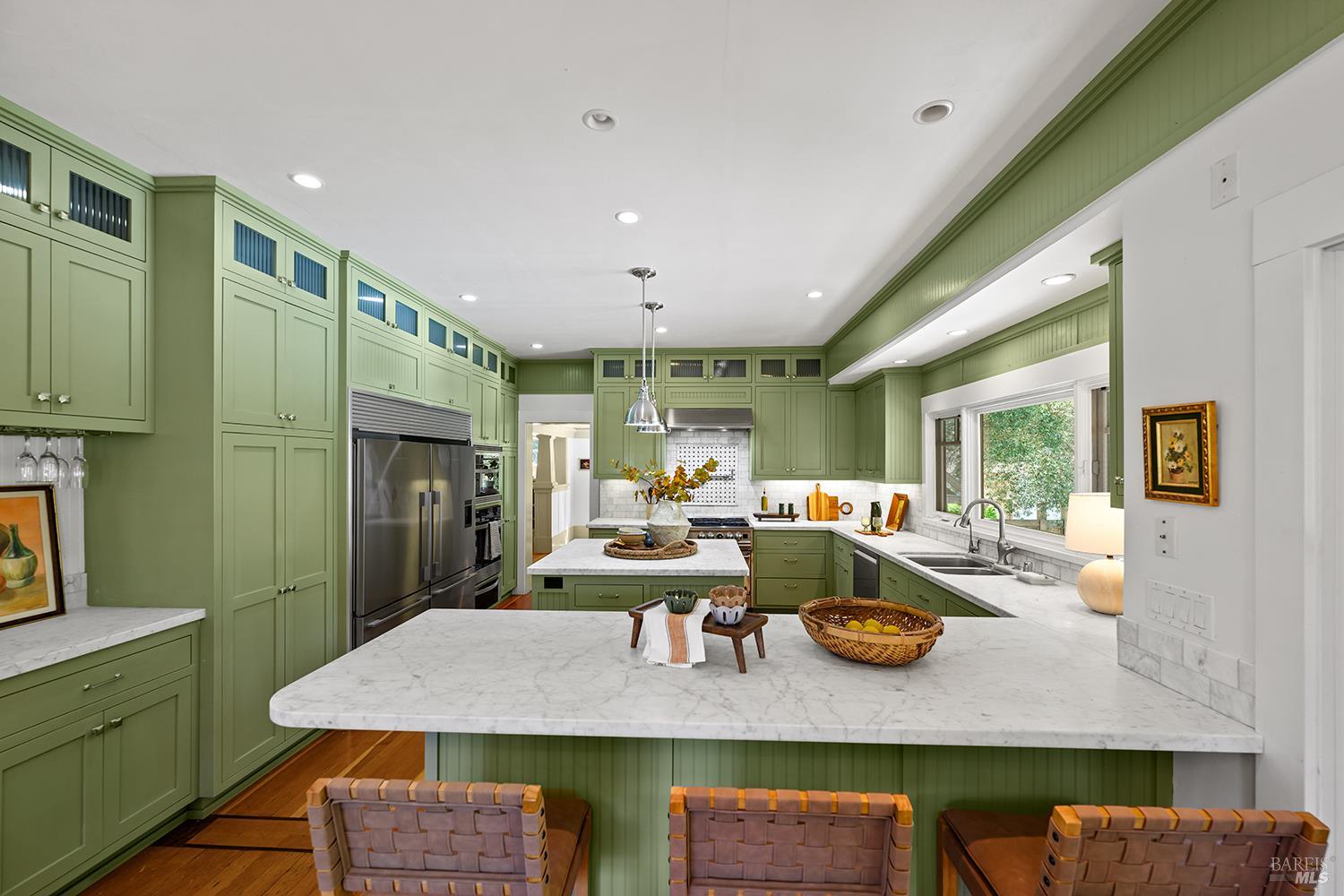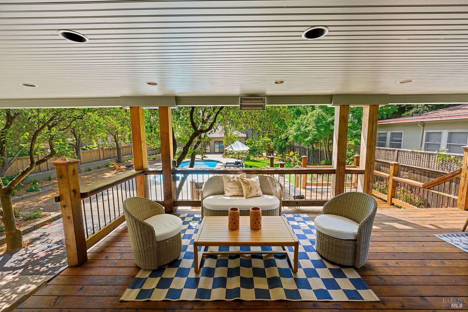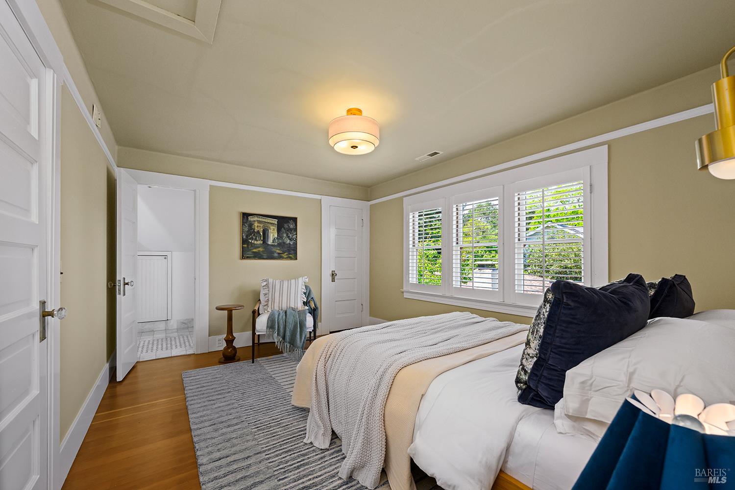 Nestled on one of Healdsburg's most coveted streets, just a short stroll from the vibrant Plaza, 438 Matheson St. is a stunning example of early 20th-century charm paired with modern-day versatility. Set on a generous corner lot spanning approximately a quarter acre, this property boasts a serene oasis with formal gardens, a sparkling pool, and room to expand with additional flower or vegetable beds. Steeped in character, the over 3,000 sq. ft. home (+/-) spans three thoughtfully designed levels. The main floor has a formal parlor and dining room, a beautifully remodeled gourmet kitchen, and a cozy media room, all anchored by timeless details and abundant natural light. Upstairs, two spacious bedrooms plus an office and two bathrooms share the spotlight with a delightful covered porch, perfect for enjoying quiet moments overlooking the picturesque street below. The versatile lower level opens up endless possibilities, offering space for one to two additional bedrooms, a home office, or even a private theater. Complete with a full bath and laundry room, it's a flexible haven for evolving needs. Outside, a detached garage sparks inspiration with its potentialimagine transforming it into a summer kitchen, guest quarters, or an ADU. Recent upgrades, including fresh interior and exterior paint, a brand-new roof, and a solar system, make this home as efficient as it is enchanting. 438 Matheson seamlessly blends timeless elegance with modern functionality, offering an unparalleled opportunity to live in one of Healdsburg's most desirable locations.