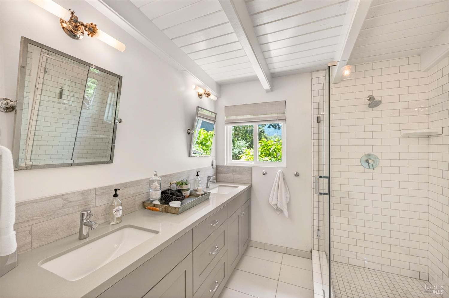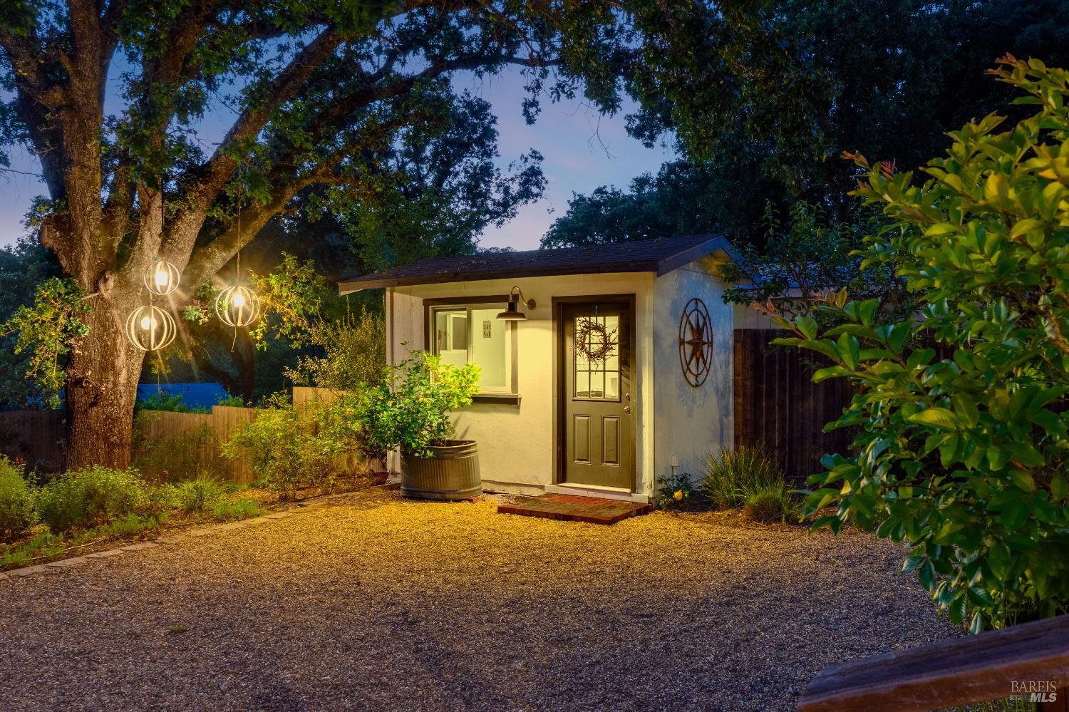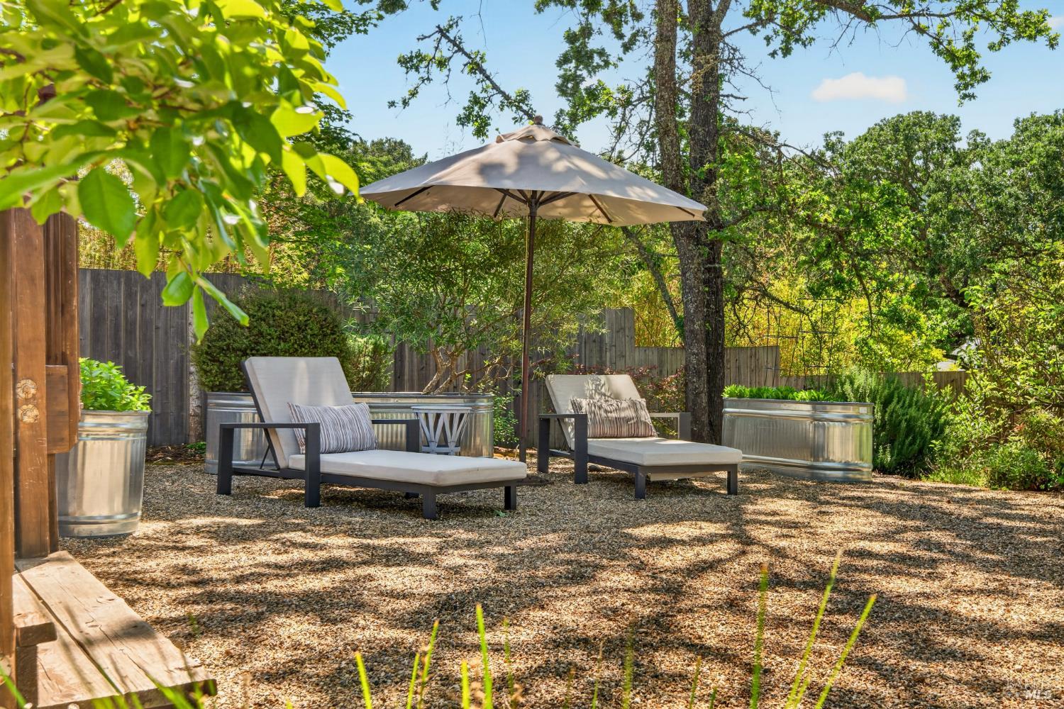 Tucked along a downtown Glen Ellen lane, this beautifully renovated 1954 Mid-Century Modern delivers 3 bedrooms, 2 baths, and an effortless indoor-outdoor flow on approximately 1/3 acre with Sonoma Mountain views. Just blocks from acclaimed restaurants, tasting rooms, a French bakery and gourmet market, the location is as compelling as the home itself. Inside, soaring beam ceilings, skylights, smooth walls, a bay window, and plank flooring create a crisp, contemporary feel, while the stylish kitchen pairs a Bertazzoni range, double farm sink, soft-close cabinetry, Miele dishwasher, and pantry with everyday function. The expansive primary suite accesses the grounds, and both baths have been freshly updated with sleek tile and glass showers. Outside, lush gardens, a generous entertaining deck with custom shade, and room for a pool invite relaxed Sonoma living, with space for lounging, gardening, and play, plus a storage building and public utilities. Sophisticated, refreshed, and move-in ready, this is Glen Ellen living with a modern edge.