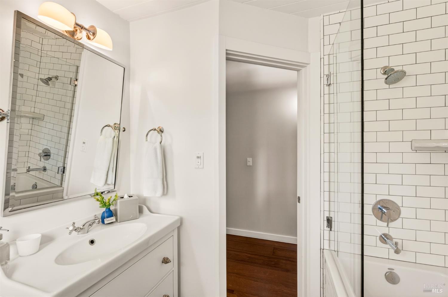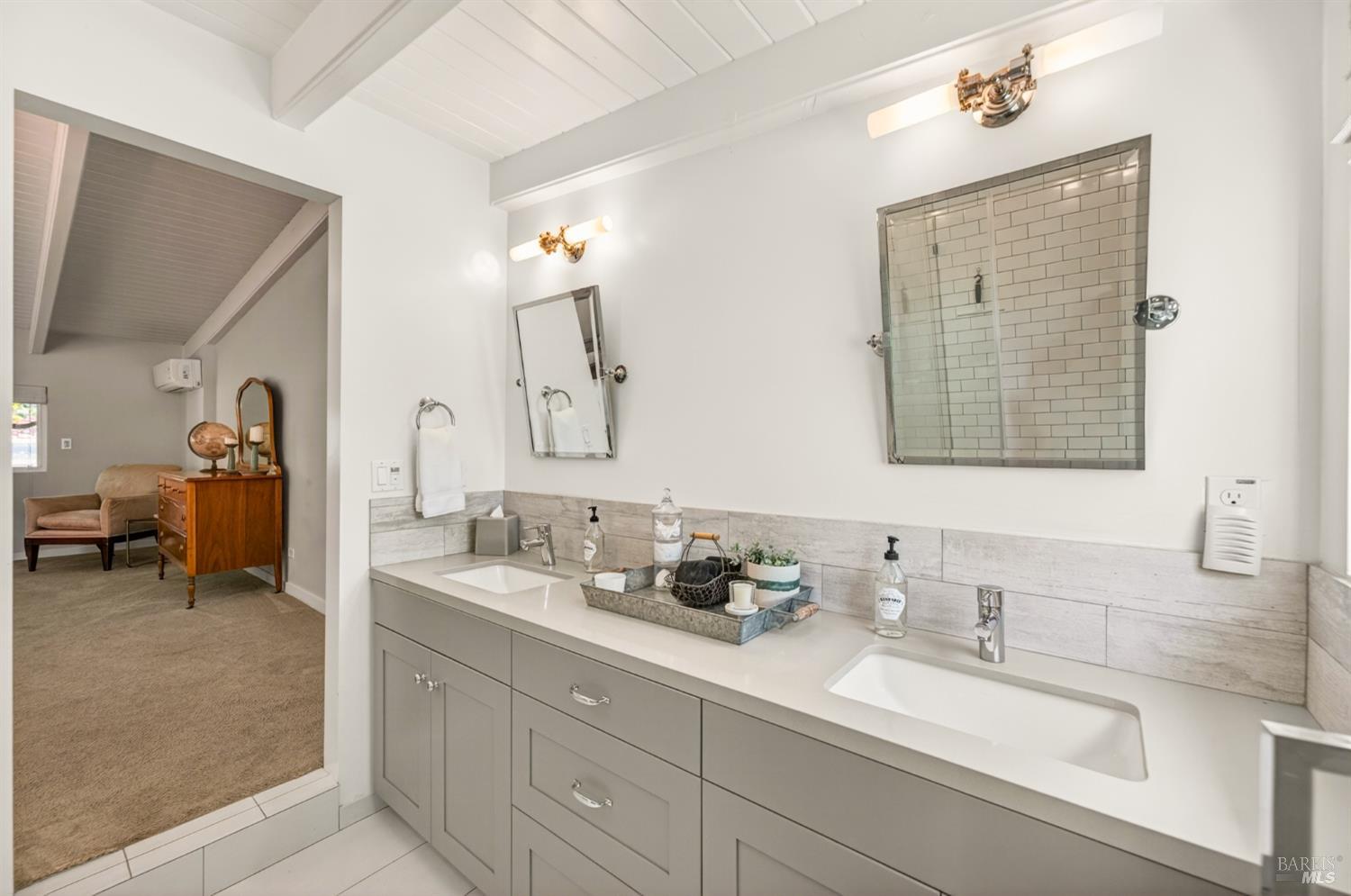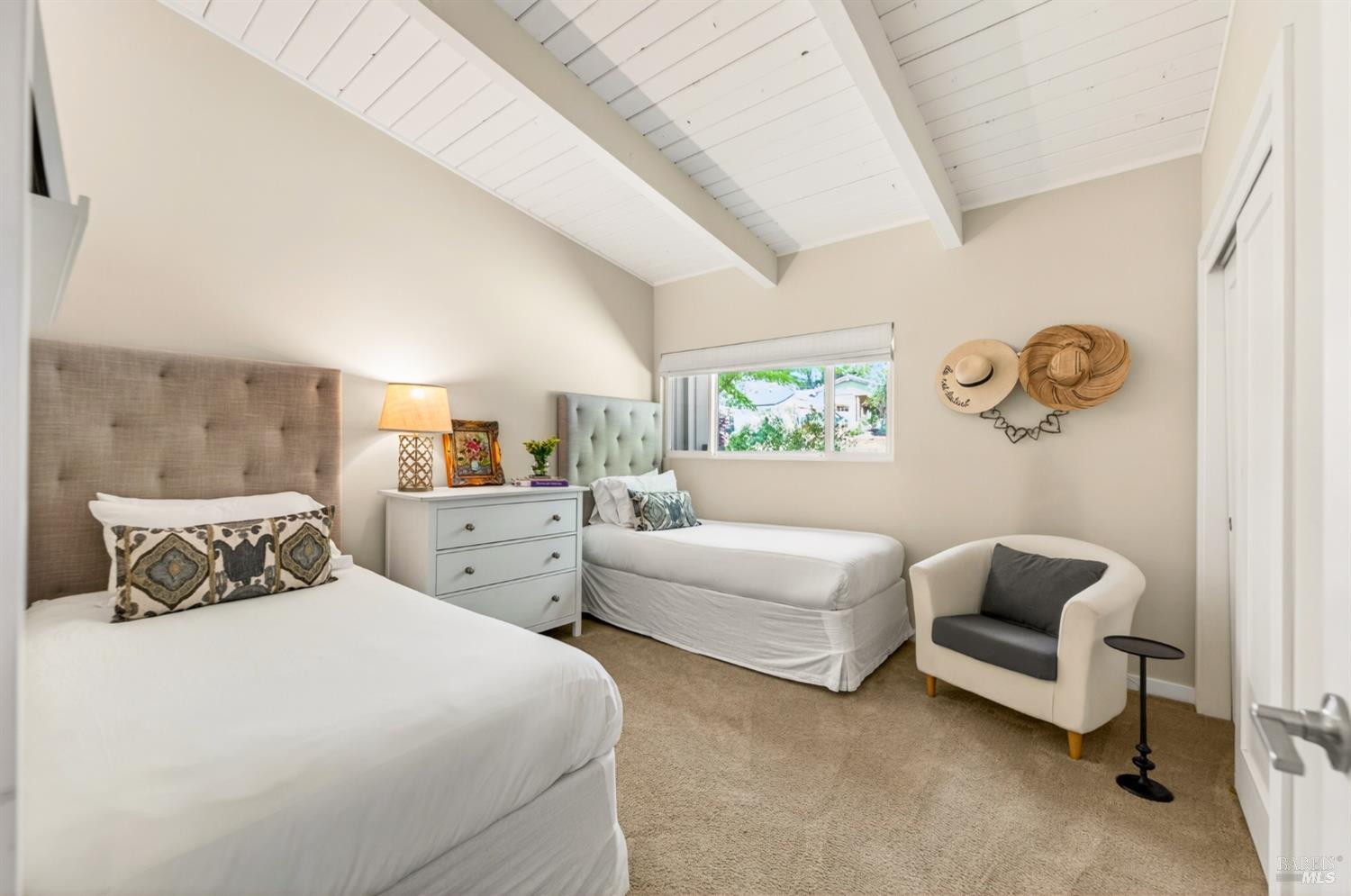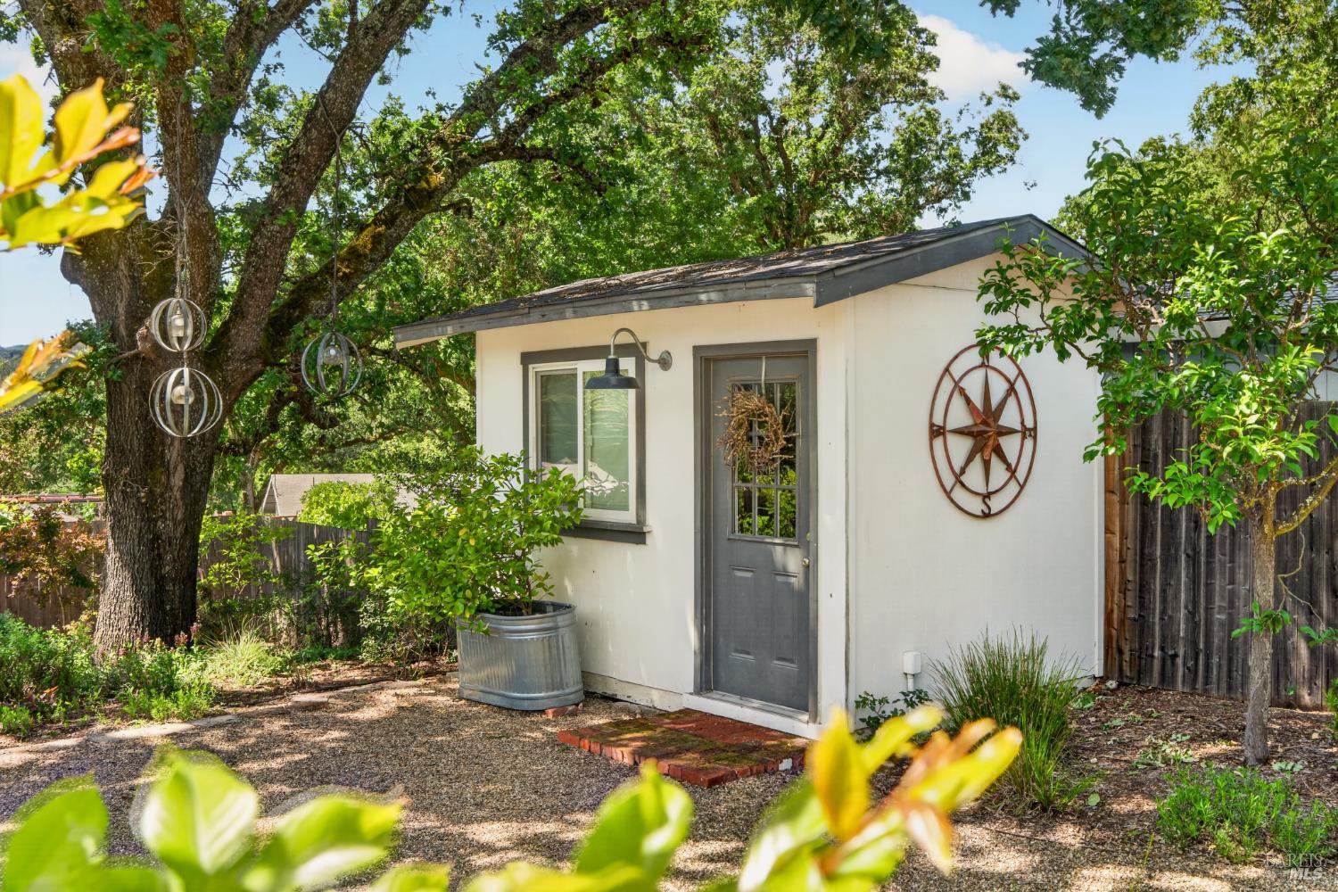 Tucked along a downtown Glen Ellen lane, this beautifully renovated 1954 Mid-Century Modern delivers 3 bedrooms, 2 baths, and an effortless indoor-outdoor flow on approximately 1/3 acre with Sonoma Mountain views. Just blocks from acclaimed restaurants, tasting rooms, a French bakery and gourmet market, the location is as compelling as the home itself. Inside, soaring beam ceilings, skylights, smooth walls, a bay window, and plank flooring create a crisp, contemporary feel, while the stylish kitchen pairs a Bertazzoni range, double farm sink, soft-close cabinetry, Miele dishwasher, and pantry with everyday function. The expansive primary suite accesses the grounds, and both baths have been freshly updated with sleek tile and glass showers. Outside, lush gardens, a generous entertaining deck with custom shade, and room for a pool invite relaxed Sonoma living, with space for lounging, gardening, and play, plus a storage building and public utilities. Sophisticated, refreshed, and move-in ready, this is Glen Ellen living with a modern edge.