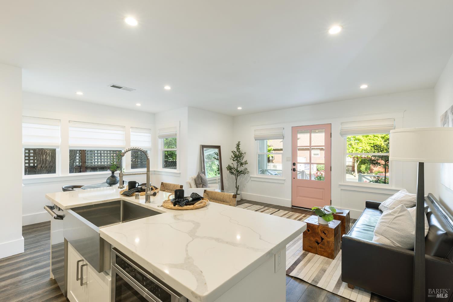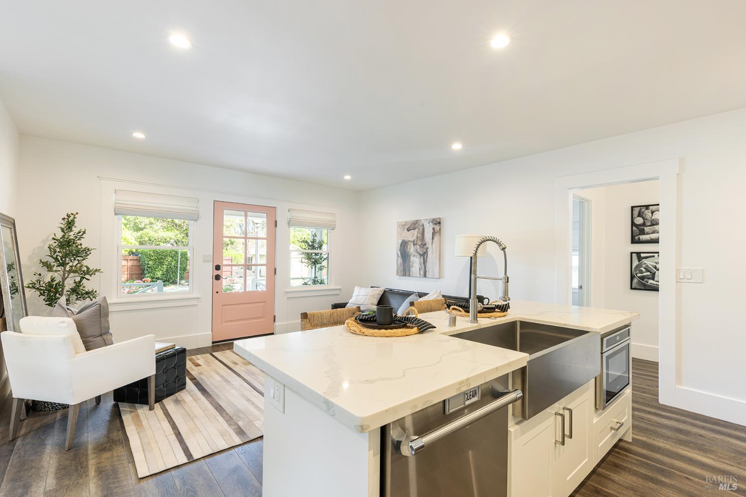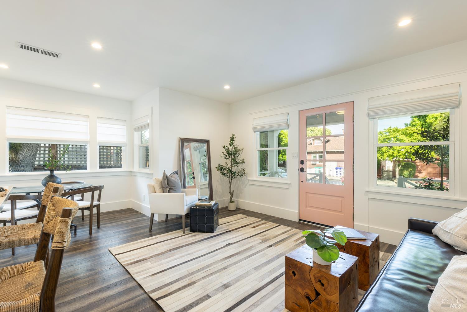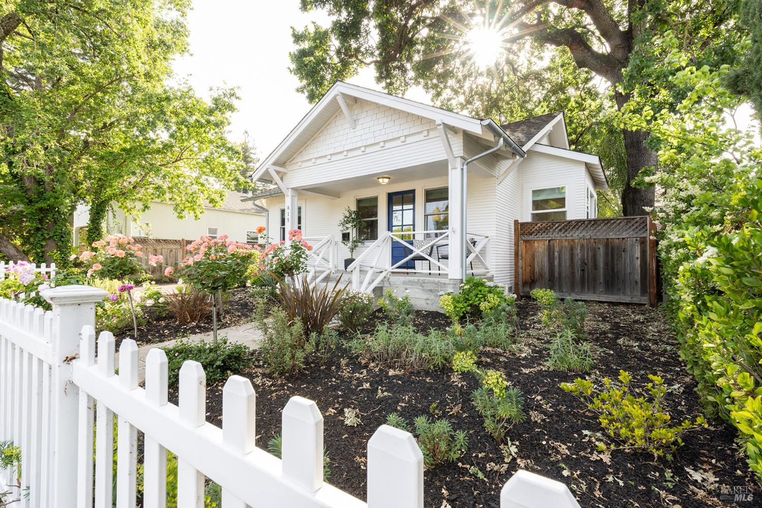 Fully updated cottage in historic downtown Napa! This bright and open home was completely rebuilt in 2017, while maintaining much of its character. New foundation, plumbing, electrical, roof, gutters, front porch, back deck, kitchen, bathrooms, flooring, paint inside and out, heating, central A/C, tankless water heater, and more! The clean, modern interior finishes make for easy and comfortable living. With a white picket fence surrounding the inviting front yard, and it's private and serene back yard with fire pit, this home offers top notch indoor/outdoor living. Also features a large and fully finished garage that makes for a perfect office! Fantastic central location so close to Fuller Park, downtown Napa, Highway 29, and more. This is a must see.