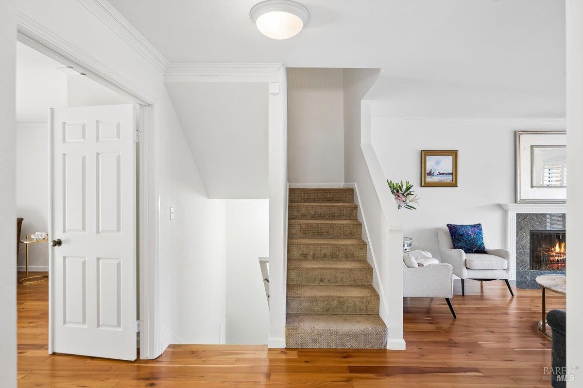This is your chance to own a stunning townhome in a coveted, Kentfield 6-unit condominium residence. This south facing 3 bedroom, 2.5 bath gem boasts an open floor plan with amazing views of Mount Tamalpais. The living and dining room radiates warmth with hardwood floors, a cozy fireplace, crown molding and floor-to-ceiling windows. Step onto the deck to entertain or simply soak in the natural beauty. The bright kitchen is a chef's dream, featuring ample cabinetry and a spacious garden window. A versatile third bedroom/home office on the main level opens to a private patio and gardens. Upstairs, the primary suite is your sanctuary with a fireplace, spa-inspired bathroom, and amazing views to Mt. Tam. A second bedroom and full bath complete the upper level, offering flexibility for family or guests.