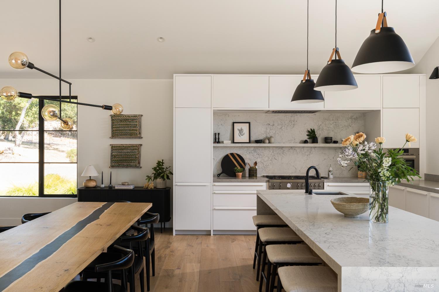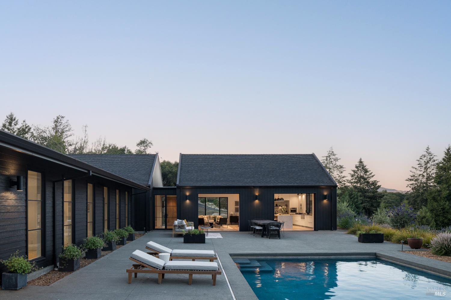 Privately sited on 3.75 acres in prestigious Bennett Valley, this Sunset Magazine featured estate completed in 2021 offers roughly 3,400 sq. ft. of contemporary luxury and quiet Sonoma County living. Impeccable modern construction and refined finishes define the home's open floor plan layout, where abundant natural light and thoughtful detailing create an atmosphere of effortless elegance. Four generously proportioned bedrooms and 3.5 designer baths provide comfortable, private quarters for family and guests. Seamless indoor outdoor flow leads to a resort style pool and expansive outdoor living areas perfect for intimate gatherings or grand entertaining against a backdrop of mature landscaping and total privacy, with no HOA restrictions. Practical amenities include a detached garage, and mutual water service; furnishings available by negotiation for a true turnkey experience. Set moments from Annadel State Park's hiking and mountain biking trails and minutes from Glen Ellen and Sonoma Plaza, the property places acclaimed wineries, Michelin worthy dining, and quintessential Valley lifestyle within easy reach. A rare blend of contemporary refinement and pastoral serenity, this Bennett Valley residence is an exceptional offering for the discerning buyer.