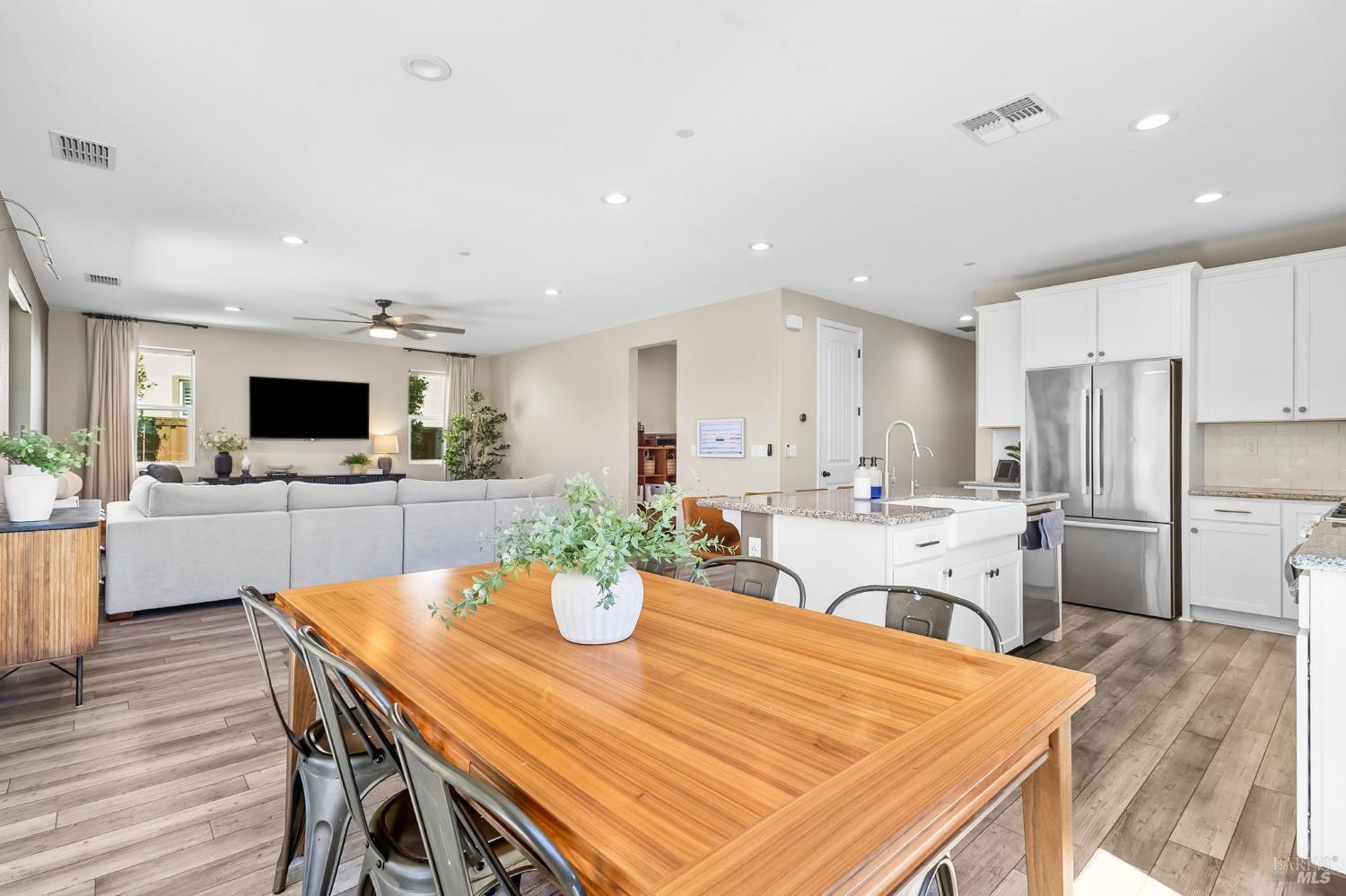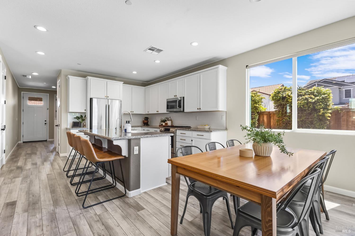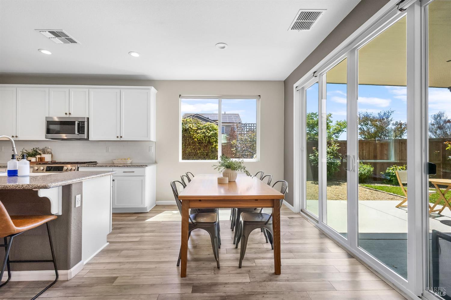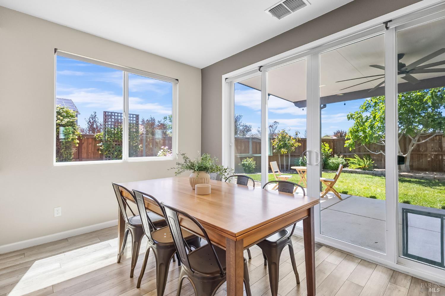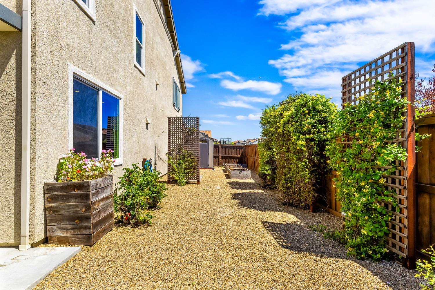 Gorgeous 5 bedroom/3bathroom home located in Vacaville w/a large loft! This home is move in ready w/ beautiful laminate flooring, modern fixtures, accents and coloring throughout. Custom blinds add a luxurious touch! An oversized family room / kitchen combo has granite counters, extra cupboards, stainless steal appliances including refrigerator, and a island with a sink at the center of it. The downstairs has a bedroom and full bath which is very convenient for generational living or guests. Extra storage area by the garage can be used as a mini mudroom. Upstairs primary suite has large windows with beautiful views and a large walk in closet. The attached primary bathroom has a double vanity, large shower and laminate flooring. Large loft is at the center of three additional bedrooms upstairs with a full bathroom which has a tub/shower combo, and double sinks. The laundry room upstairs has extra storage space. Home has additional features including, five stage water filter, ring doorbell, smart control for air/ heat and is energy efficient. Backyard is fully landscaped with a covered patio and a fan to circulate air on those warmer days. Perfect for relaxing and entertaining this large yard is meticulous and ready to make your own. A shed, garden planter boxes and room for a dog run complete this back yard. Don't miss out on this one of a kind home! Won't last long!