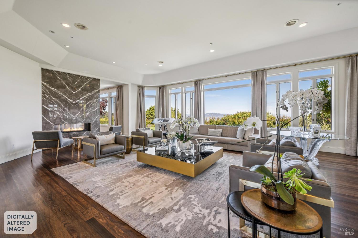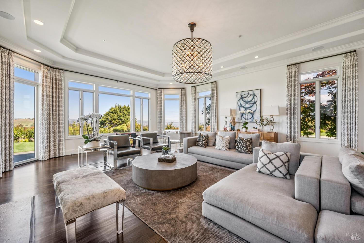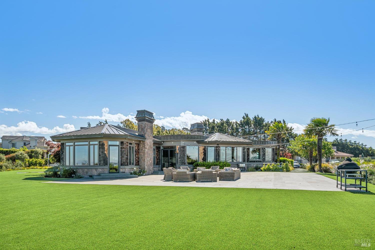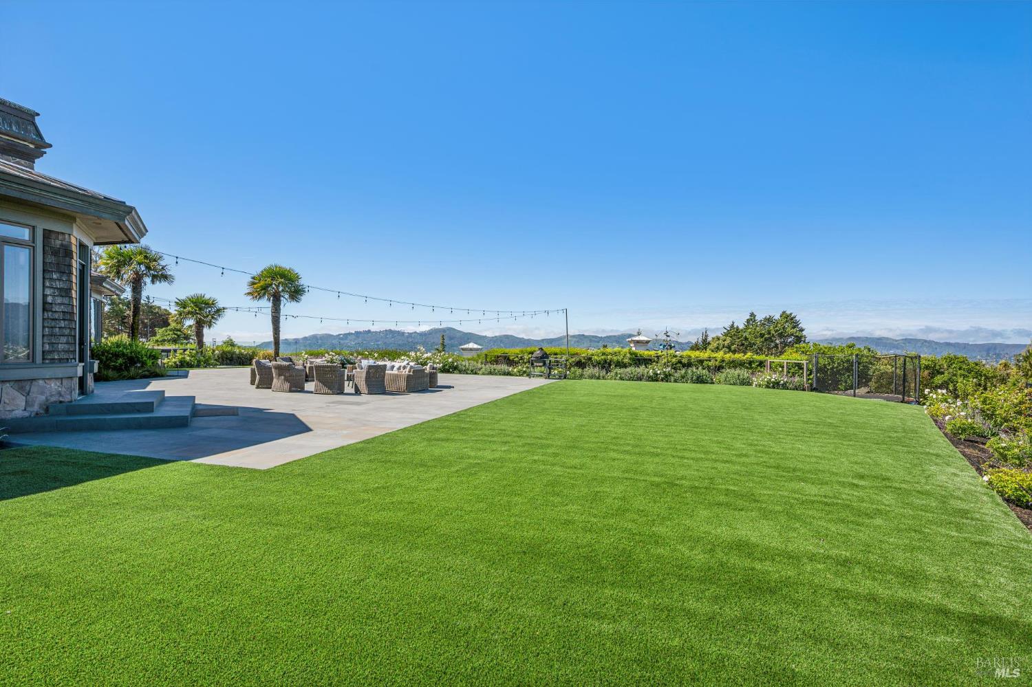 A rare lease opportunity in one of Tiburon's most coveted settings, this exceptional single-level estate sits on approximately one acre of beautifully level grounds, capturing sweeping, panoramic views of the San Francisco Bay, the Golden Gate Bridge, and beyond. Designed for effortless indoor-outdoor living, the property offers expansive lawns ideal for entertaining, along with a sport court, pickleball court, hot tub, cold plunge, and multiple terraces that invite gatherings of any scale. A long, private gated drive leads to a generous motor court and a three-car garage, creating both presence and privacy. Inside, the home is equally impressive. The kitchen and adjoining great room are truly showpiecesthoughtfully designed, light-filled, and perfectly scaled for everyday living and entertaining alike. A grand living room, formal dining space, and a separate office provide flexibility and comfort, all on one level. Offered for lease furnished or unfurnished for a one-year term beginning early fall, this is a turnkey opportunity to experience the best of Tiburon living in a truly special setting.
