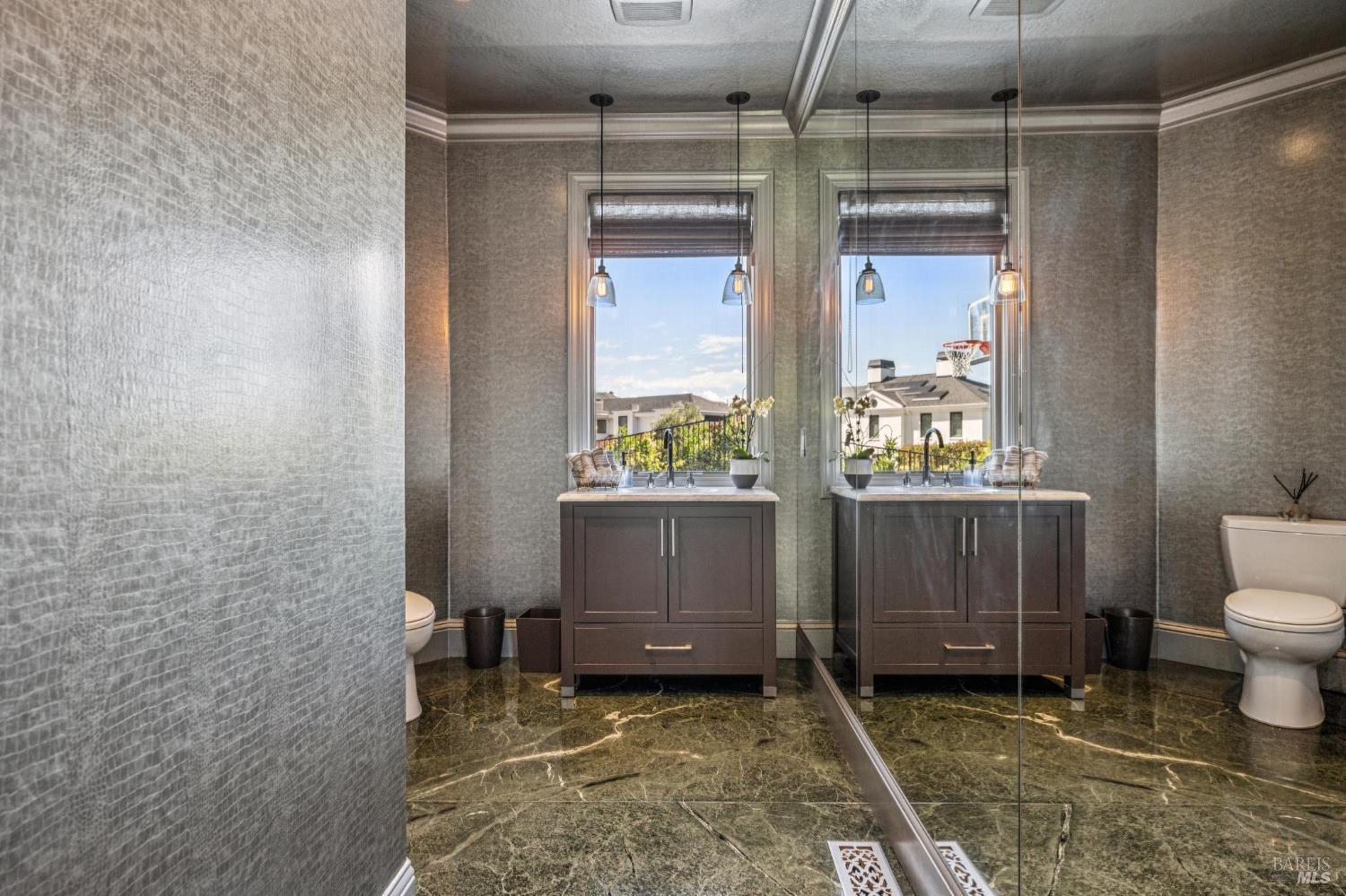 • Primary Bathroom Features Double Sinks,Marble,Soaking Tub,Stone