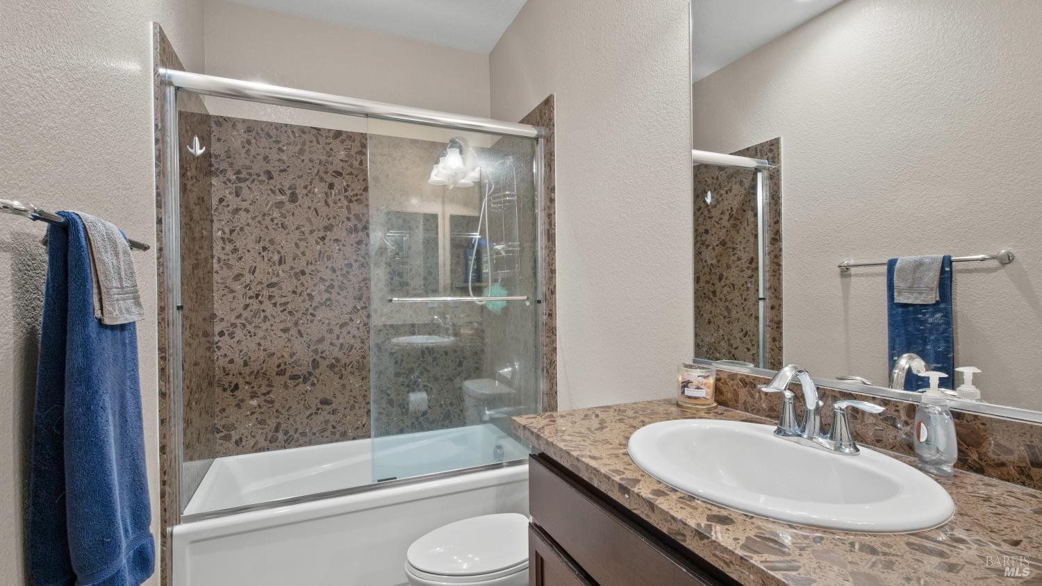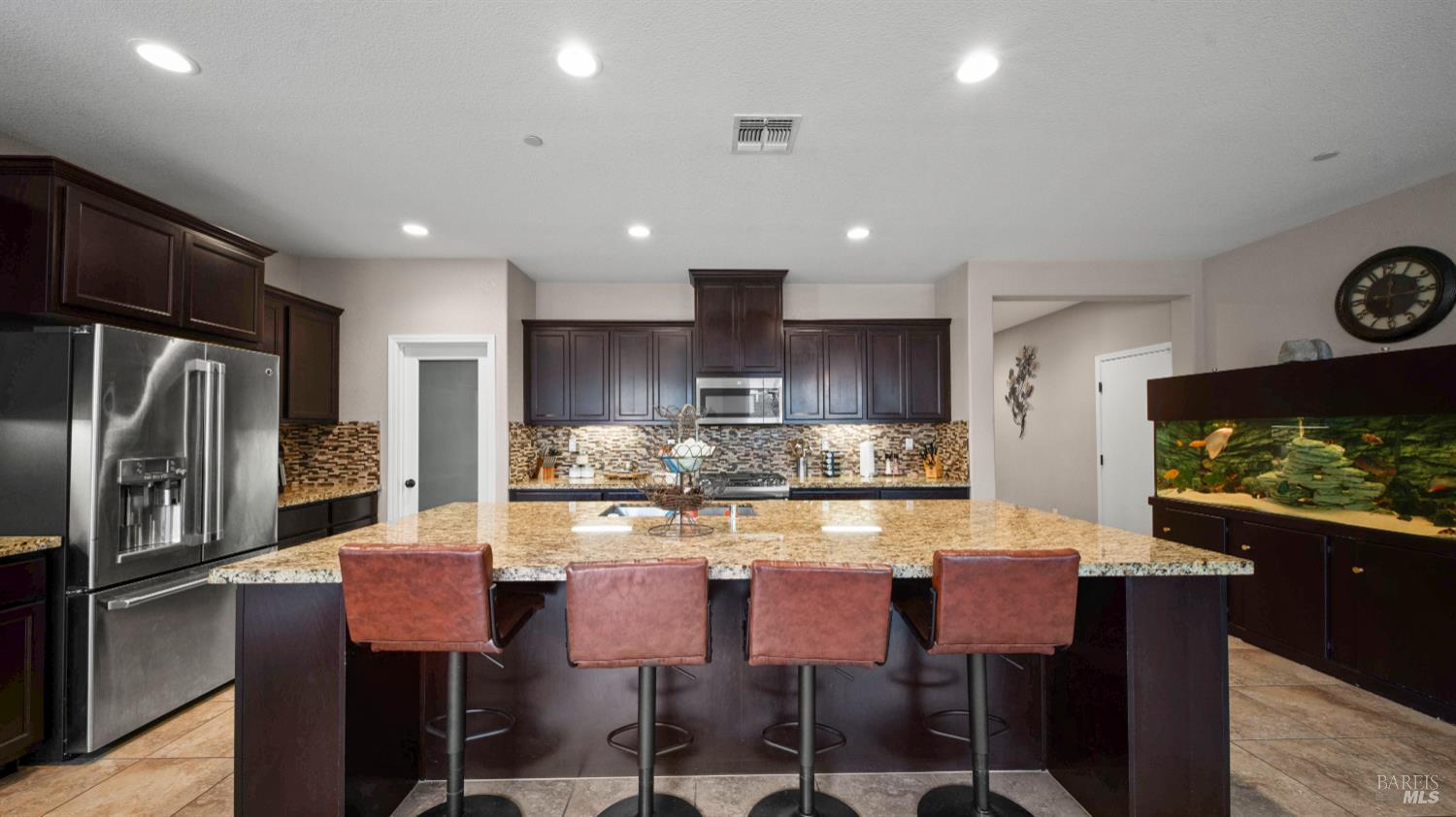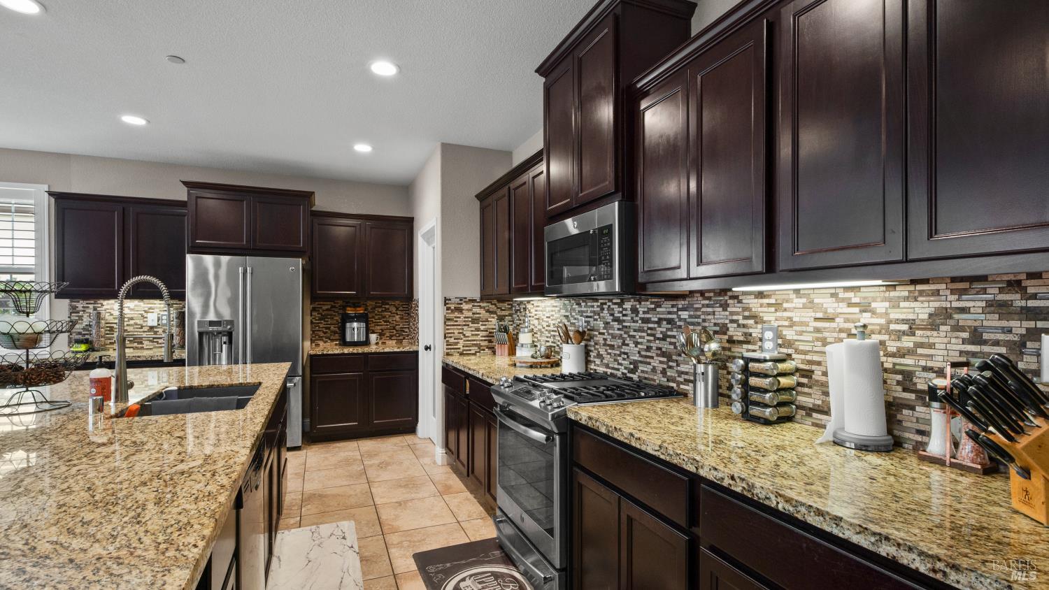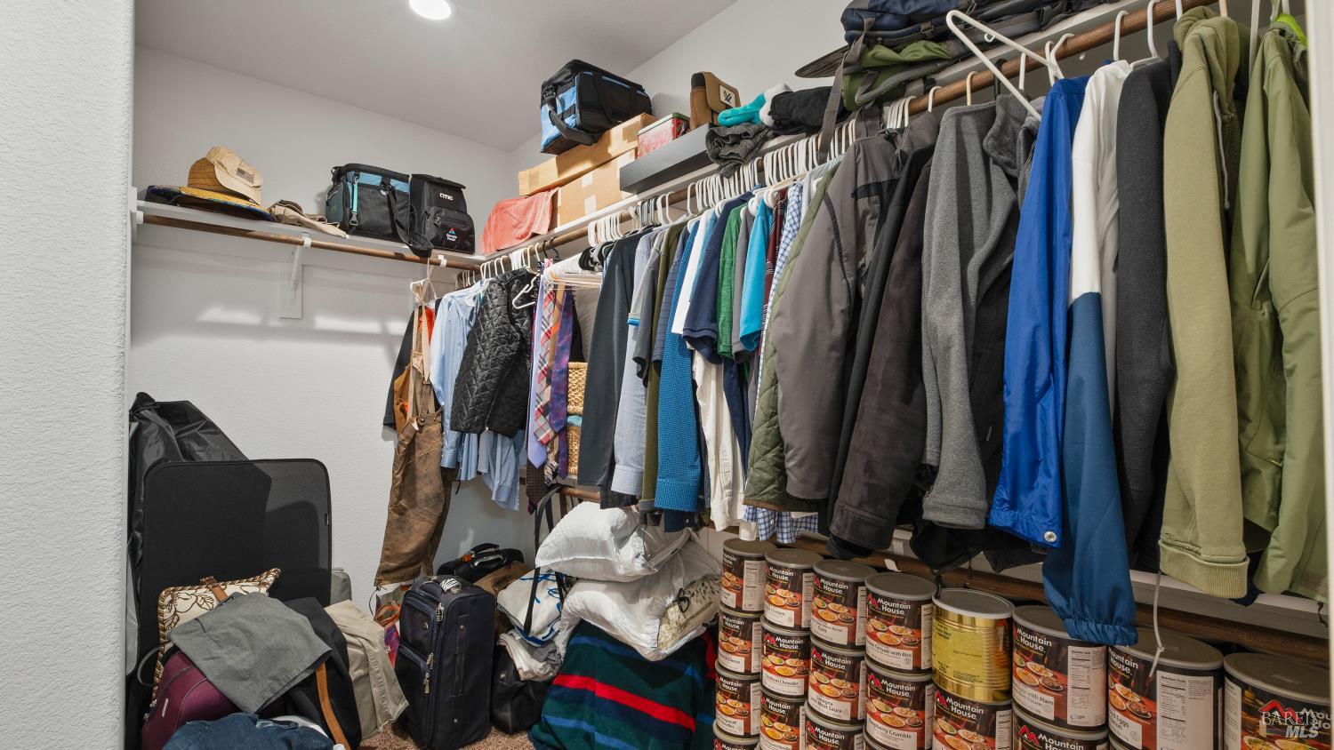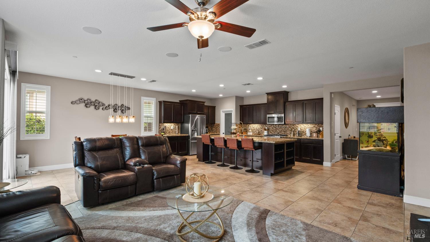 Beautifully maintained and move-in ready, this single-story home built in 2017 offers 3 bedrooms, 2 bathrooms, solar, and no HOA. A standout feature is the rare assumable VA loan in the low 3's for qualified VA buyers, creating an incredible opportunity in today's market. Designed with comfort and functionality in mind, the home features tile flooring and part carpet. Interior panel interior doors, and thoughtful upgrades throughout. The gourmet kitchen features a large island with a sink and bar seating, granite countertops, a decorative backsplash, stainless steel appliances, extra cabinetry, and a walk-in pantry. Interior shutters add style and charm. The spacious primary suite offers a sitting area, a walk-in closet, and a well-appointed bath with dual sinks, decorative mirrors, a soaking tub, and a separate shower. The hall bathroom includes a shower/tub combo and a vanity with cabinets. Additional highlights include an indoor laundry room with sink and cabinets, and a 2-car garage. Extremely well cared for and ready for its next owner, this home combines modern living, energy efficiency, and exceptional value in a desirable Vacaville location.