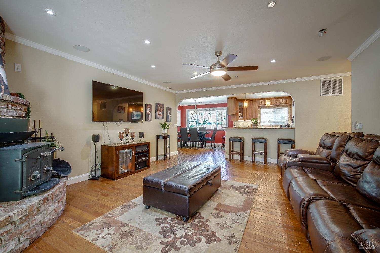 Room to breathe in one of Santa Rosa's most accessible neighborhoods. Set on over half an acre at a peaceful corner just blocks from Marlow Road, this 1960 single-story ranch offers a lifestyle that is genuinely hard to find at this price point. A generous lot, an oversized garage, and a layout built for comfortable everyday living. The 1,855 sq ft floor plan puts everything on one level: three bedrooms, two full baths, a family room with fireplace, and a kitchen with granite counters and a breakfast area. Step outside to a fire pit, a courtyard built for gathering, and a newly built 1,200 sq ft garage with room for a boat, an RV, or a serious workshop. Plenty of parking. Private well and septic. No HOA. Close to shopping, dining, and commute routes, yet set far enough back from the noise to feel like your own place.