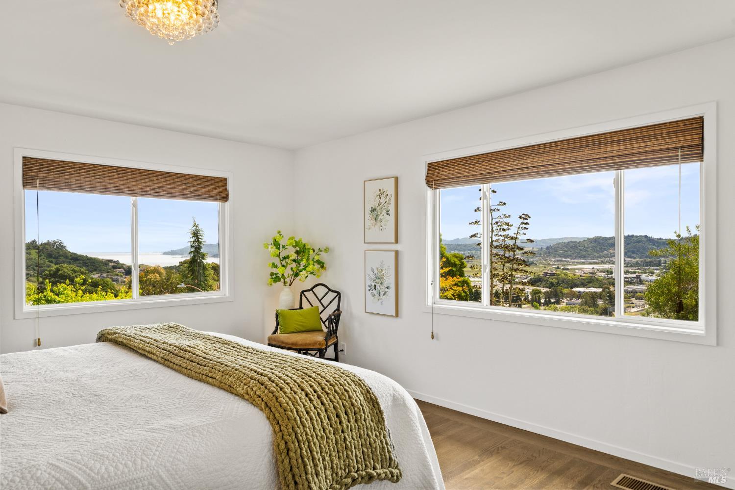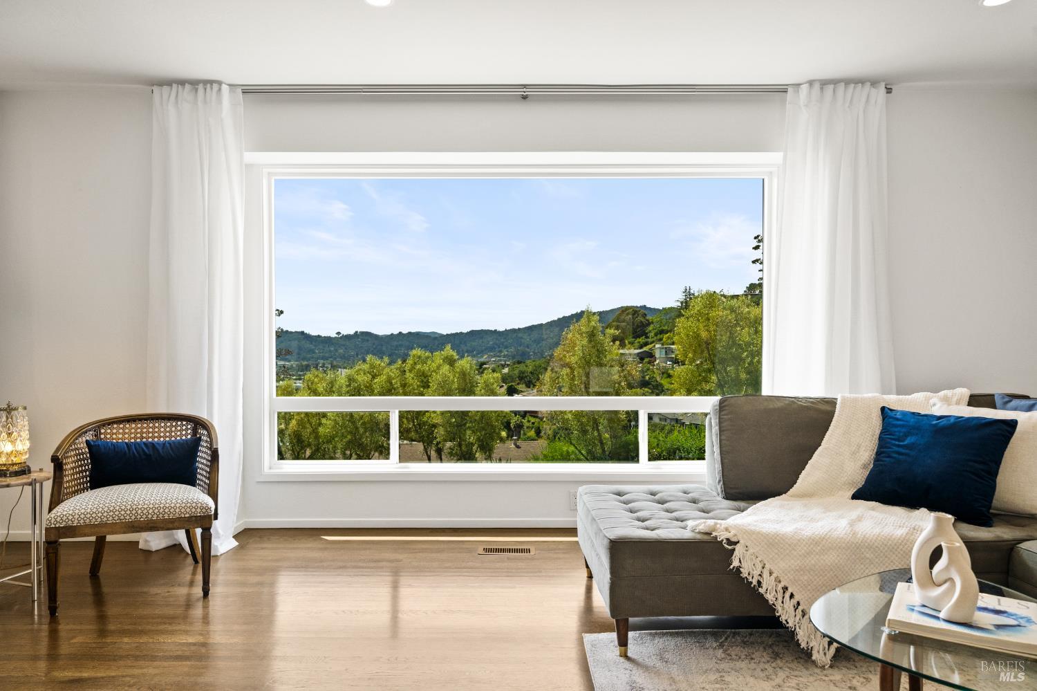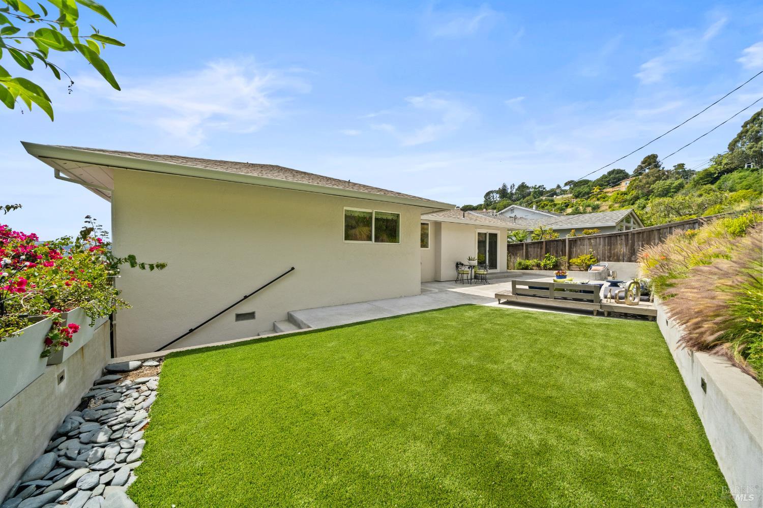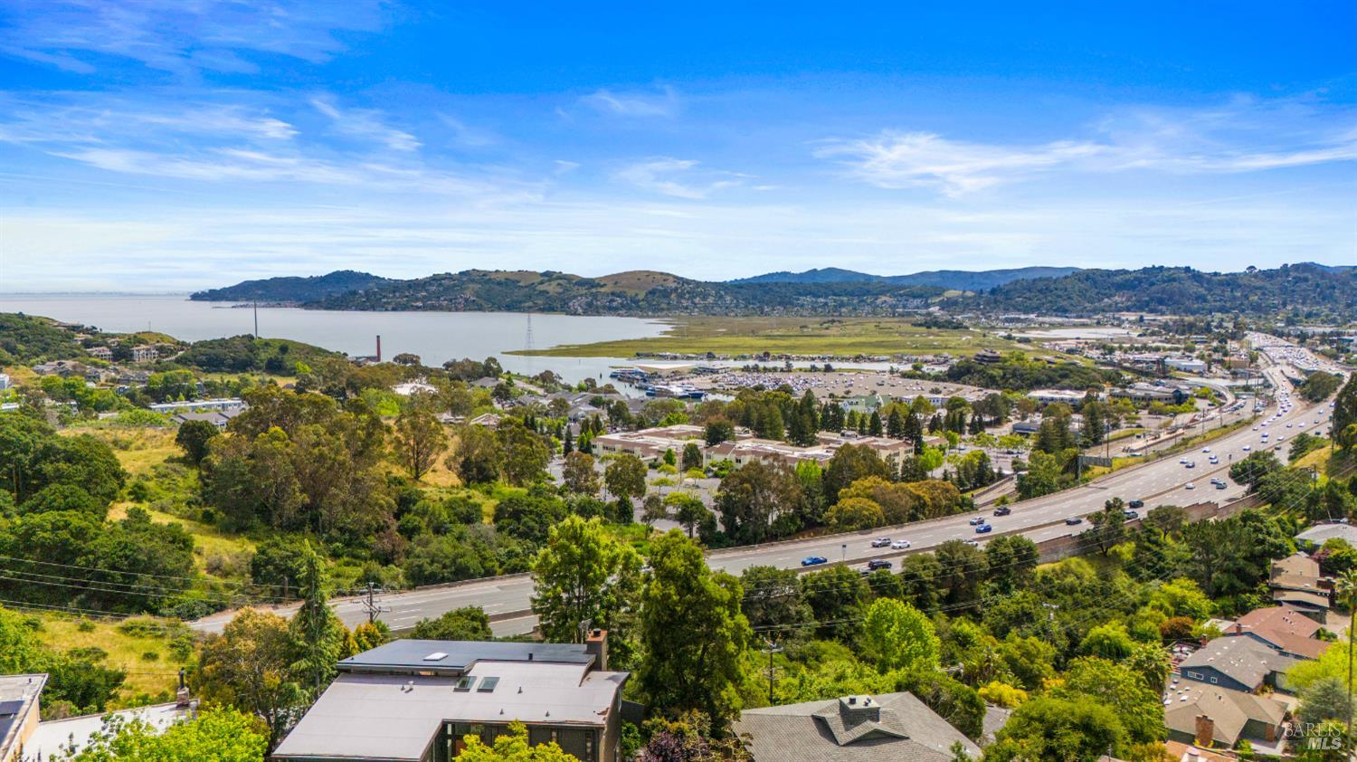 Stunning View Residence in the Heart of Greenbrae! Perched in one of Greenbrae's most coveted enclaves, this beautifully updated 3-bedroom, 2-bath home showcases views spanning the bay, the iconic Bay Bridge, rolling hills, and even a peek-a-boo view of Sutro Tower creating a breathtaking backdrop of sunrises and sunsets that never get old. Flooded with natural light, the home is designed to maximize its setting, with view outlooks from every room, rich hardwood floors, and a single level floor plan with open-concept layout ideal for both relaxed living and effortless entertaining. The inviting living room, with cozy fireplace, flows directly into the dining area with access to outdoors and an updated kitchen featuring views, quartz countertops, stainless steel appliances, wine cooler, convenient stacked washer and dryer and clean, modern finishes. The spacious primary suite offers a retreat with captivating Bay Bridge views and a spa-inspired bath complete with a soaking tub, walk-in shower, and a view window that brings the outdoorsin. Also,two spacious bedrooms with views and a bath. The property offers multiple outdoor flat living spaces including a patio for dining, artificial turf lawn, and a landscaped hillside with a tranquil waterfall feature perfect for entertaining, relaxing, or play. Additional highlights include an attached two-car garage and generous under-house storage. Ideally located just minutes from top-rated Kentfield schools, dining, local shopping, Larkspur Landing and Ferry, Country Mart, and Highway 101. This home offers a rare combination of privacy, natural beauty, and everyday convenience.