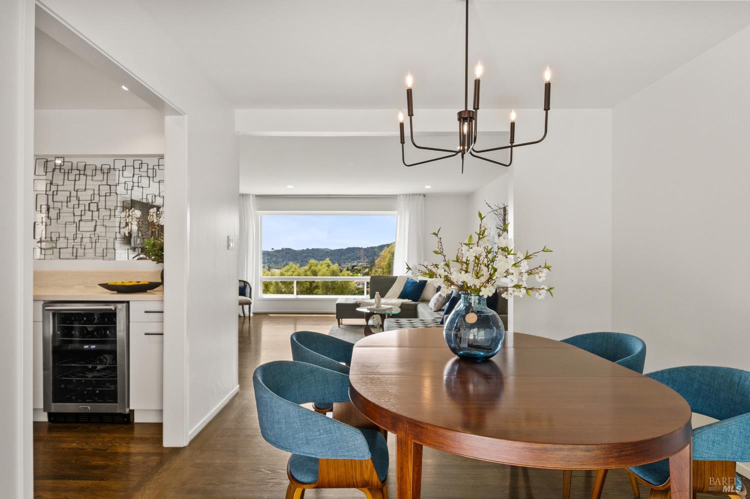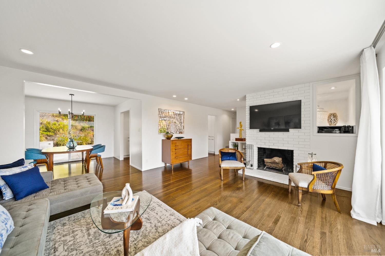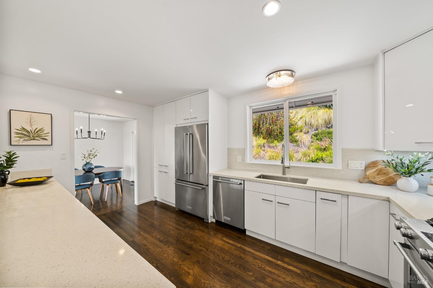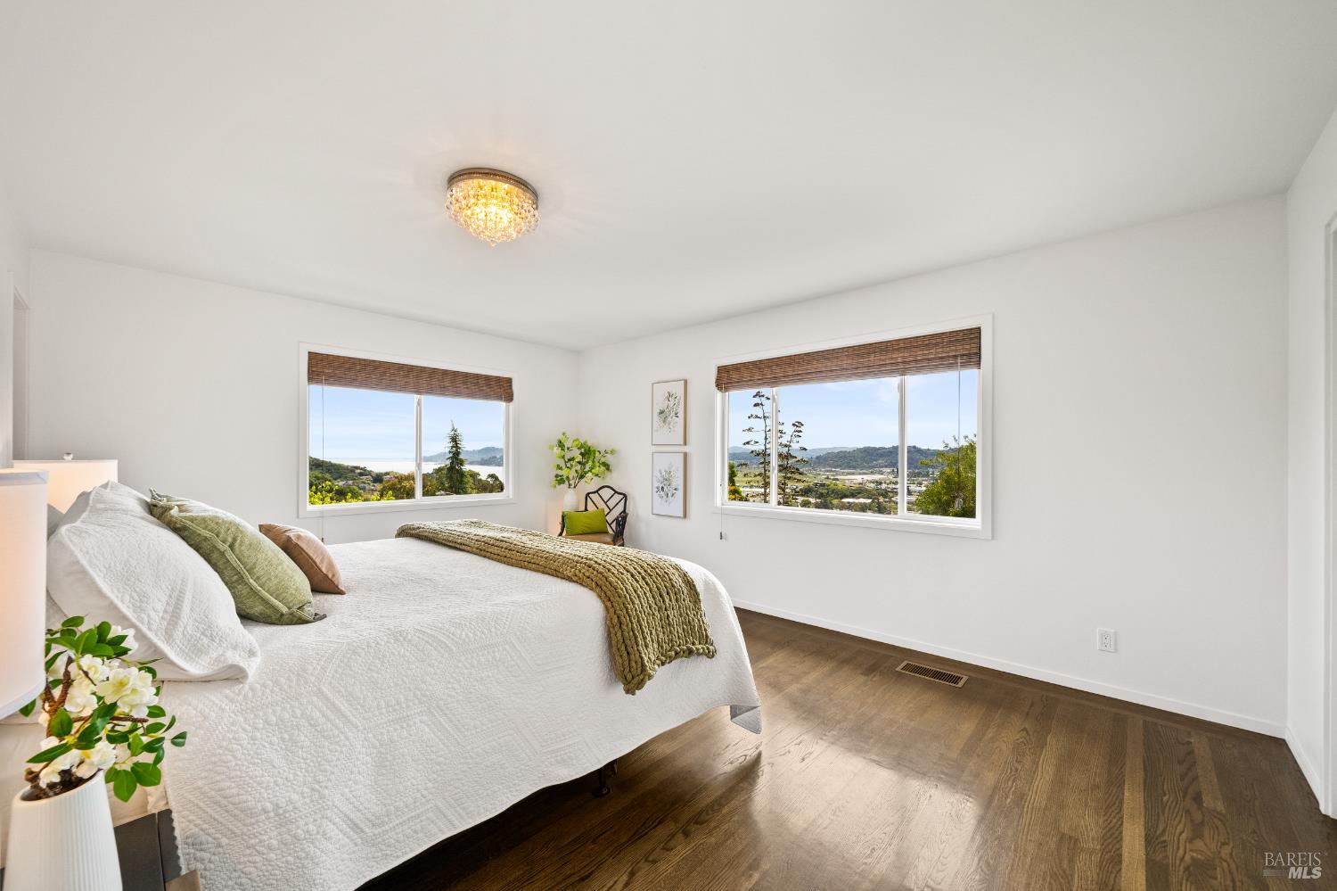 Stunning View Residence in the Heart of Greenbrae! Perched in one of Greenbrae's most coveted enclaves, this beautifully updated 3-bedroom, 2-bath home showcases views spanning the bay, the iconic Bay Bridge, rolling hills, and even a peek-a-boo view of Sutro Tower creating a breathtaking backdrop of sunrises and sunsets that never get old. Flooded with natural light, the home is designed to maximize its setting, with view outlooks from every room, rich hardwood floors, and a single level floor plan with open-concept layout ideal for both relaxed living and effortless entertaining. The inviting living room, with cozy fireplace, flows directly into the dining area with access to outdoors and an updated kitchen featuring views, quartz countertops, stainless steel appliances, wine cooler, convenient stacked washer and dryer and clean, modern finishes. The spacious primary suite offers a retreat with captivating Bay Bridge views and a spa-inspired bath complete with a soaking tub, walk-in shower, and a view window that brings the outdoorsin. Also,two spacious bedrooms with views and a bath. The property offers multiple outdoor flat living spaces including a patio for dining, artificial turf lawn, and a landscaped hillside with a tranquil waterfall feature perfect for entertaining, relaxing, or play. Additional highlights include an attached two-car garage and generous under-house storage. Ideally located just minutes from top-rated Kentfield schools, dining, local shopping, Larkspur Landing and Ferry, Country Mart, and Highway 101. This home offers a rare combination of privacy, natural beauty, and everyday convenience.