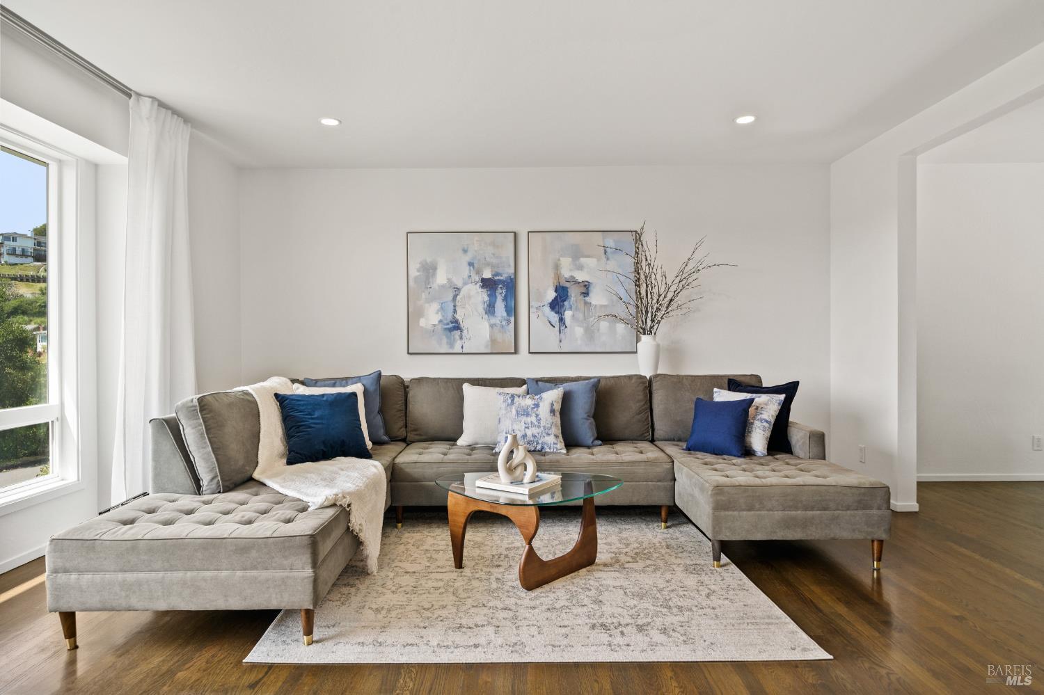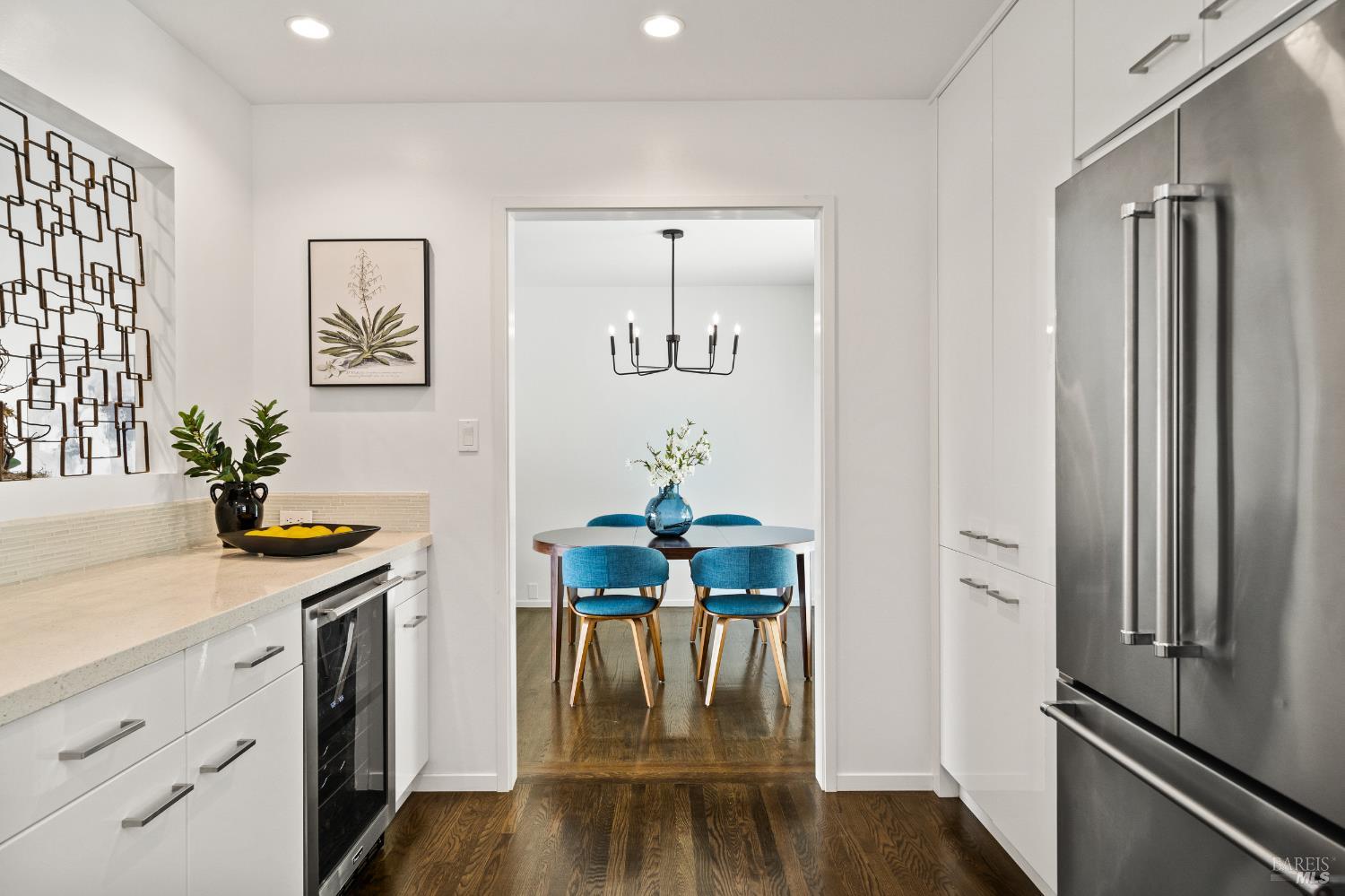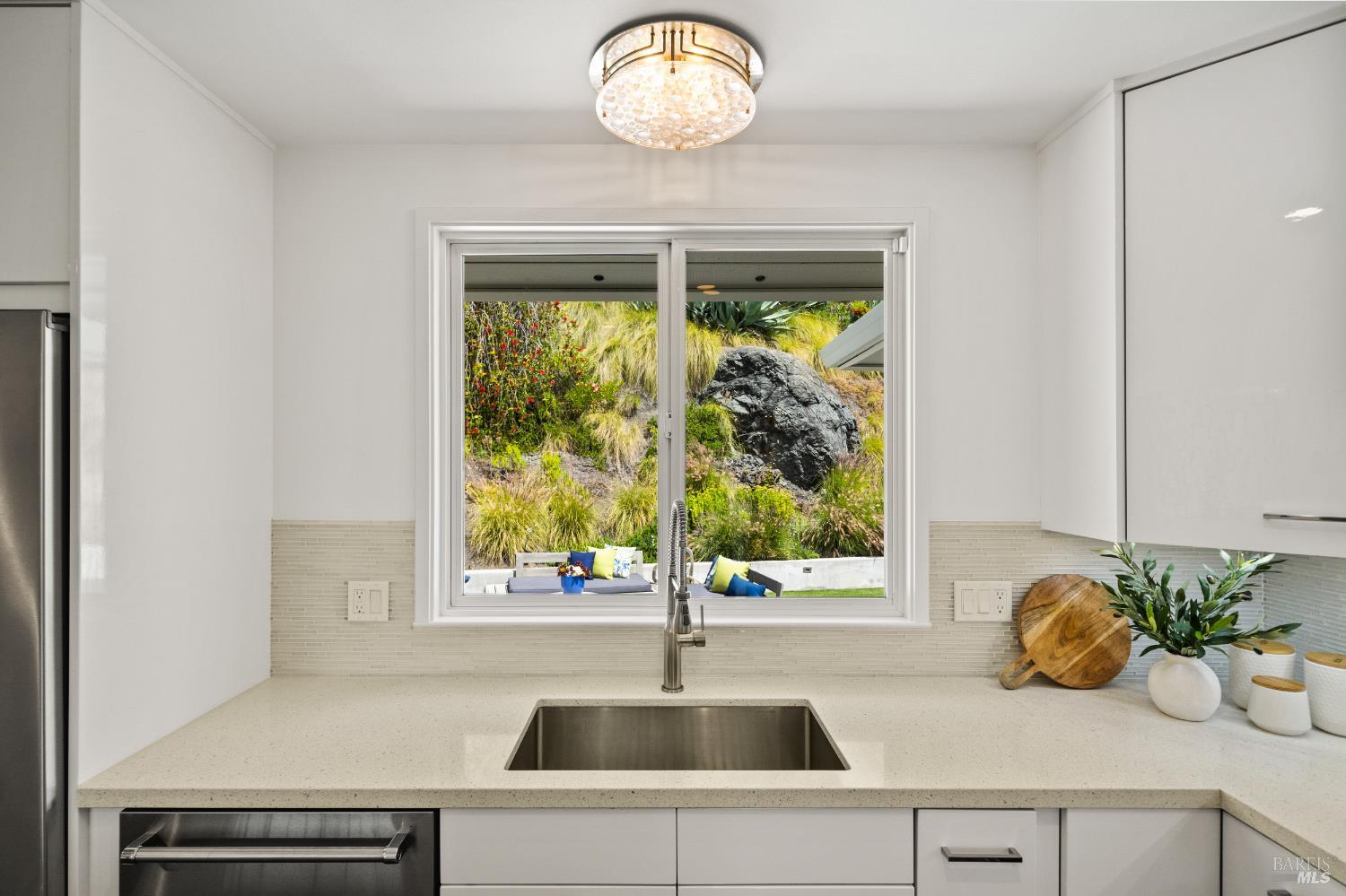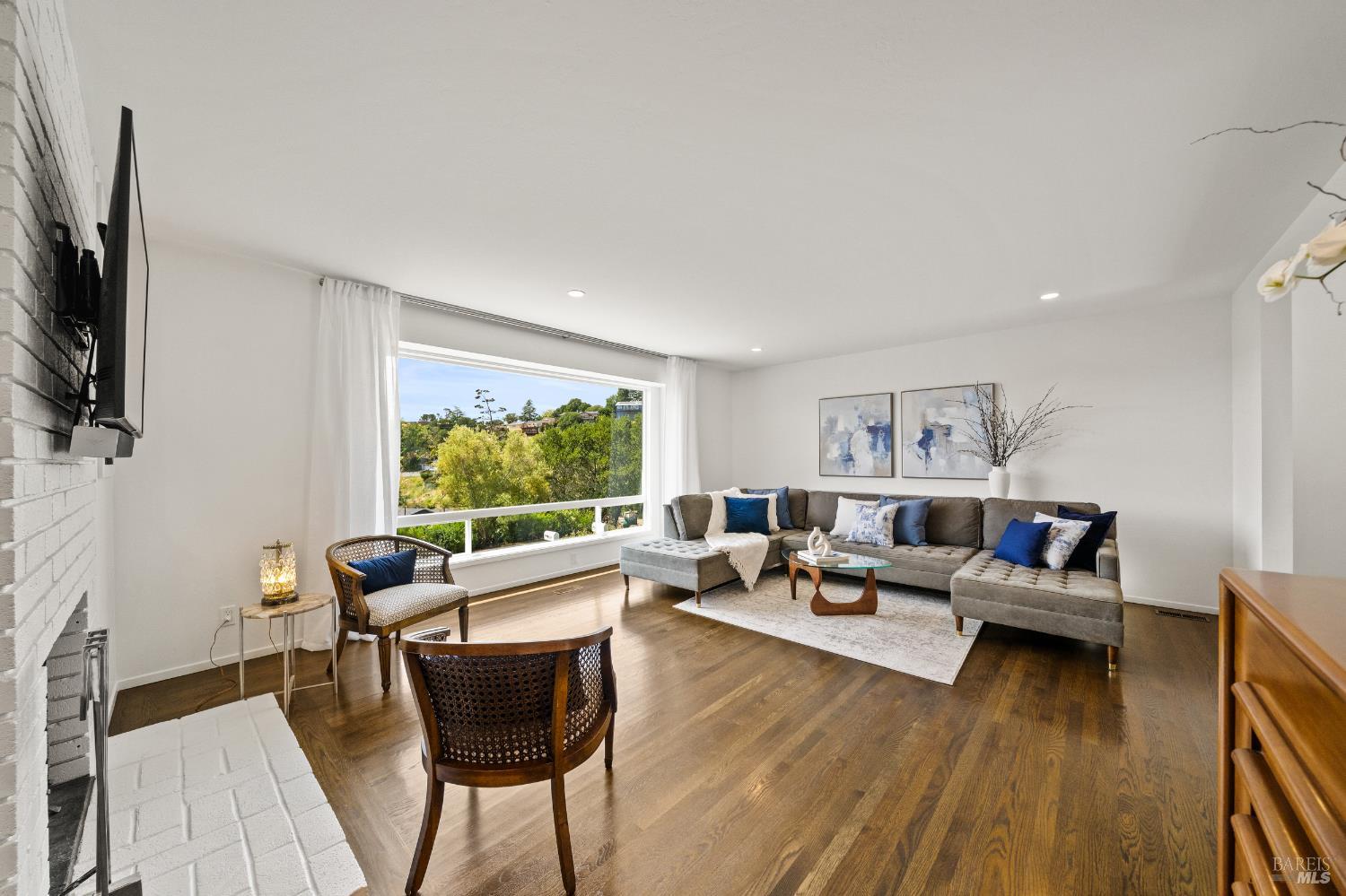 Stunning View Residence in the Heart of Greenbrae! Perched in one of Greenbrae's most coveted enclaves, this beautifully updated 3-bedroom, 2-bath home showcases views spanning the bay, the iconic Bay Bridge, rolling hills, and even a peek-a-boo view of Sutro Tower creating a breathtaking backdrop of sunrises and sunsets that never get old. Flooded with natural light, the home is designed to maximize its setting, with view outlooks from every room, rich hardwood floors, and a single level floor plan with open-concept layout ideal for both relaxed living and effortless entertaining. The inviting living room, with cozy fireplace, flows directly into the dining area with access to outdoors and an updated kitchen featuring views, quartz countertops, stainless steel appliances, wine cooler, convenient stacked washer and dryer and clean, modern finishes. The spacious primary suite offers a retreat with captivating Bay Bridge views and a spa-inspired bath complete with a soaking tub, walk-in shower, and a view window that brings the outdoorsin. Also,two spacious bedrooms with views and a bath. The property offers multiple outdoor flat living spaces including a patio for dining, artificial turf lawn, and a landscaped hillside with a tranquil waterfall feature perfect for entertaining, relaxing, or play. Additional highlights include an attached two-car garage and generous under-house storage. Ideally located just minutes from top-rated Kentfield schools, dining, local shopping, Larkspur Landing and Ferry, Country Mart, and Highway 101. This home offers a rare combination of privacy, natural beauty, and everyday convenience.