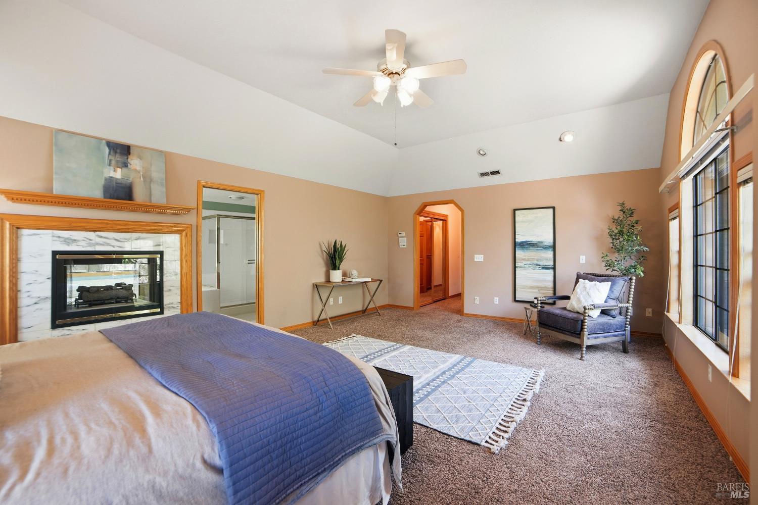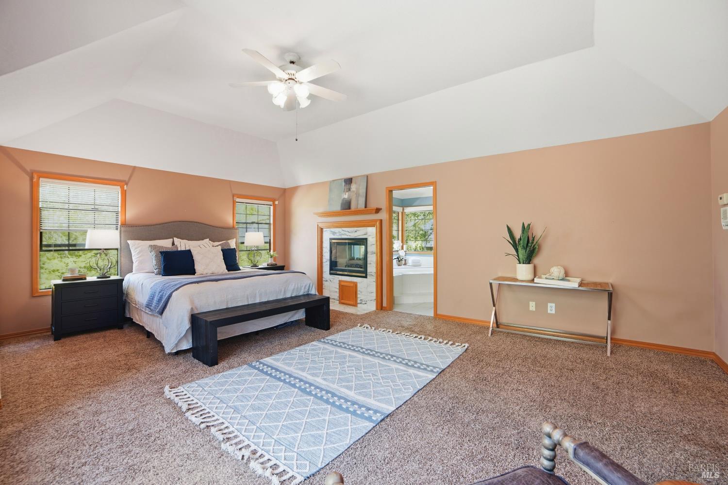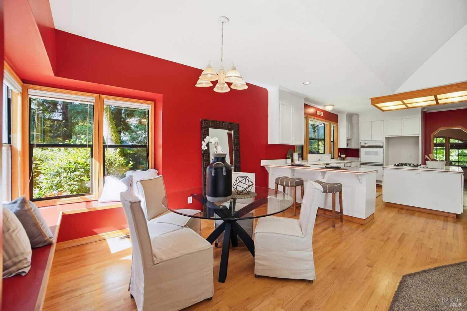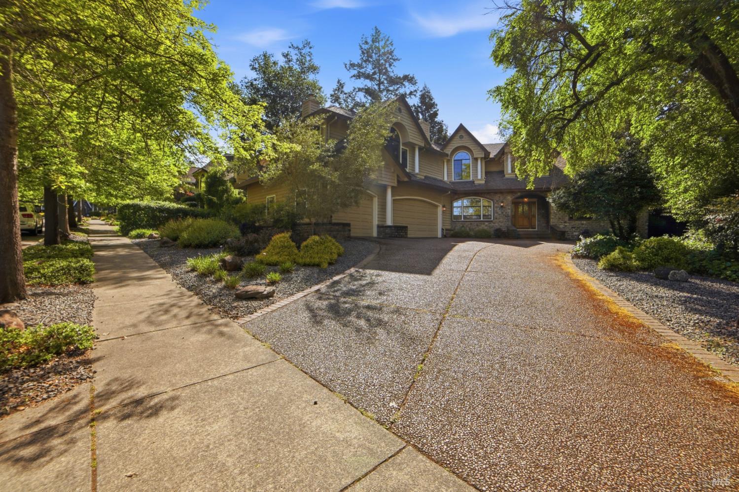 Experience elegant living in this desirable Bennett Valley residence, where timeless design meets everyday comfort. Offering 4,300+/-sqft of living space, this impressive residence features five bedrooms and four bathrooms ( one of the bedrooms with ensuite bathroom on main level ) set on a generous .44+/-acre lot. A welcoming formal entry introduces elegant interiors, including a refined dining room with custom built-ins and a stylish living room highlighted by expansive windows, a warm fireplace, and thoughtfully integrated cabinetry. The main living area is designed for both relaxation and entertaining, showcasing cathedral ceilings, a fireplace, wet bar and french doors that open to a serene backyard. The well-appointed kitchen blends form and function, featuring a sunny breakfast area, center island, pantry closet, and ample cabinetry. The spacious primary suite offers a peaceful retreat, complete with its own fireplace and a luxurious en-suite bath with soaking tub, dual vanities, separate shower, extensive cabinetry, and a sizeable walk-in closet. Surrounded by mature landscaping, the outdoor space provides a private and picturesque backdrop. Additional features include air conditioning, owned solar, an indoor laundry room with sink and plenty of cabinetry, and a three-car garage. A rare offering in beautiful Bennett Valley.