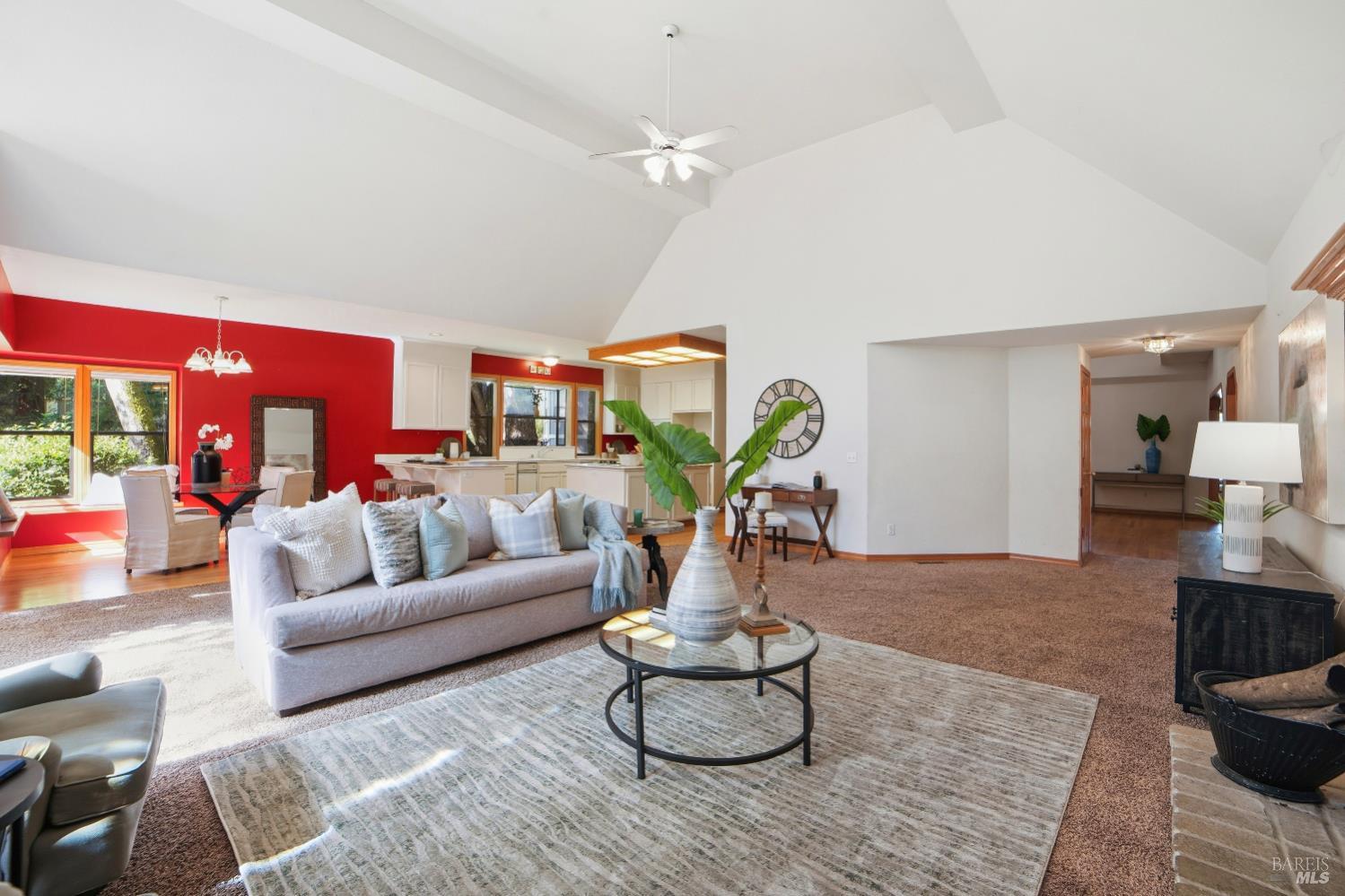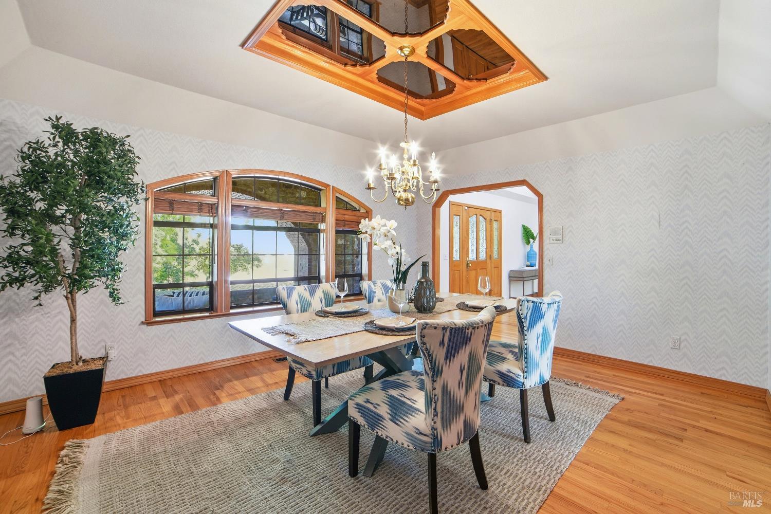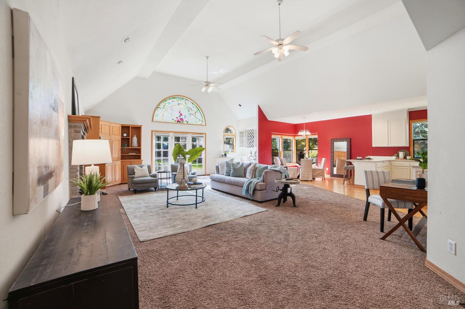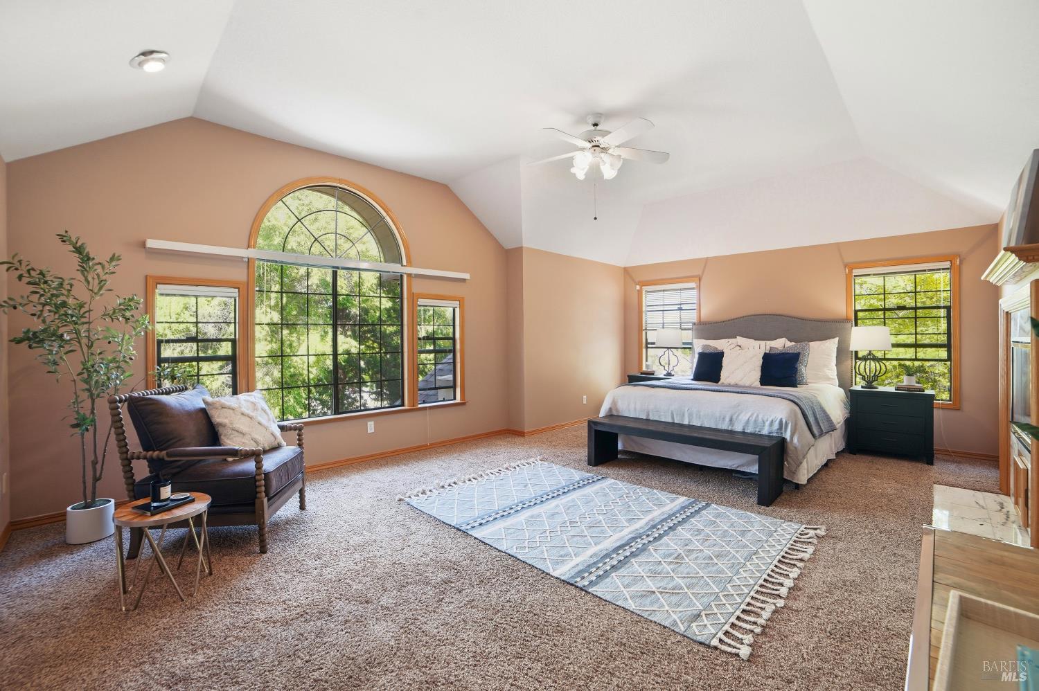 Experience elegant living in this desirable Bennett Valley residence, where timeless design meets everyday comfort. Offering 4,300+/-sqft of living space, this impressive residence features five bedrooms and four bathrooms ( one of the bedrooms with ensuite bathroom on main level ) set on a generous .44+/-acre lot. A welcoming formal entry introduces elegant interiors, including a refined dining room with custom built-ins and a stylish living room highlighted by expansive windows, a warm fireplace, and thoughtfully integrated cabinetry. The main living area is designed for both relaxation and entertaining, showcasing cathedral ceilings, a fireplace, wet bar and french doors that open to a serene backyard. The well-appointed kitchen blends form and function, featuring a sunny breakfast area, center island, pantry closet, and ample cabinetry. The spacious primary suite offers a peaceful retreat, complete with its own fireplace and a luxurious en-suite bath with soaking tub, dual vanities, separate shower, extensive cabinetry, and a sizeable walk-in closet. Surrounded by mature landscaping, the outdoor space provides a private and picturesque backdrop. Additional features include air conditioning, owned solar, an indoor laundry room with sink and plenty of cabinetry, and a three-car garage. A rare offering in beautiful Bennett Valley.