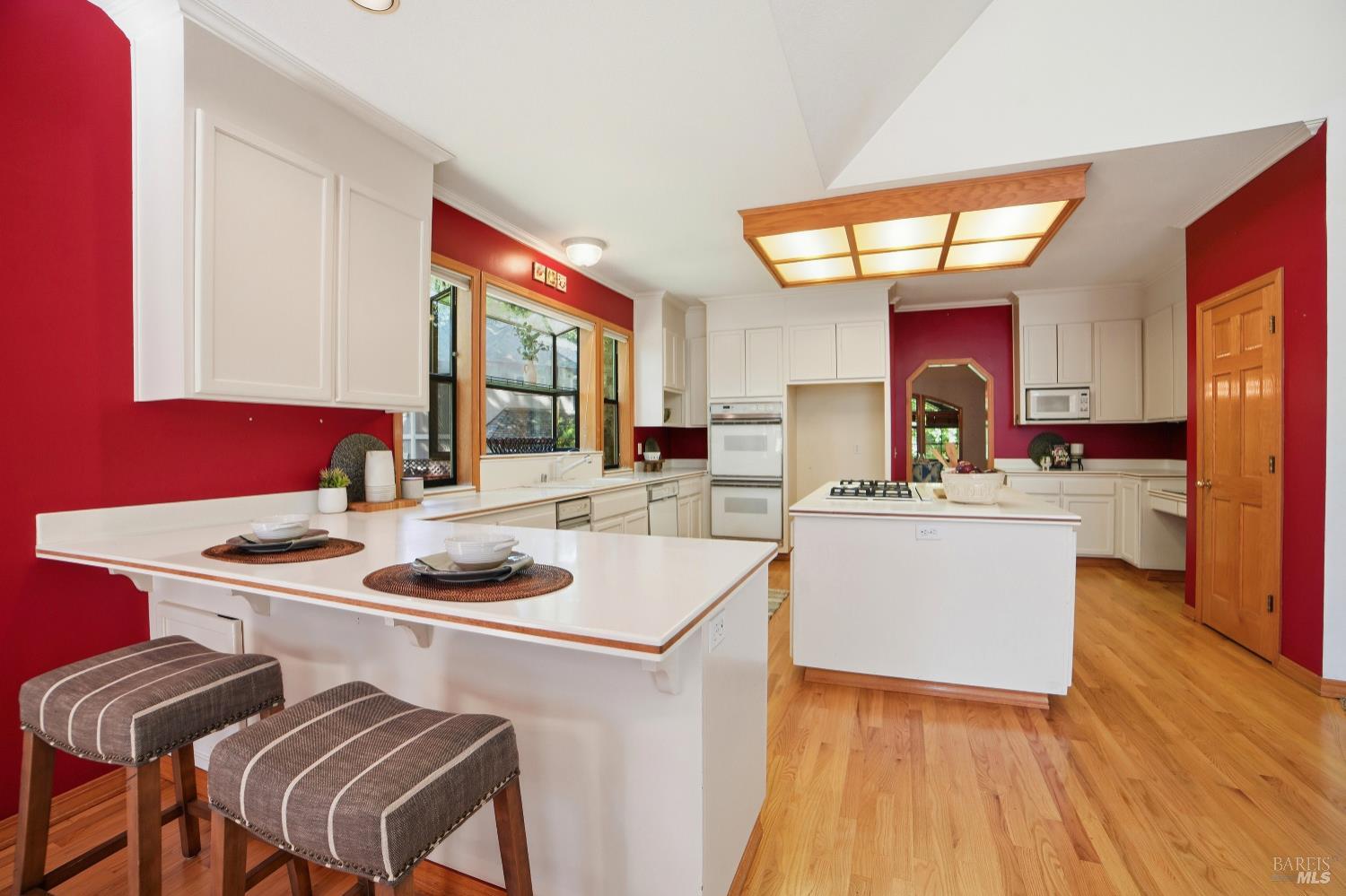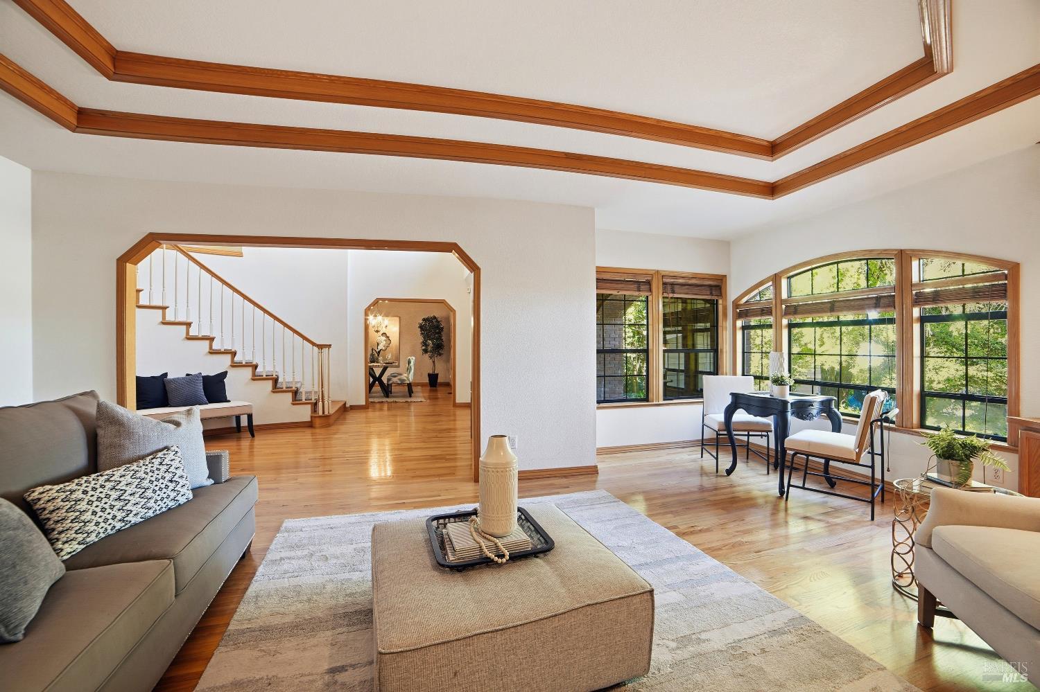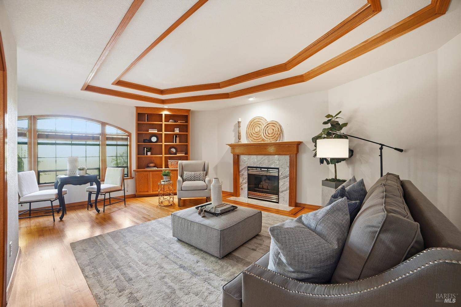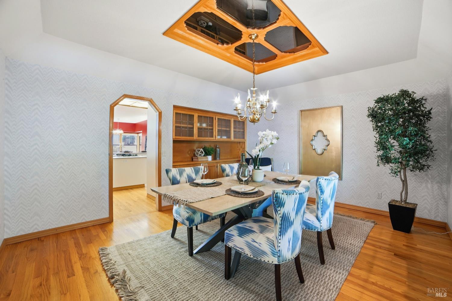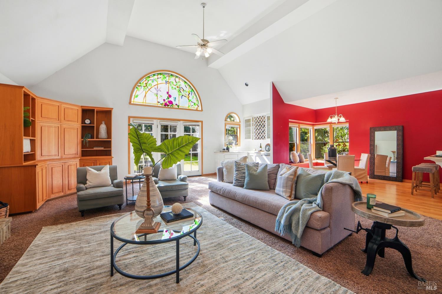 Experience elegant living in this desirable Bennett Valley residence, where timeless design meets everyday comfort. Offering 4,300+/-sqft of living space, this impressive residence features five bedrooms and four bathrooms ( one of the bedrooms with ensuite bathroom on main level ) set on a generous .44+/-acre lot. A welcoming formal entry introduces elegant interiors, including a refined dining room with custom built-ins and a stylish living room highlighted by expansive windows, a warm fireplace, and thoughtfully integrated cabinetry. The main living area is designed for both relaxation and entertaining, showcasing cathedral ceilings, a fireplace, wet bar and french doors that open to a serene backyard. The well-appointed kitchen blends form and function, featuring a sunny breakfast area, center island, pantry closet, and ample cabinetry. The spacious primary suite offers a peaceful retreat, complete with its own fireplace and a luxurious en-suite bath with soaking tub, dual vanities, separate shower, extensive cabinetry, and a sizeable walk-in closet. Surrounded by mature landscaping, the outdoor space provides a private and picturesque backdrop. Additional features include air conditioning, owned solar, an indoor laundry room with sink and plenty of cabinetry, and a three-car garage. A rare offering in beautiful Bennett Valley.