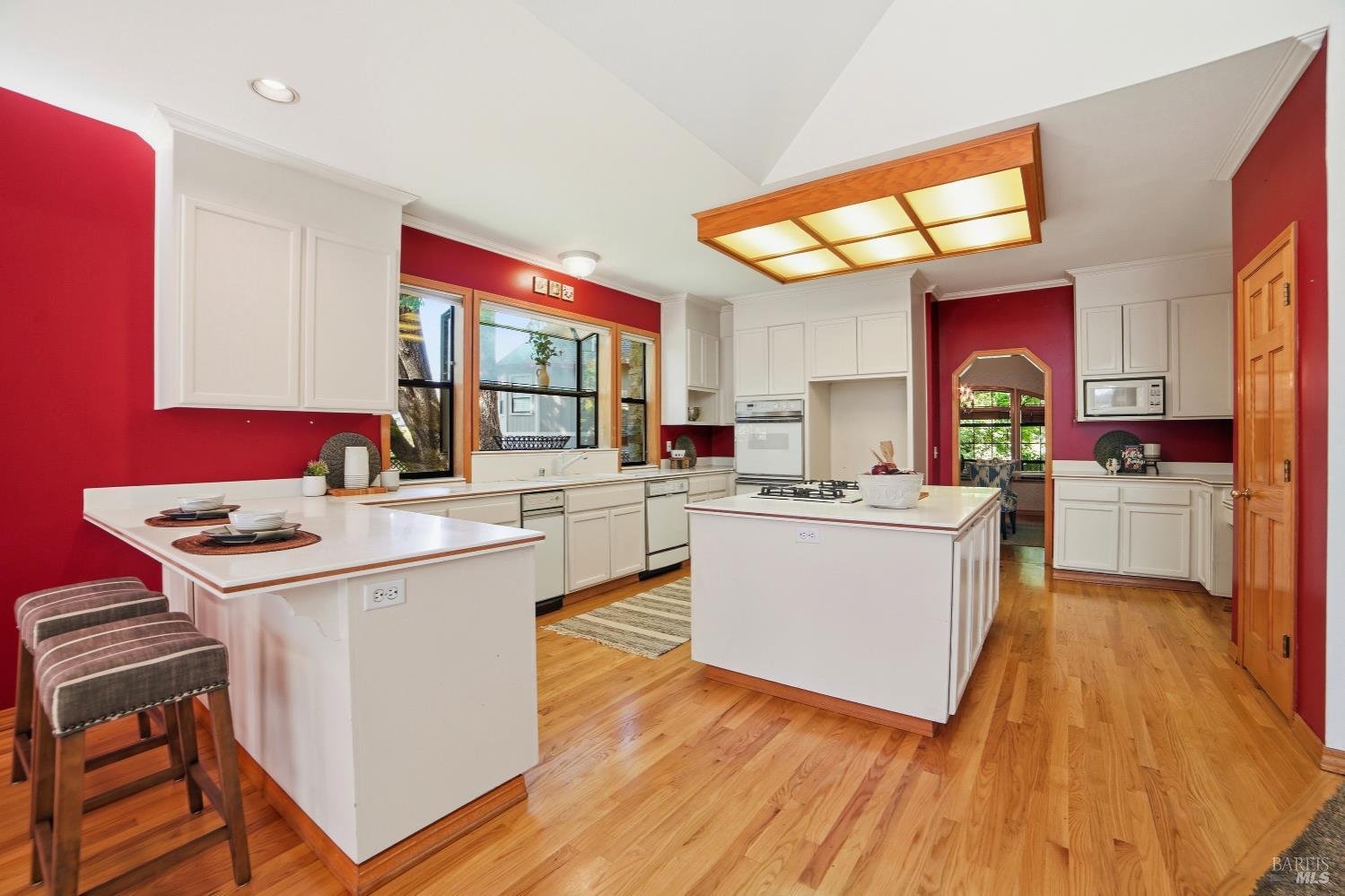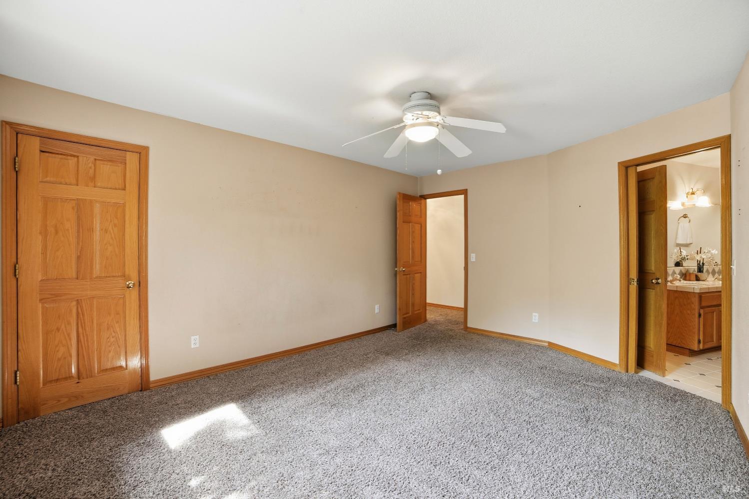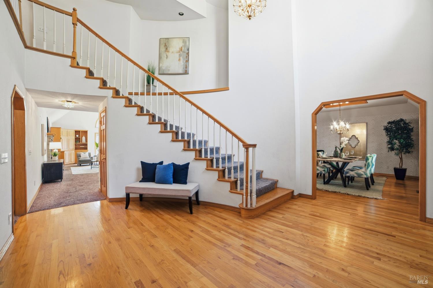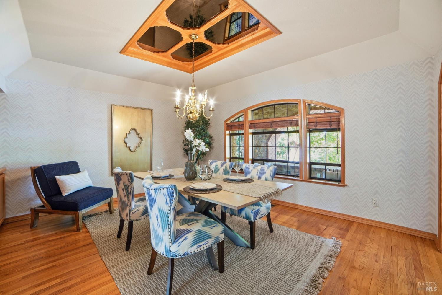 Experience elegant living in this desirable Bennett Valley residence, where timeless design meets everyday comfort. Offering 4,300+/-sqft of living space, this impressive residence features five bedrooms and four bathrooms ( one of the bedrooms with ensuite bathroom on main level ) set on a generous .44+/-acre lot. A welcoming formal entry introduces elegant interiors, including a refined dining room with custom built-ins and a stylish living room highlighted by expansive windows, a warm fireplace, and thoughtfully integrated cabinetry. The main living area is designed for both relaxation and entertaining, showcasing cathedral ceilings, a fireplace, wet bar and french doors that open to a serene backyard. The well-appointed kitchen blends form and function, featuring a sunny breakfast area, center island, pantry closet, and ample cabinetry. The spacious primary suite offers a peaceful retreat, complete with its own fireplace and a luxurious en-suite bath with soaking tub, dual vanities, separate shower, extensive cabinetry, and a sizeable walk-in closet. Surrounded by mature landscaping, the outdoor space provides a private and picturesque backdrop. Additional features include air conditioning, owned solar, an indoor laundry room with sink and plenty of cabinetry, and a three-car garage. A rare offering in beautiful Bennett Valley.