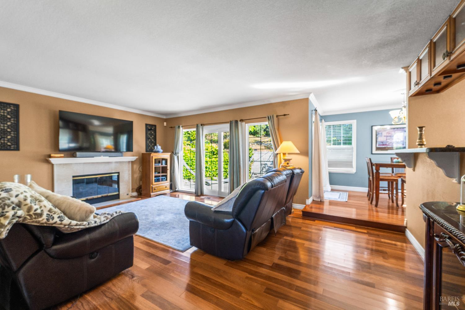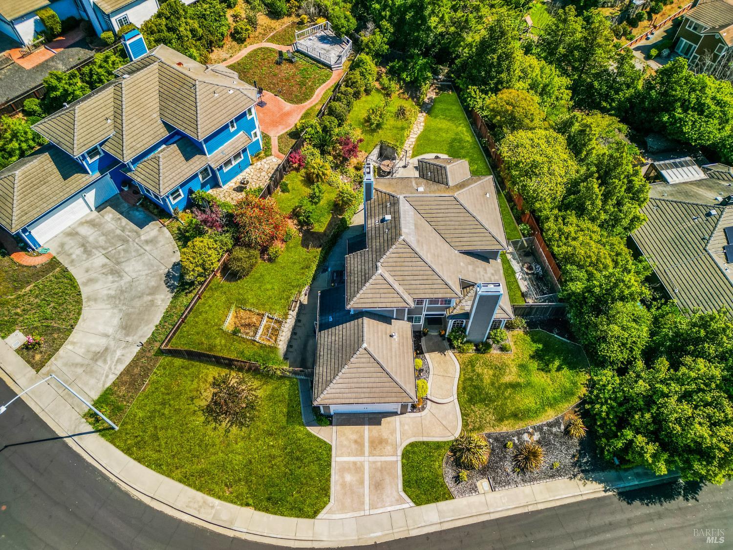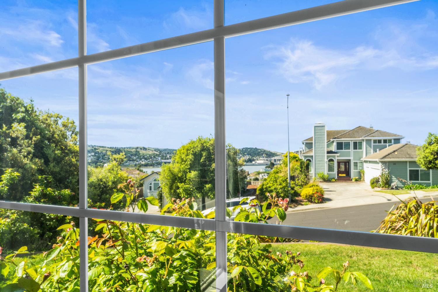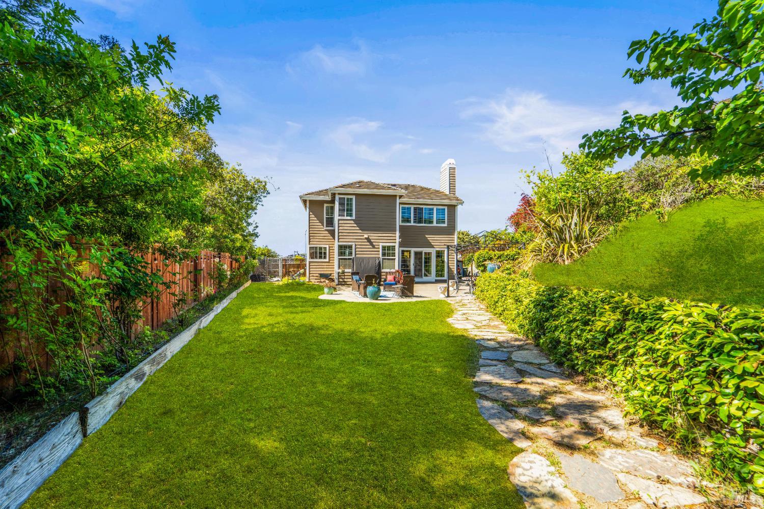 Perched in the highly sought after Glen Cove neighborhood, situated on a desirable cul-de-sac. This spacious residence offers 4-bedroom, 3-bath with over 2,500 square feet of living space. Offering charm, generous living space, and sits on an expansive lot with beautiful views and exceptional potential. Thoughtfully designed with a generous floor plan and abundant natural light, the home features elegant Brazilian teak hardwood floors adding timeless style throughout the living spaces. Multiple gathering areas provide flexibility for both everyday comfort and entertaining, while the versatile layout offers room for a home office, guests, or multigenerational living. A highly desirable downstairs bedroom and full bath provide excellent flexibility for guests and functional living or work space. The kitchen and main living areas flow seamlessly together, creating an inviting setting for daily living and special occasions alike. Upstairs, additional spacious bedrooms and loft area offers comfort and versatility. Step outside to a beautifully landscaped backyard retreat filled with lush greenery, mature surroundings, and endless potential. This private setting offers a rare opportunity to elevate your outdoor living space while enjoying the Glen Cove surroundings. Ideally situated near schools, parks, waterfront trails, and Glen Cove Marina. With convenient access to I780, I80, San Francisco Bay Ferry, and Amtrak for an easy commute to San Francisco, Napa, and Sacramento.