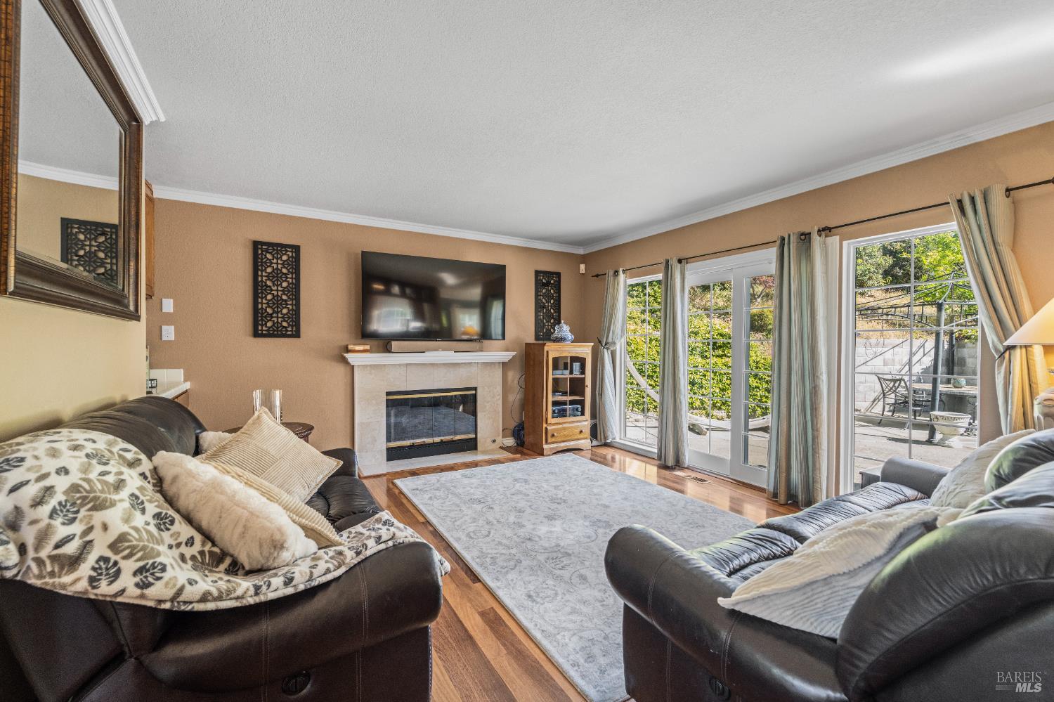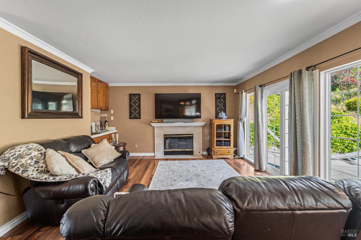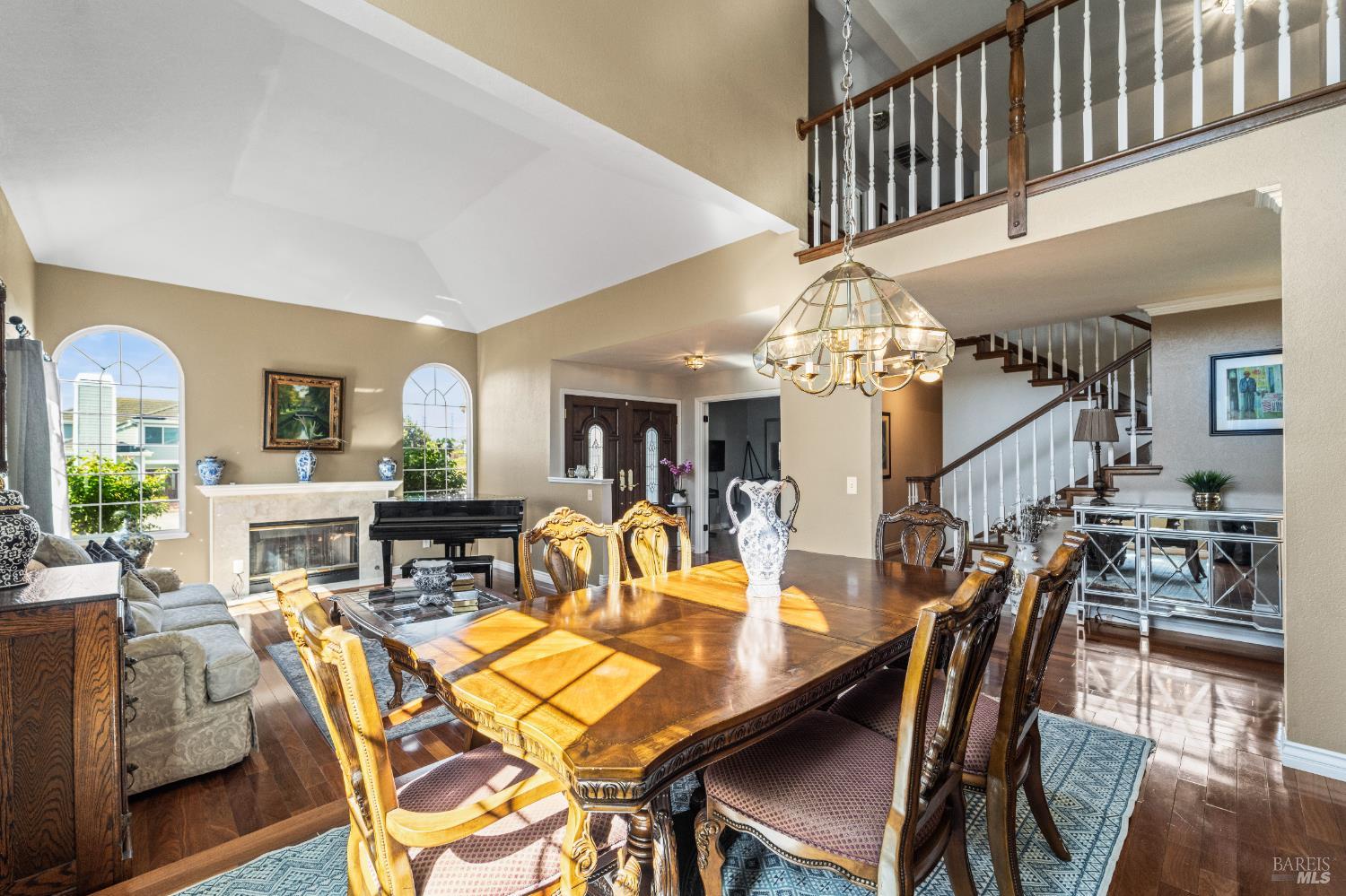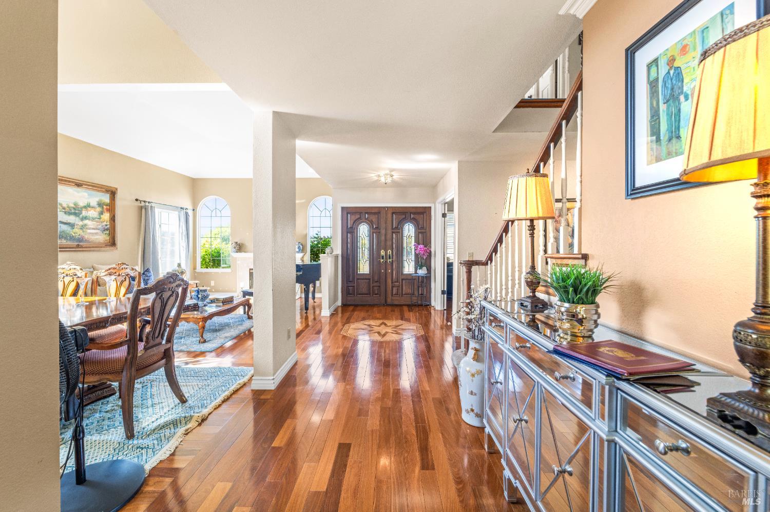 Perched in the highly sought after Glen Cove neighborhood, situated on a desirable cul-de-sac. This spacious residence offers 4-bedroom, 3-bath with over 2,500 square feet of living space. Offering charm, generous living space, and sits on an expansive lot with beautiful views and exceptional potential. Thoughtfully designed with a generous floor plan and abundant natural light, the home features elegant Brazilian teak hardwood floors adding timeless style throughout the living spaces. Multiple gathering areas provide flexibility for both everyday comfort and entertaining, while the versatile layout offers room for a home office, guests, or multigenerational living. A highly desirable downstairs bedroom and full bath provide excellent flexibility for guests and functional living or work space. The kitchen and main living areas flow seamlessly together, creating an inviting setting for daily living and special occasions alike. Upstairs, additional spacious bedrooms and loft area offers comfort and versatility. Step outside to a beautifully landscaped backyard retreat filled with lush greenery, mature surroundings, and endless potential. This private setting offers a rare opportunity to elevate your outdoor living space while enjoying the Glen Cove surroundings. Ideally situated near schools, parks, waterfront trails, and Glen Cove Marina. With convenient access to I780, I80, San Francisco Bay Ferry, and Amtrak for an easy commute to San Francisco, Napa, and Sacramento.