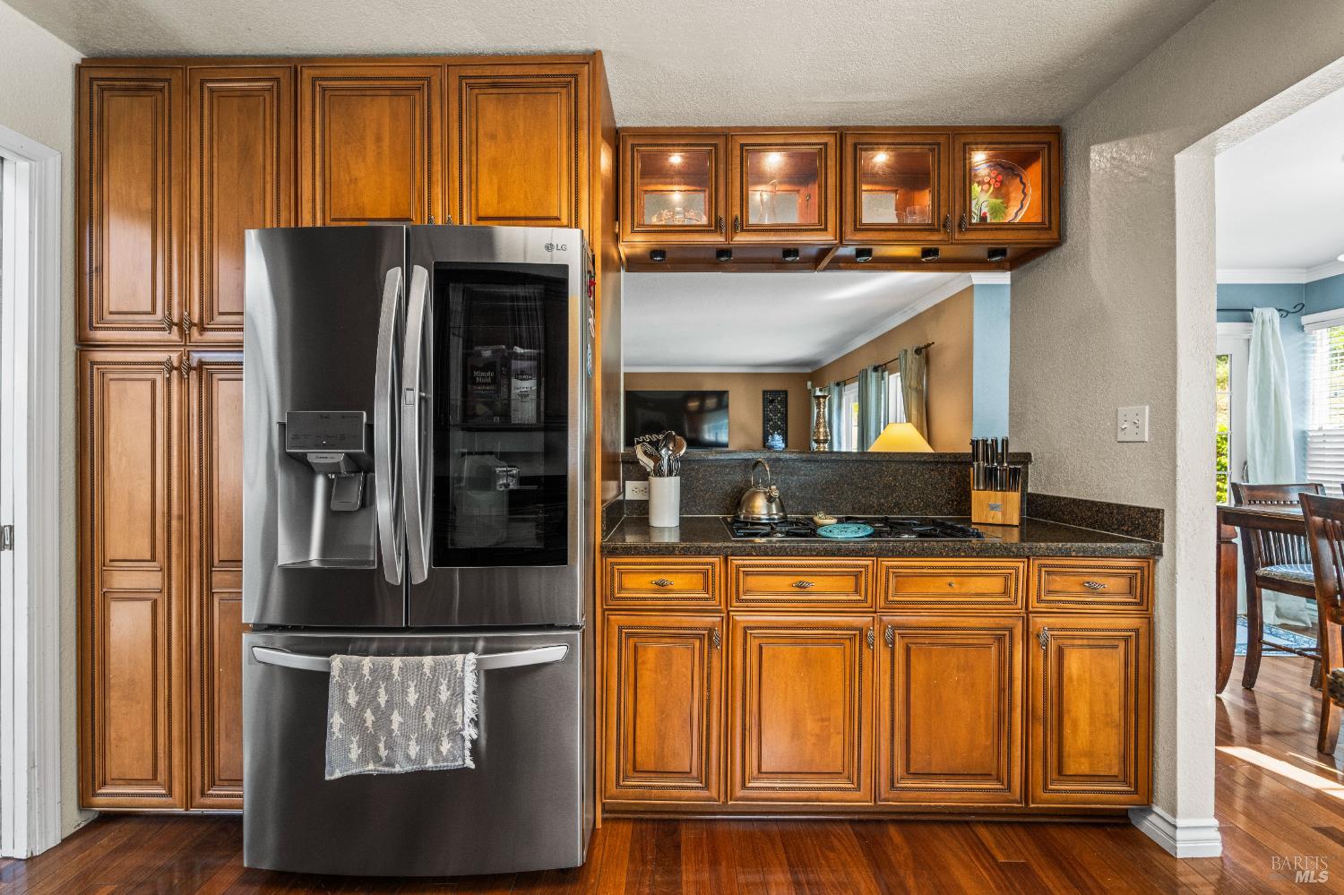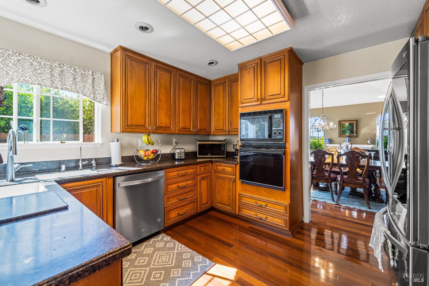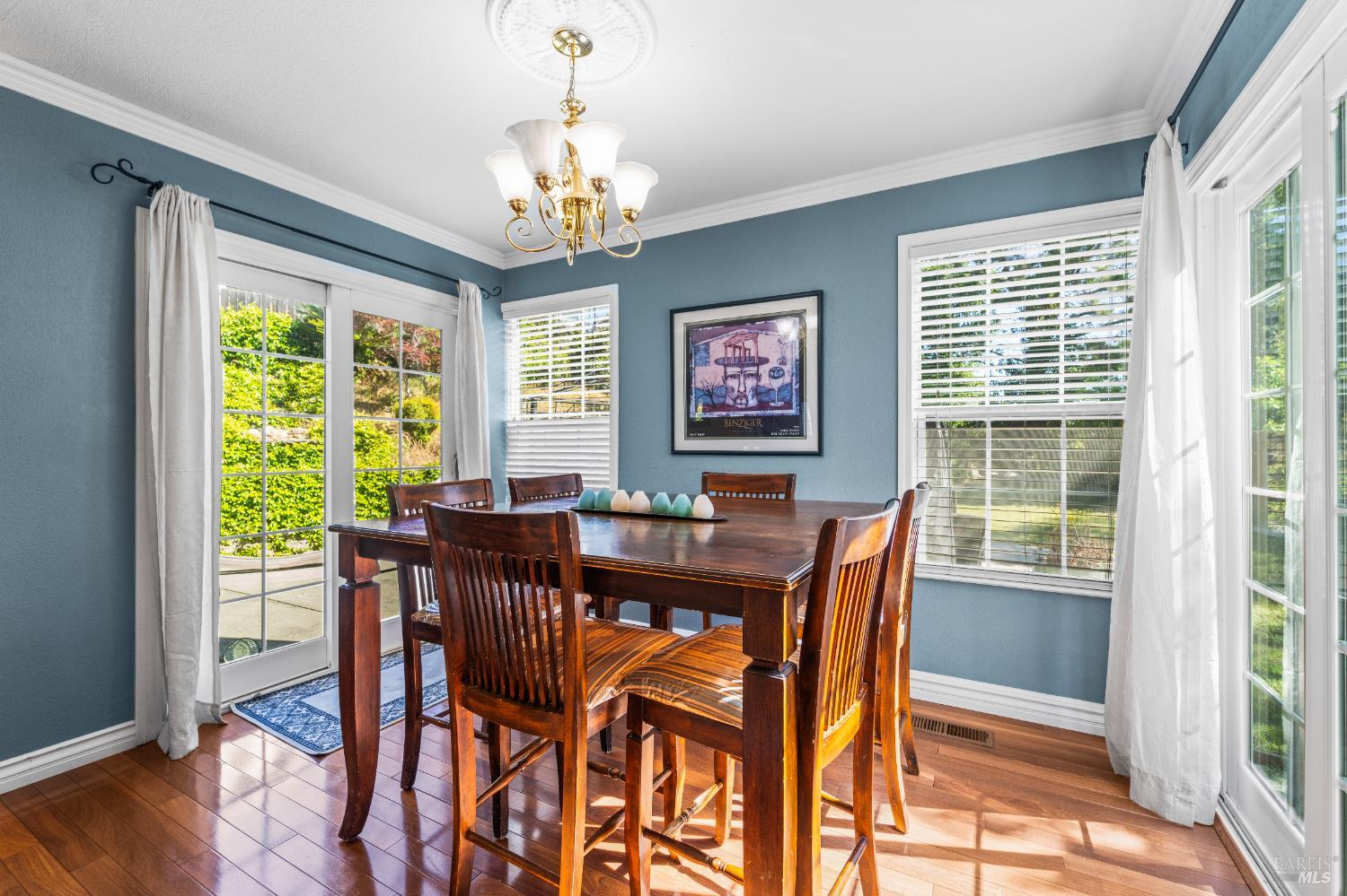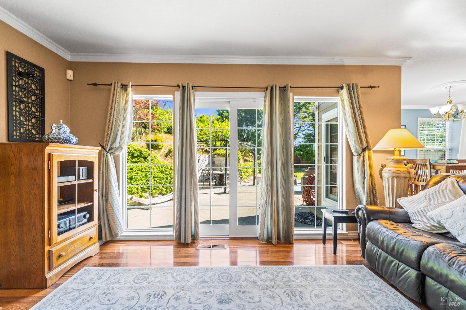 Perched in the highly sought after Glen Cove neighborhood, situated on a desirable cul-de-sac. This spacious residence offers 4-bedroom, 3-bath with over 2,500 square feet of living space. Offering charm, generous living space, and sits on an expansive lot with beautiful views and exceptional potential. Thoughtfully designed with a generous floor plan and abundant natural light, the home features elegant Brazilian teak hardwood floors adding timeless style throughout the living spaces. Multiple gathering areas provide flexibility for both everyday comfort and entertaining, while the versatile layout offers room for a home office, guests, or multigenerational living. A highly desirable downstairs bedroom and full bath provide excellent flexibility for guests and functional living or work space. The kitchen and main living areas flow seamlessly together, creating an inviting setting for daily living and special occasions alike. Upstairs, additional spacious bedrooms and loft area offers comfort and versatility. Step outside to a beautifully landscaped backyard retreat filled with lush greenery, mature surroundings, and endless potential. This private setting offers a rare opportunity to elevate your outdoor living space while enjoying the Glen Cove surroundings. Ideally situated near schools, parks, waterfront trails, and Glen Cove Marina. With convenient access to I780, I80, San Francisco Bay Ferry, and Amtrak for an easy commute to San Francisco, Napa, and Sacramento.