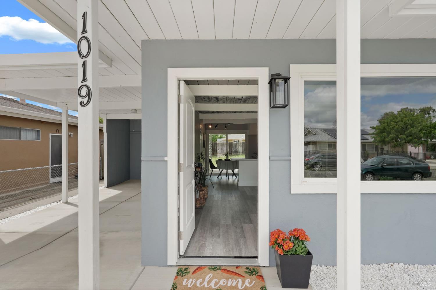 Stop scrolling - this is the one you've been waiting for! This fully updated 3-bedroom, 1-bath home is the perfect opportunity to step into homeownership with style, comfort, and tons of potential for expansion! From the moment you arrive, you'll notice the fresh curb appeal with a brand-new driveway, roof, and all-new windows. Step inside to a bright, modern interior featuring fresh paint inside and out, brand new flooring and carpet throughout, making this home truly move-in ready! The kitchen comes equipped with pristine white cabinets, sparkling new countertops and all new stainless steel appliances. Off the carport and just steps from the kitchen, you'll find a dedicated laundry area housing a brand-new convenient stacked washer and dryer unit. You will love the large attached storage room, offering tons of extra space that's hard to find at this price point! Looking to grow into your home? You're already ahead of the game! Plumbing is in place in the carport for a future bedroom and bathroom addition, giving you flexibility as your needs evolve. The huge backyard is lovely and peaceful, and even has an existing kennel set up for your four-legged family members! Relax on the covered patio and listen to the breeze rustle the leaves of the surrounding mature trees- you won't find a yard like this in a new development! You could easily fit an ADU with room to spare! Imagine the ability to create rental income, space for extended family, or even a private office or workshop! Concerned about soaring energy prices? You are going to be sooo grateful for the owned solar system! Won't it be GREAT to keep monthly costs down while you build equity? Beautiful, affordable, and full of opportunity - this one won't last long so check it out now!