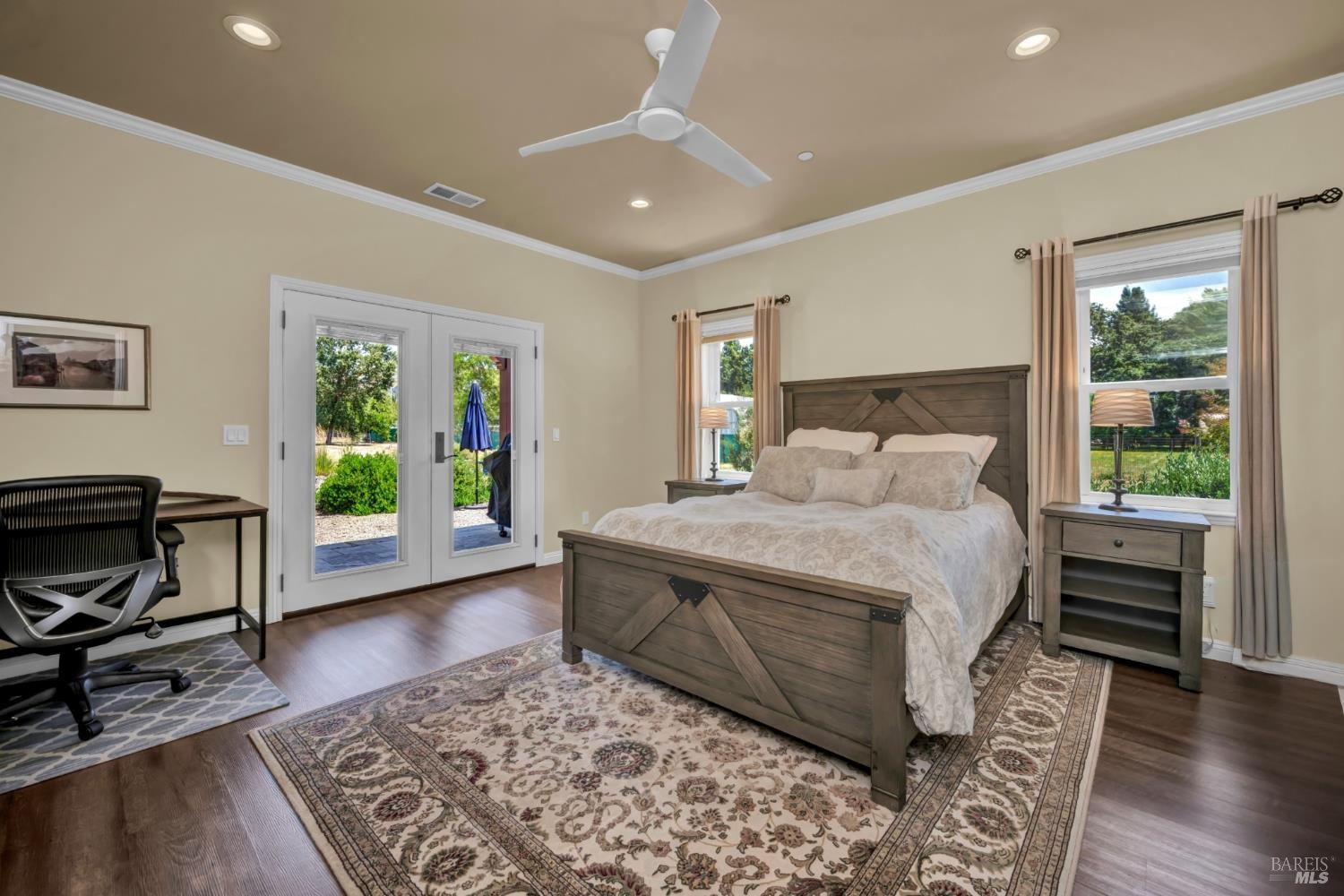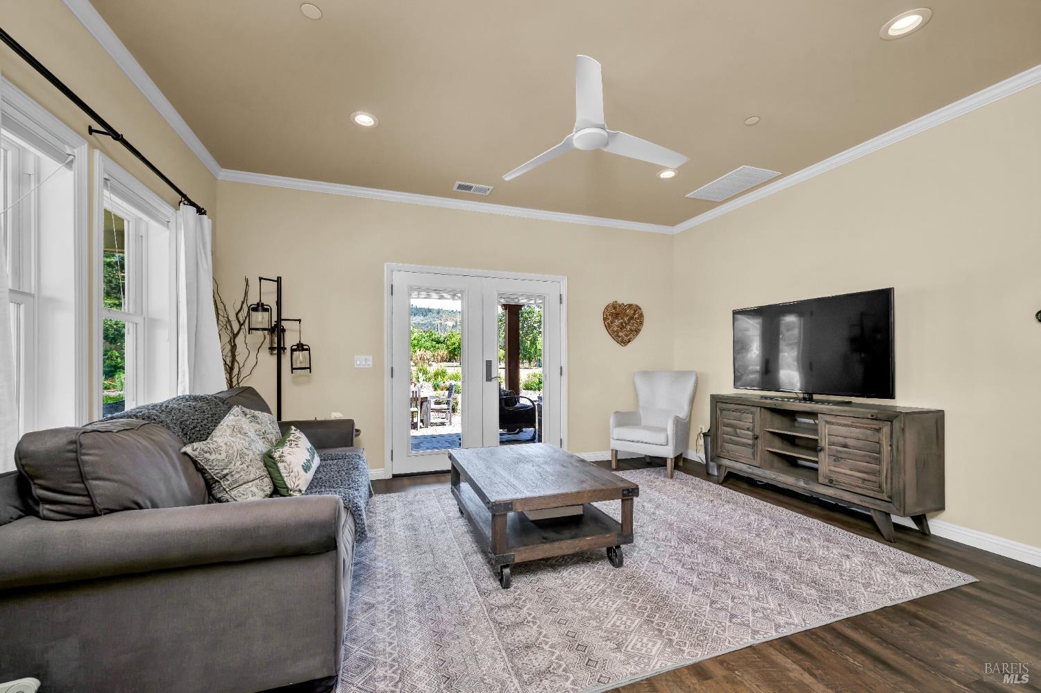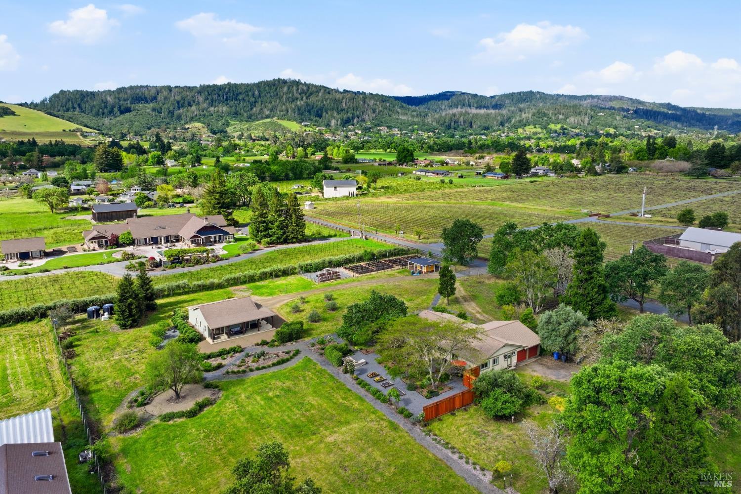 Experience the best of wine country living at this exceptional Kenwood property set on 5 usable acres with captivating vineyard and Mayacamas Mountain views. The main residence, built in 1976, offers 3 bedrooms and 2.5 bathrooms with a seamless single-level layout ideal for everyday living and entertaining. A versatile space off the family room works perfectly as a home office, studio, or playroom. A detached cottage, built in 2017, features 1 bedroom and 1 bathroom, ideal for guests, extended family, or rental potential. Both residences offer A/C and their own generators connected to the natural gas line. Enjoy hobby vineyards, established fruit and nut trees (grape, peach, apple, quince, pomegranate, walnut), and beautifully maintained garden areas with automated irrigation and low-voltage lighting. Multiple outdoor spaces invite al fresco dining and relaxation. The usable land offers room for expansion, a pool, or further improvements, plus two RV hookups with clean-outs. The permitted septic mound supports up to 10 bedrooms, offering exceptional future flexibility. Located minutes from Chateau St. Jean, St. Francis Winery, and Landmark Vineyards, this property blends privacy, natural beauty, and the Sonoma Valley lifestyle.