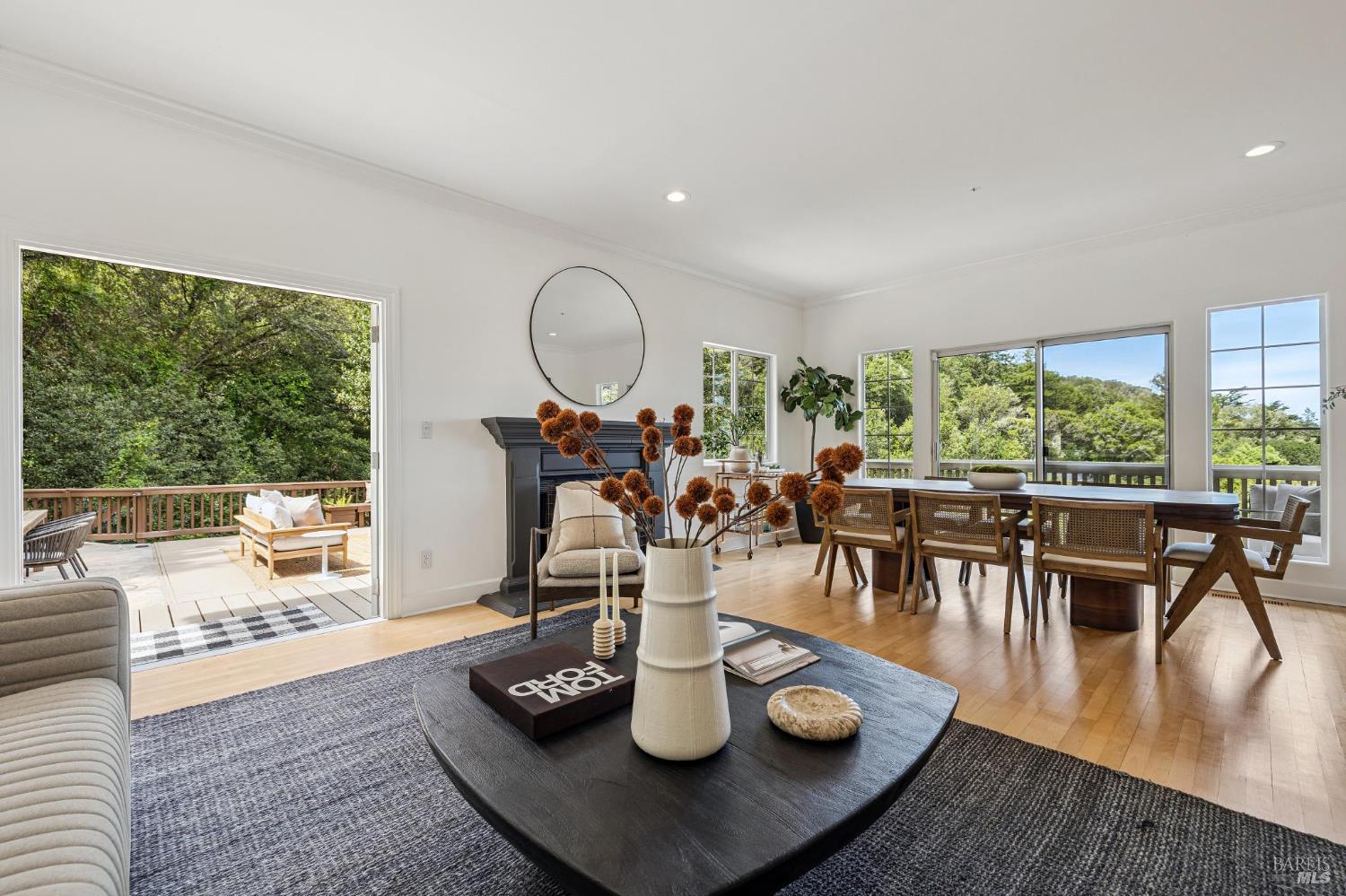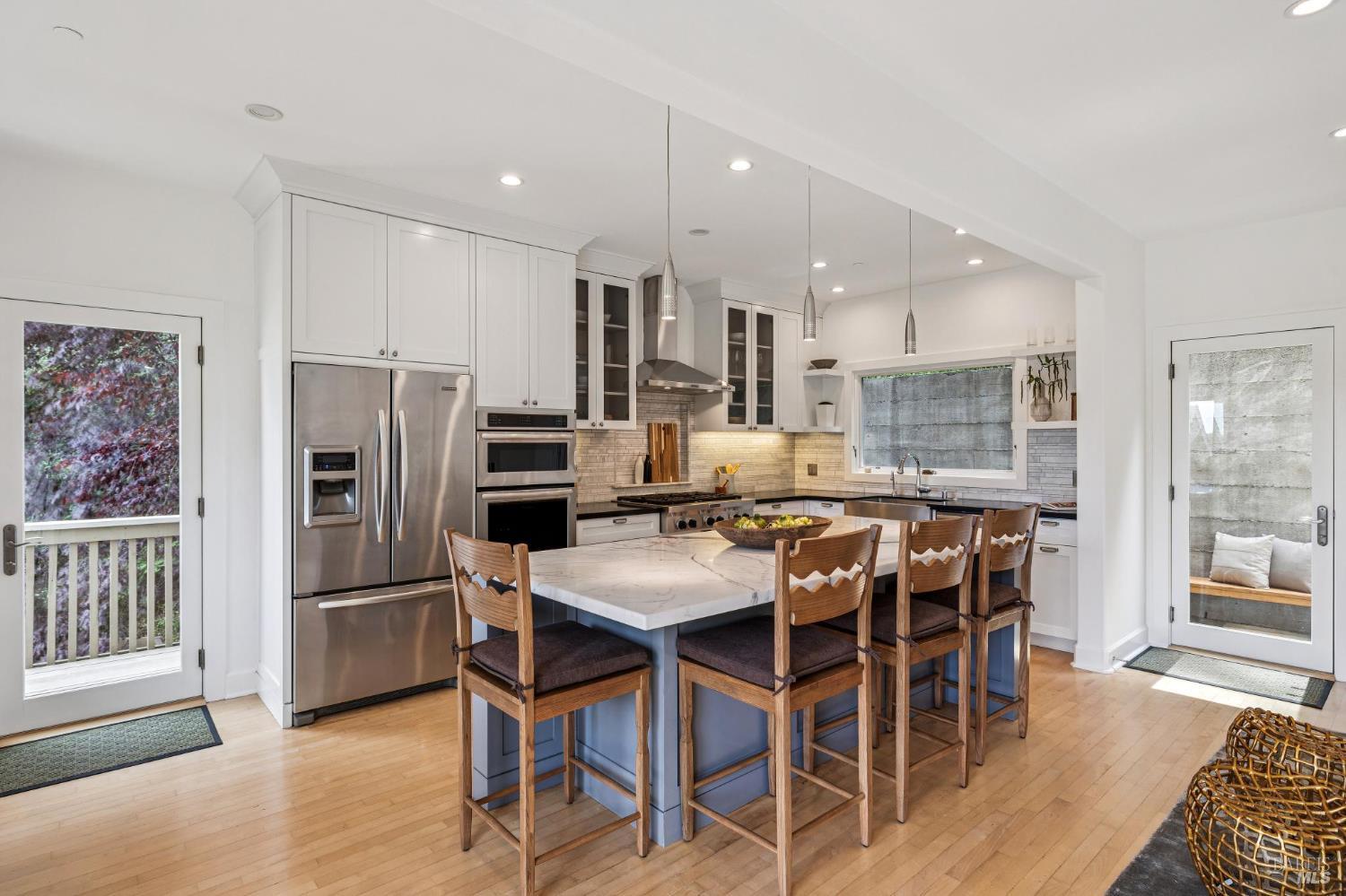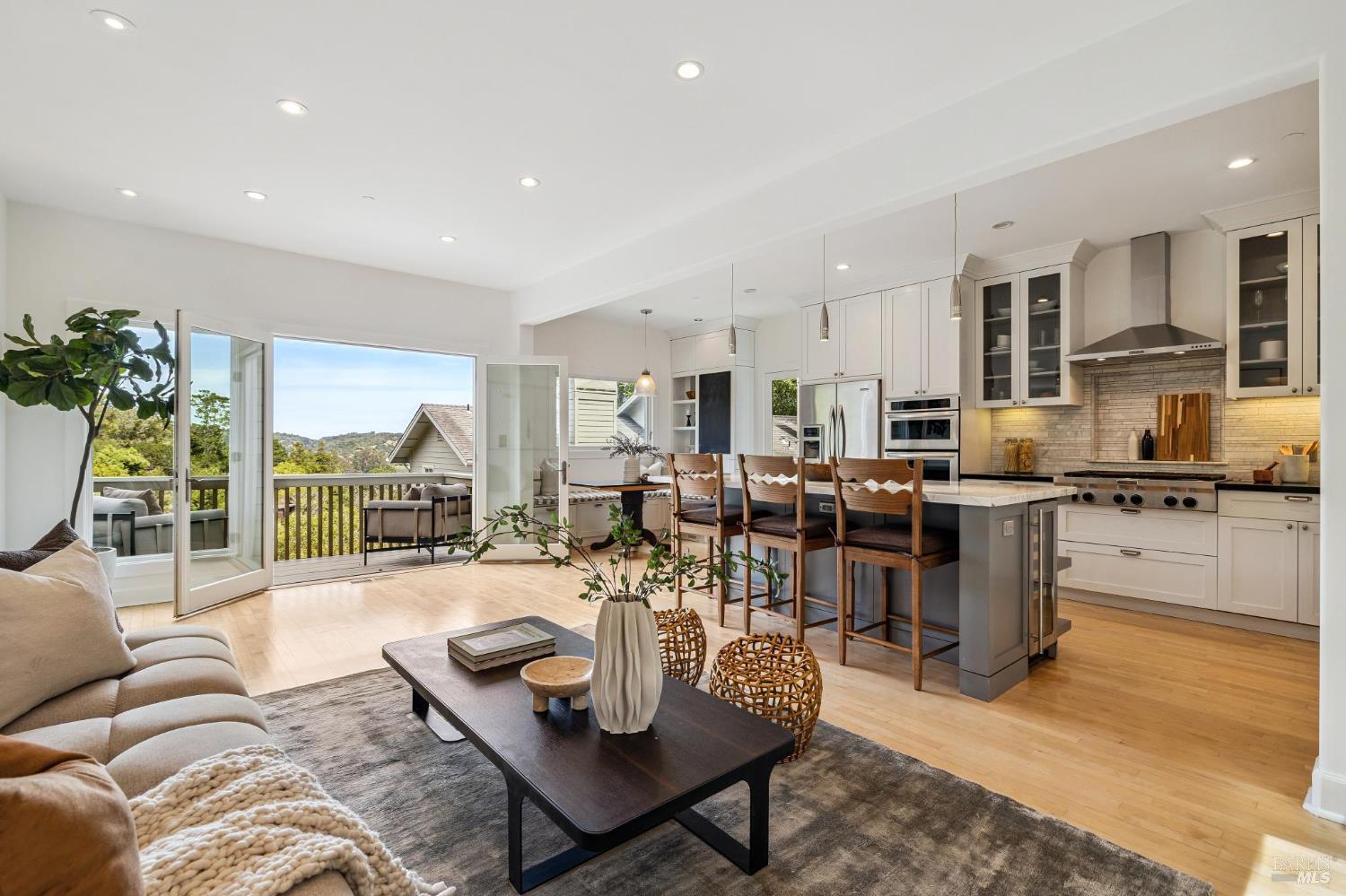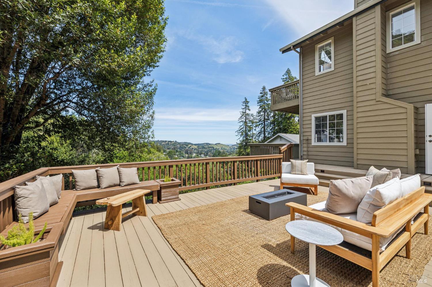 Welcome to this beautifully appointed 4-bedroom, 2.5-bath home in one of Mill Valley's most beloved neighborhoods, Homestead Valley. Built in 1996, this 2,382 square foot residence offers the perfect blend of modern construction and timeless Marin County charm. The quiet setting of Madrone Park Circle immediately draws you in, and the bright, naturally lit interior carries that same sense of ease and calm, with quality craftsmanship and modern systems throughout. The thoughtfully designed interior offers two distinct living spaces an intimate family room flowing directly from the kitchen and a gracious main living room that opens seamlessly onto the expansive private patio and deck, where indoor and outdoor living flow naturally into one another. Together, they give the home a wonderful sense of both warmth and openness. The primary ensuite is a true retreat, featuring sweeping views of the Mill Valley hills and a spacious walk-in closet a stunning backdrop to start and end each day. Three additional bedrooms plus a full hall bath and main level half bath offer flexibility for whatever life calls for. Multiple decks provide a variety of settings to relax, dine, or take in the surroundings throughout the day, while the private patio and deck off the living room is an exceptional space to entertain, play, or simply unwind while soaking in panoramic hill views. Step through the back gate for trail access - serene and utterly connected to nature. The two-car garage includes Tesla charging for modern convenience. Mill Valley's boutiques, cafes, and entertainment are just minutes away. Top-rated schools in the Mill Valley Elementary and Tamalpais Union High School districts are close at hand, and world-class open space preserves and the natural beauty of Mount Tamalpais are right at your doorstep.