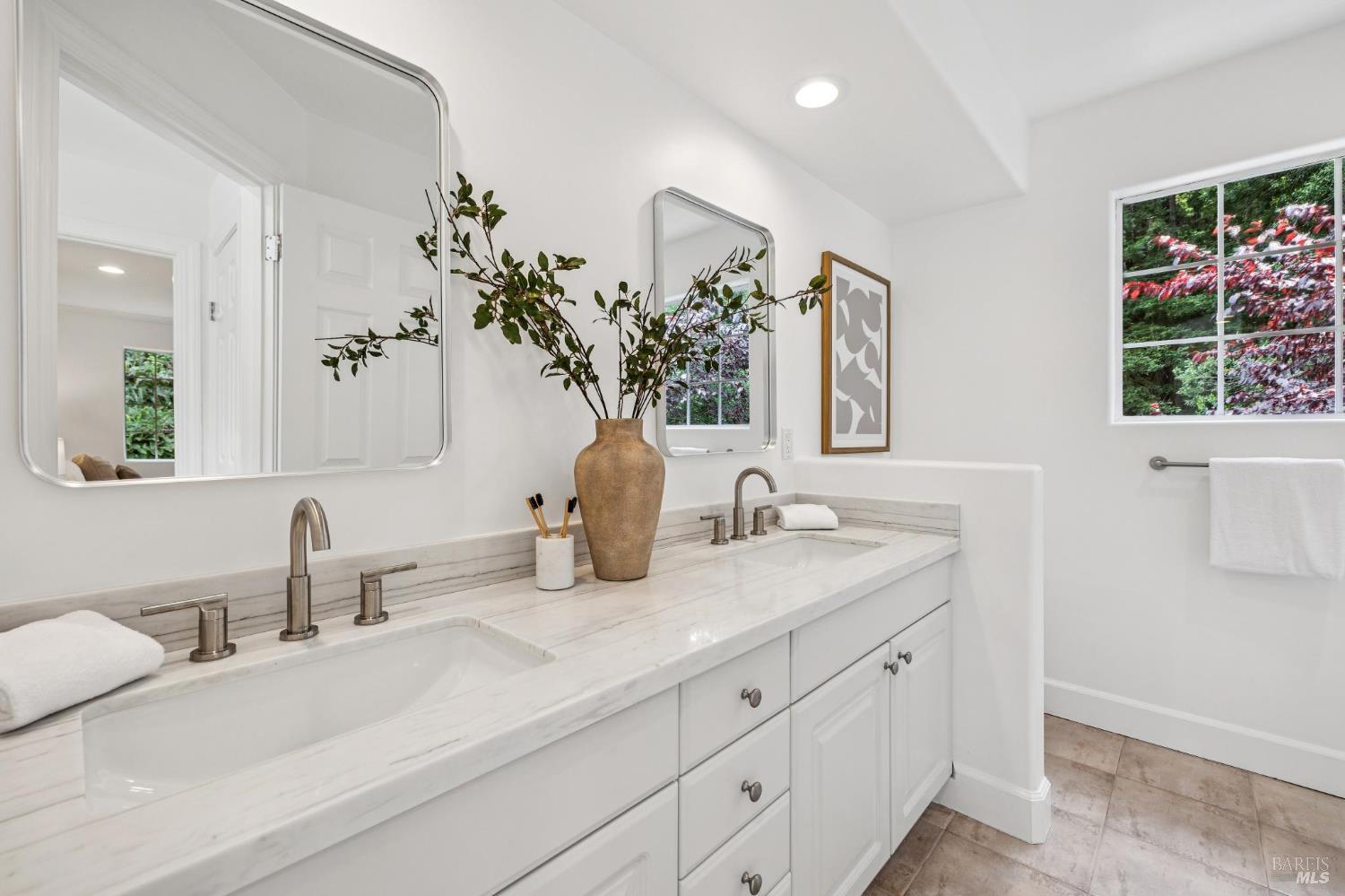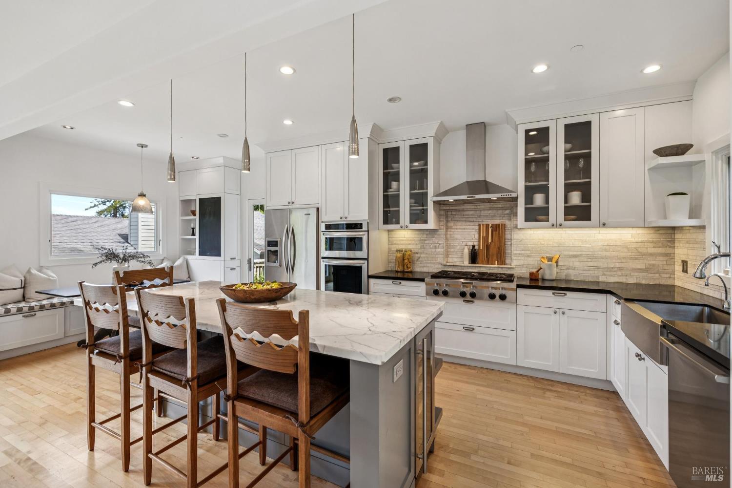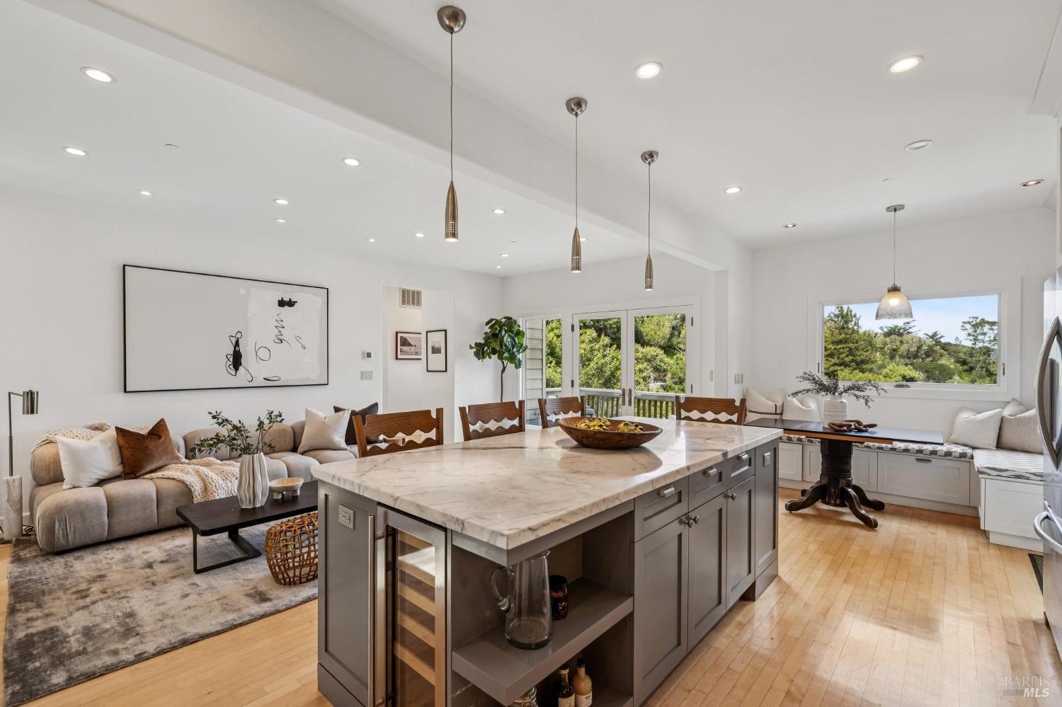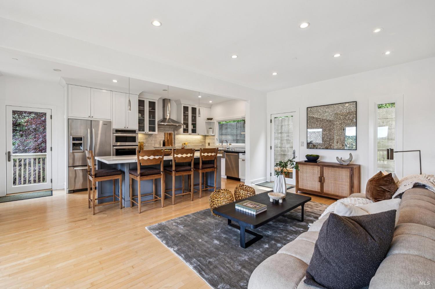 Welcome to this beautifully appointed 4-bedroom, 2.5-bath home in one of Mill Valley's most beloved neighborhoods, Homestead Valley. Built in 1996, this 2,382 square foot residence offers the perfect blend of modern construction and timeless Marin County charm. The quiet setting of Madrone Park Circle immediately draws you in, and the bright, naturally lit interior carries that same sense of ease and calm, with quality craftsmanship and modern systems throughout. The thoughtfully designed interior offers two distinct living spaces an intimate family room flowing directly from the kitchen and a gracious main living room that opens seamlessly onto the expansive private patio and deck, where indoor and outdoor living flow naturally into one another. Together, they give the home a wonderful sense of both warmth and openness. The primary ensuite is a true retreat, featuring sweeping views of the Mill Valley hills and a spacious walk-in closet a stunning backdrop to start and end each day. Three additional bedrooms plus a full hall bath and main level half bath offer flexibility for whatever life calls for. Multiple decks provide a variety of settings to relax, dine, or take in the surroundings throughout the day, while the private patio and deck off the living room is an exceptional space to entertain, play, or simply unwind while soaking in panoramic hill views. Step through the back gate for trail access - serene and utterly connected to nature. The two-car garage includes Tesla charging for modern convenience. Mill Valley's boutiques, cafes, and entertainment are just minutes away. Top-rated schools in the Mill Valley Elementary and Tamalpais Union High School districts are close at hand, and world-class open space preserves and the natural beauty of Mount Tamalpais are right at your doorstep.