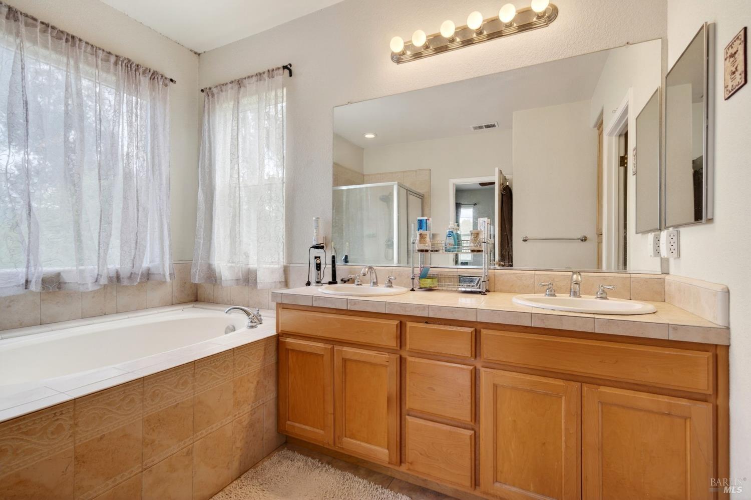 • Primary Bathroom Features Double Sinks,Shower Stall(s),Soaking Tub