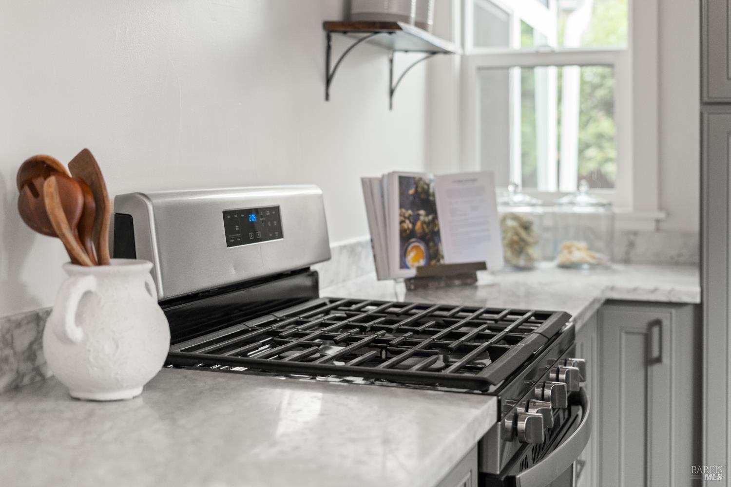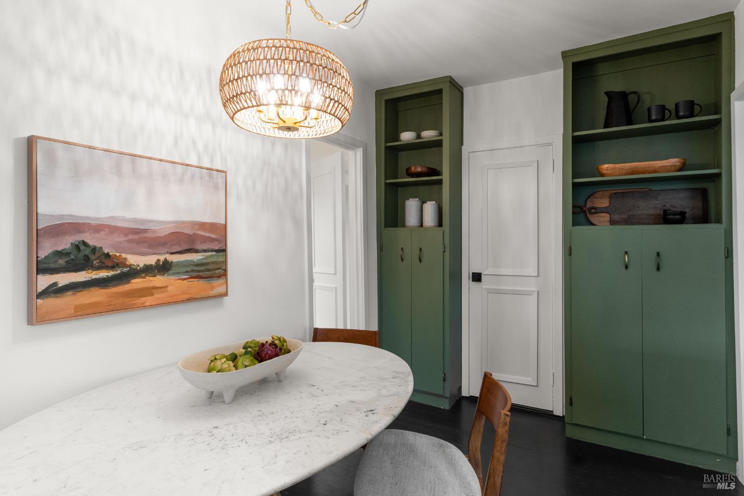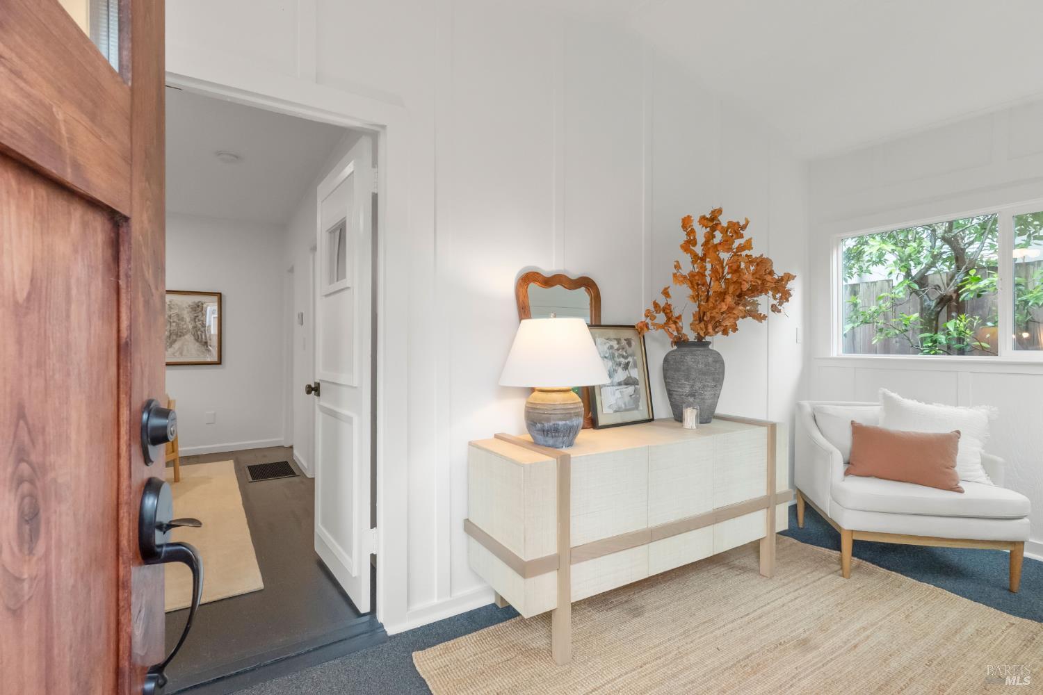 Located in the highly sought-after Chapman Park neighborhood, this charming 1920s home has been tastefully updated. Flexible floor plan offers 1162* square feet, three-bedrooms and two updated bathrooms and additional flex space ideal for a mudroom, playroom, or home office complete with laundry area. The renovated kitchen offers Carrera marble countertops and stainless steel appliances, accented by vaulted wood ceilings, ample windows, with abundant natural light. Raised garden beds and inviting space for outdoor gatherings are complemented by string lights. A detached garage offers additional storage and a built-in workbench. Situated in the heart of the Chapman Park flats, directly across from Corte Madera Town Park enjoy playgrounds, soccer fields, tennis court and Recreation Center close by. Highly desirable schools. Close to the Larkspur-Corte Madera bike path, numerous hiking trails, and two premier malls. Yoga studios, restaurants, and a wine bar are all just blocks away. This sweet Chapman Park charmer has been lovingly updated and is ready for it's next owner.