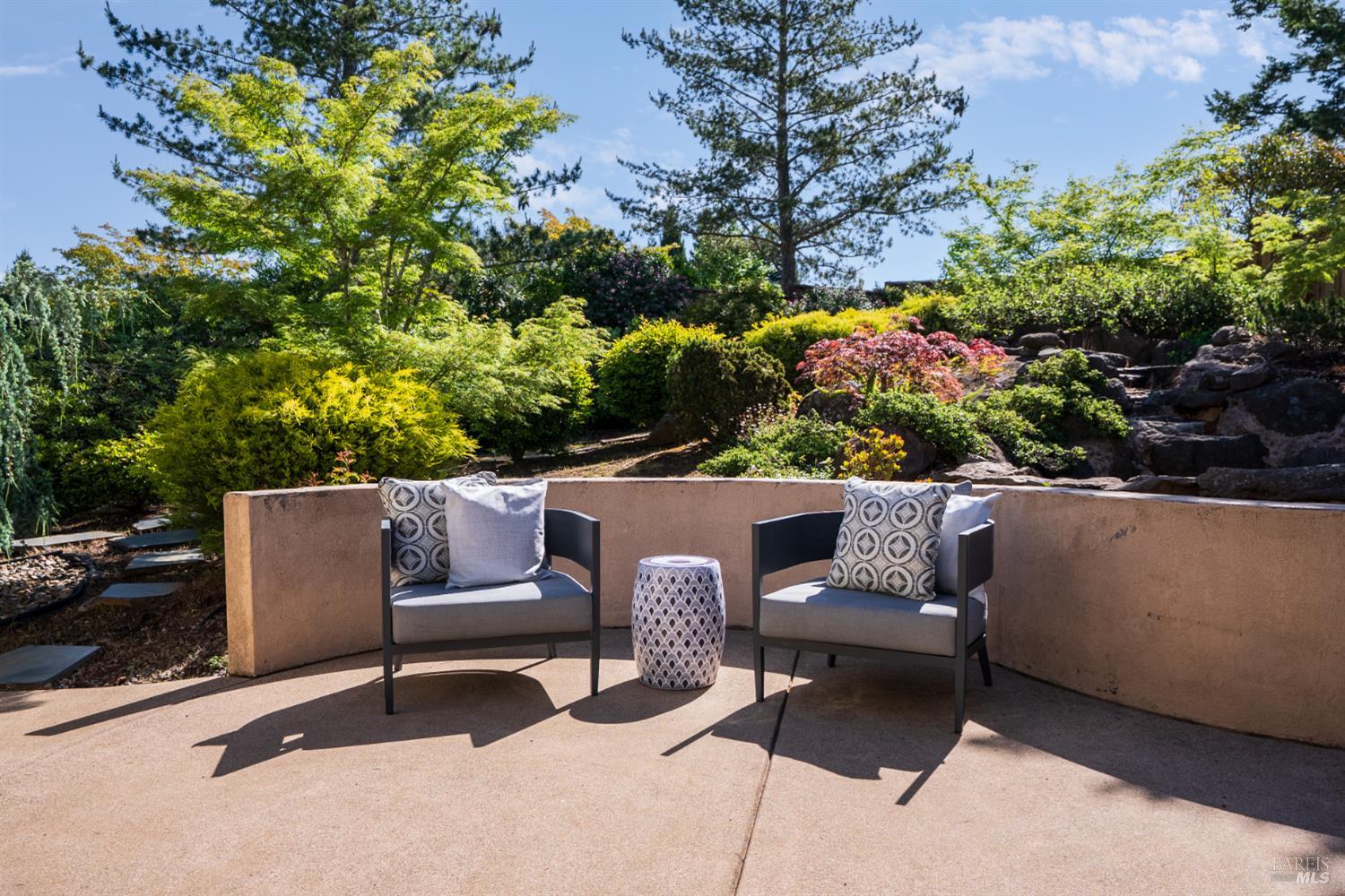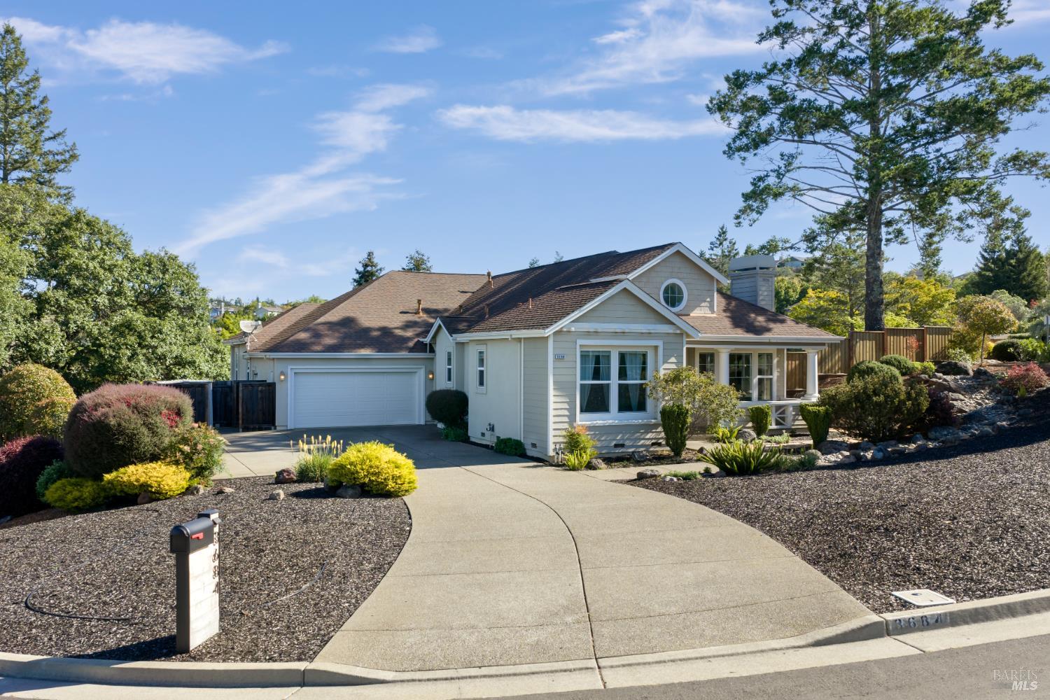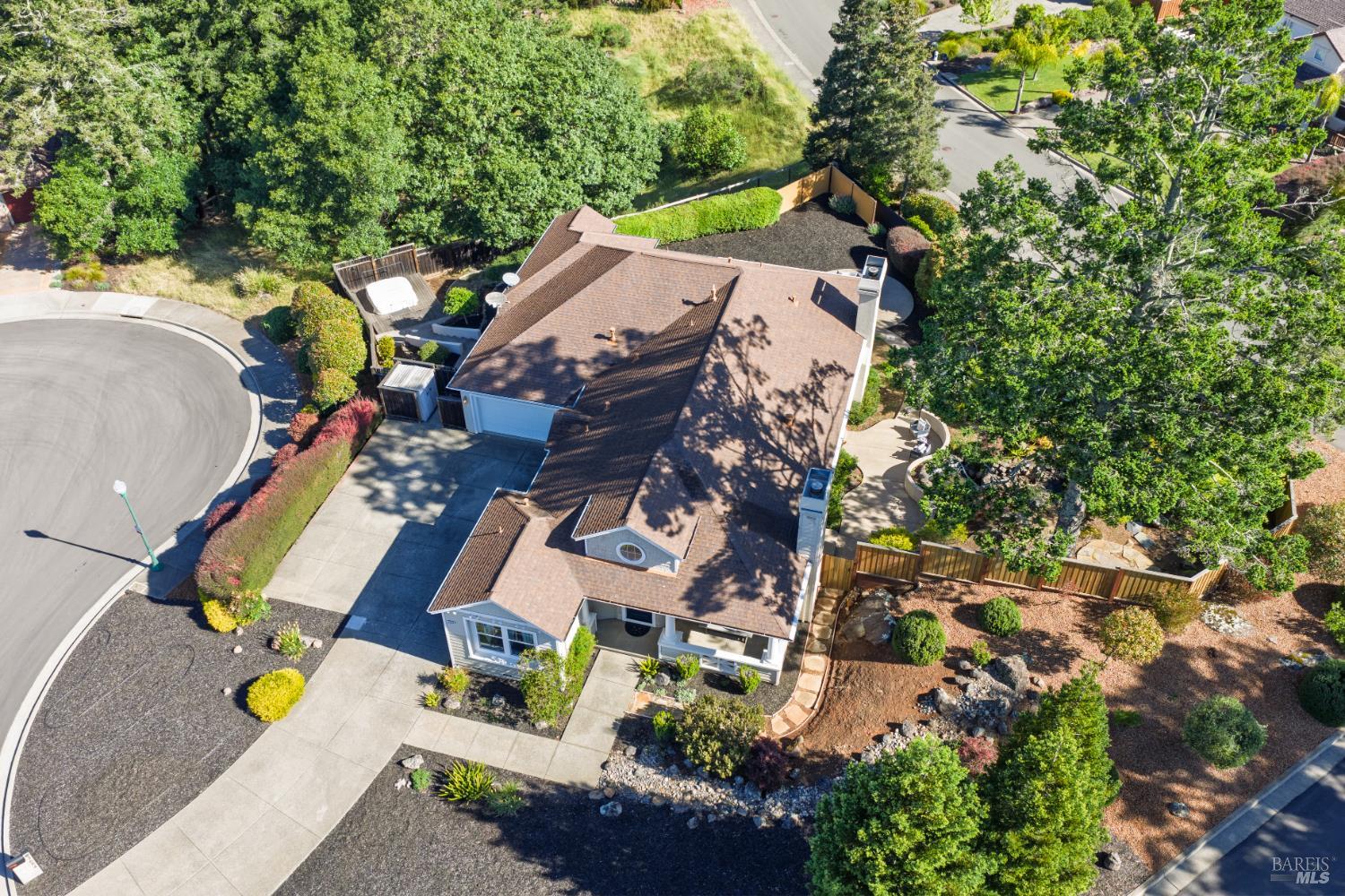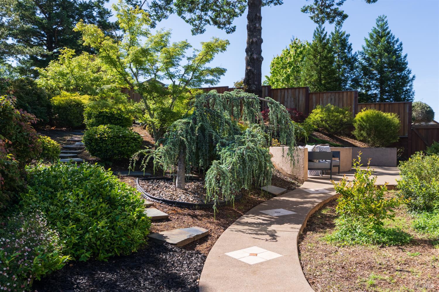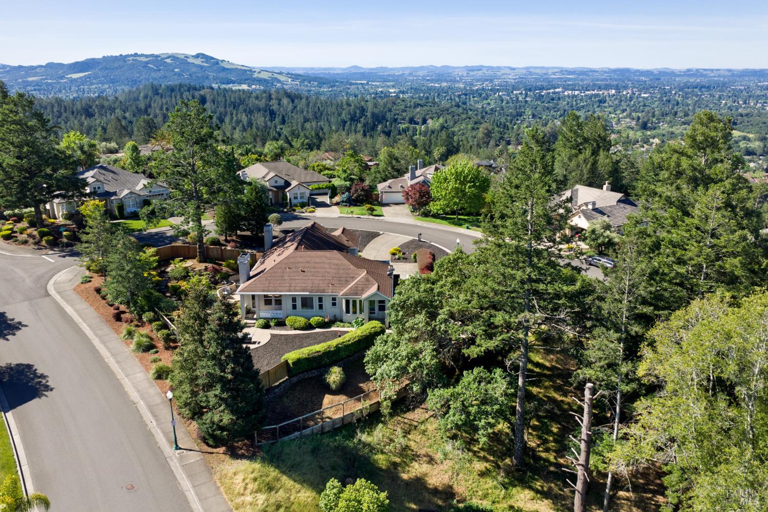 Located in this desirable Fountaingrove neighborhood, the home offers a rare single-level retreat on a private half-acre cul-de-sac lot backing to open space. Surrounded by mature landscaping, this property delivers exceptional privacy and seamless indoor-outdoor living. The thoughtfully designed floor plan includes 3 bedrooms plus a dedicated office with glass doors. The spacious primary suite features crown molding, French doors to the backyard, a walk-in closet, dual vanities, a soaking tub, and a separate shower. A front ensuite bedroom is ideal for guests, while a secondary bedroom connects to a Jack-and-Jill bath. The well-appointed kitchen is equipped with a 6-burner Thermador gas cooktop, professional hood with heat lamps, built-in oven, and microwave. Shaker alder/birch cabinetry, stone slab countertops, under-cabinet lighting, wood flooring, and a bright breakfast nook with French doors to the patio complete the space. Designed for both entertaining and everyday comfort, the home offers formal living and family rooms with gas-start fireplaces, a dining area with butler's pantry, and multiple French doors opening to the patio and yard. Additional features include a hot tub, laundry room with sink and cabinetry. A rare opportunity to enjoy privacy, space, and tranquility in Fountaingrove.