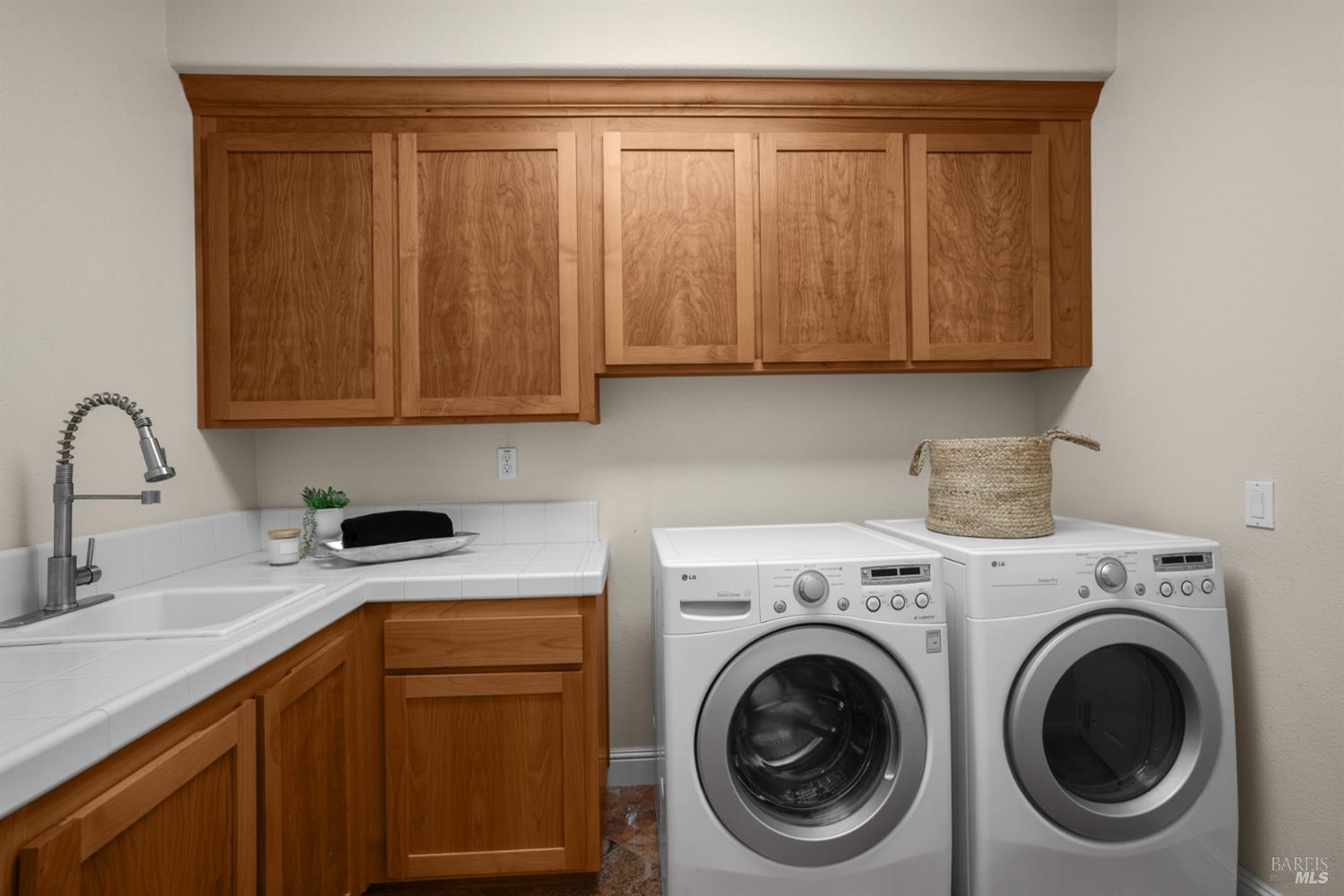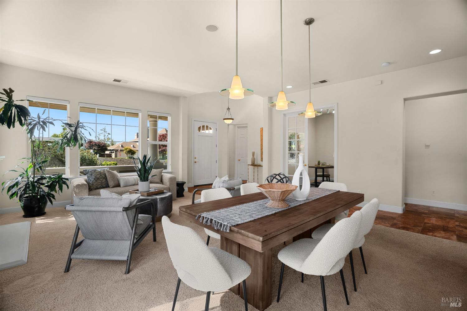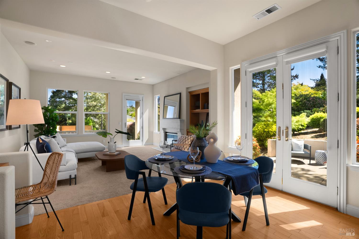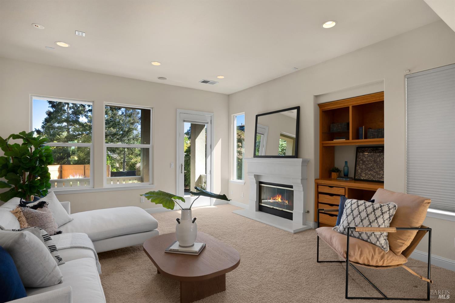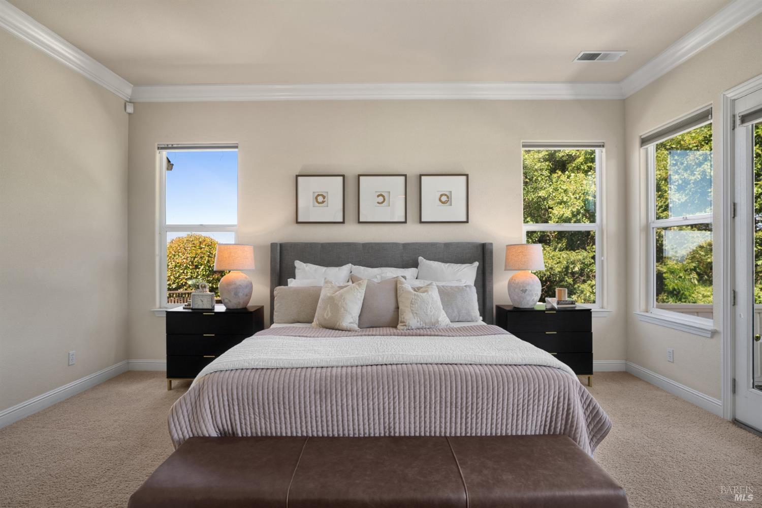 Located in this desirable Fountaingrove neighborhood, the home offers a rare single-level retreat on a private half-acre cul-de-sac lot backing to open space. Surrounded by mature landscaping, this property delivers exceptional privacy and seamless indoor-outdoor living. The thoughtfully designed floor plan includes 3 bedrooms plus a dedicated office with glass doors. The spacious primary suite features crown molding, French doors to the backyard, a walk-in closet, dual vanities, a soaking tub, and a separate shower. A front ensuite bedroom is ideal for guests, while a secondary bedroom connects to a Jack-and-Jill bath. The well-appointed kitchen is equipped with a 6-burner Thermador gas cooktop, professional hood with heat lamps, built-in oven, and microwave. Shaker alder/birch cabinetry, stone slab countertops, under-cabinet lighting, wood flooring, and a bright breakfast nook with French doors to the patio complete the space. Designed for both entertaining and everyday comfort, the home offers formal living and family rooms with gas-start fireplaces, a dining area with butler's pantry, and multiple French doors opening to the patio and yard. Additional features include a hot tub, laundry room with sink and cabinetry. A rare opportunity to enjoy privacy, space, and tranquility in Fountaingrove.
