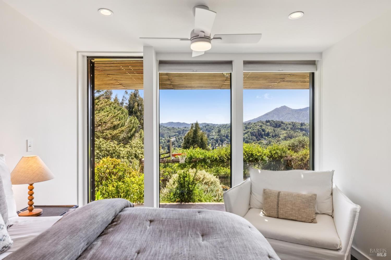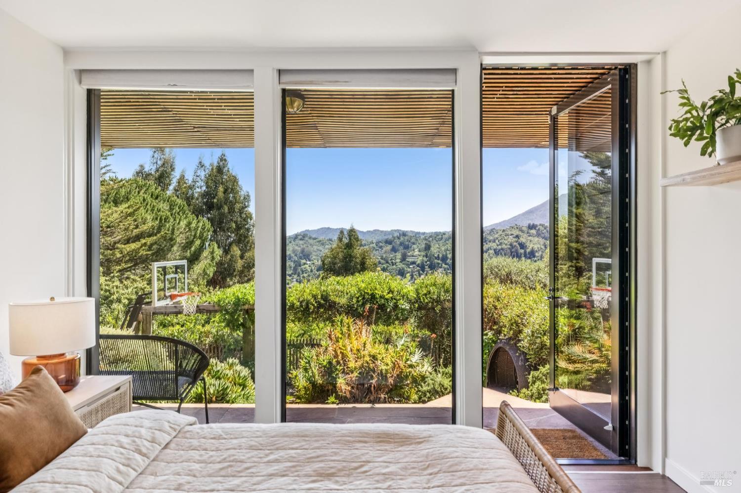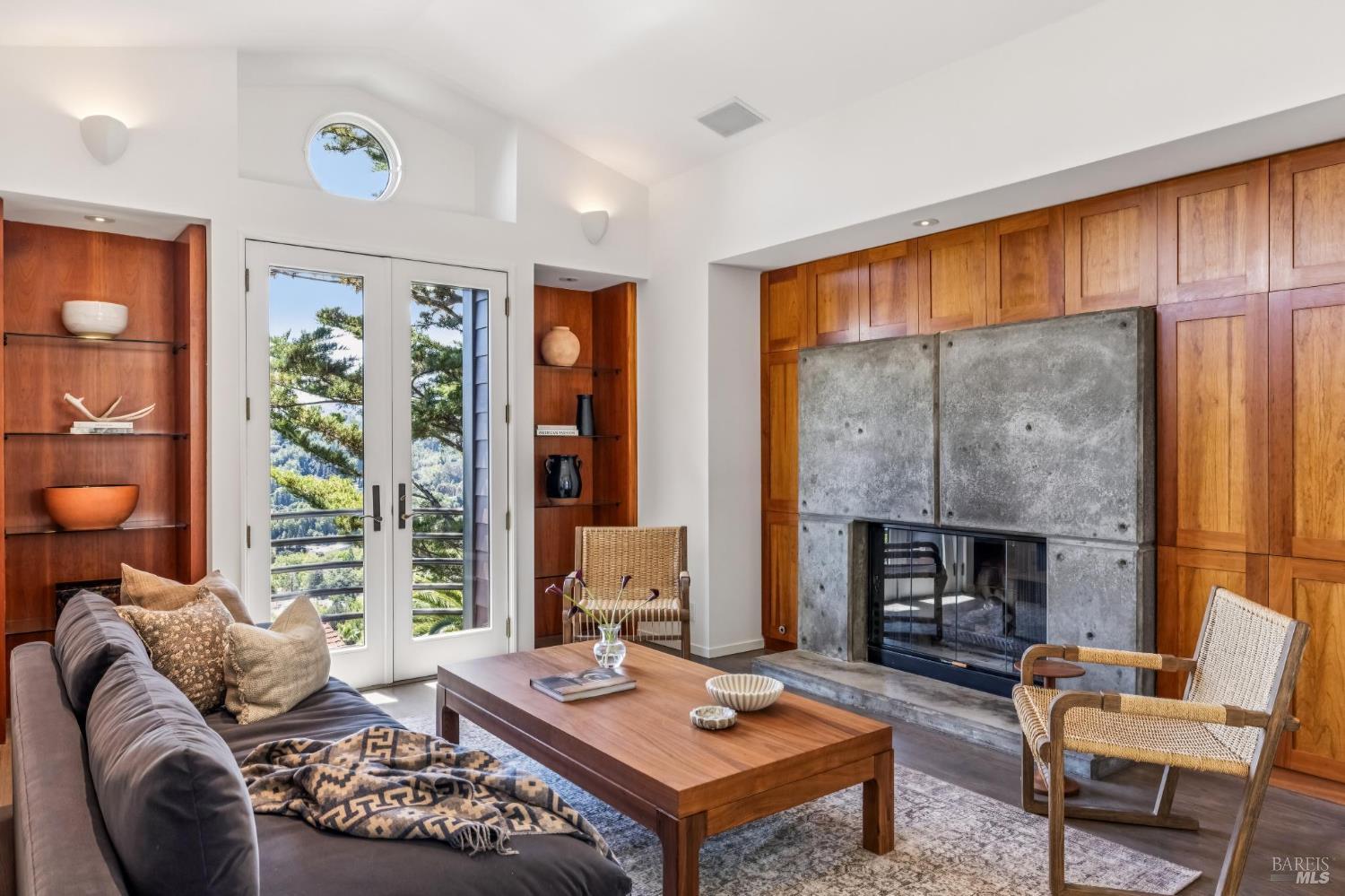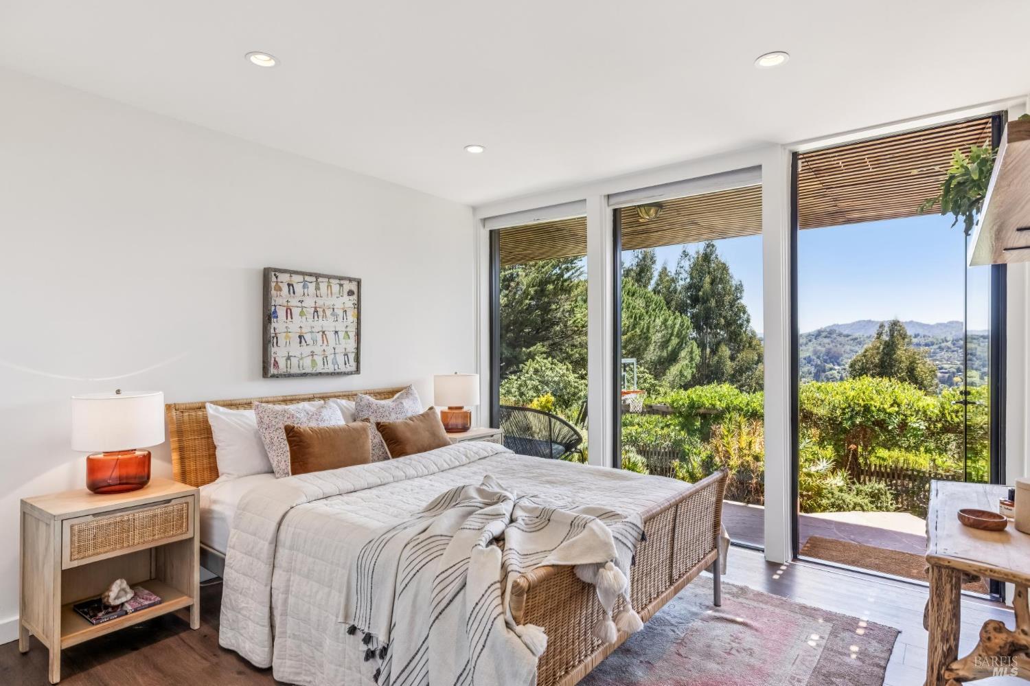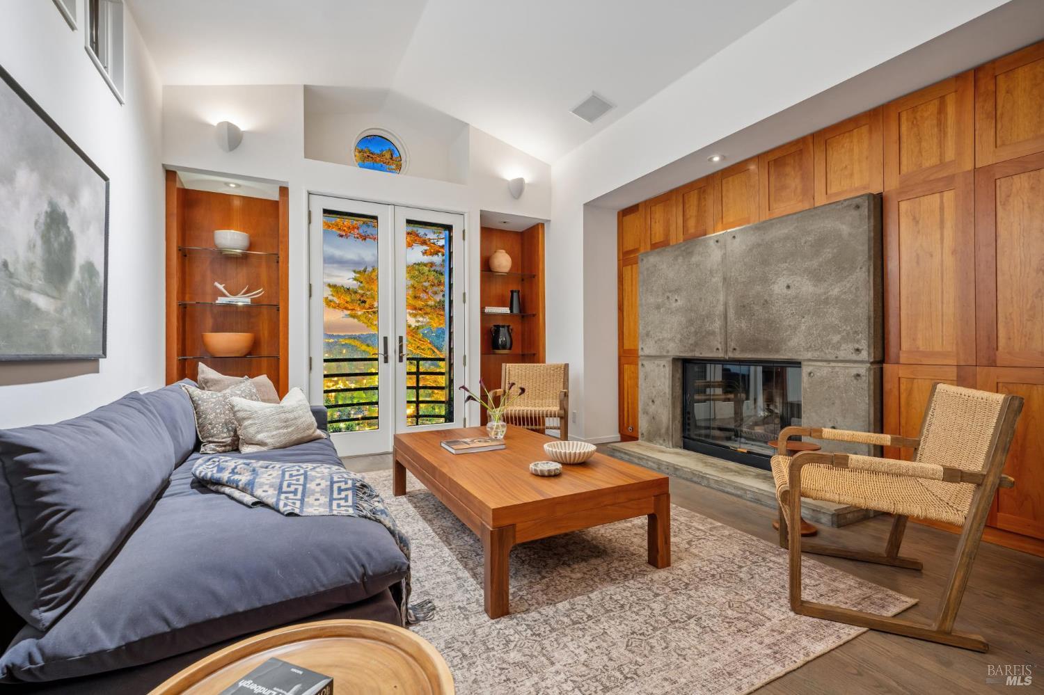 Welcome to 312 Fairhills Drive, an architecturally significant contemporary residence that balances modern design within the prestigious Fairhills neighborhood. This home features an airy living room with soaring two-story beamed ceilings and a towering fireplace that serve as the heart of the home, while the mature landscaping offers privacy and an exceptional California coastal retreat feel. The south-facing orientation ensures the interior is washed in natural light throughout the day, maximizing spectacular panoramic views from Mt. Tamalpais to the city. Inside, the home emphasizes a sense of volume and texture with hardwood floors and clean modern lines. The updated kitchen is designed for both daily use and entertaining, flowing seamlessly into the first of two family rooms where the indoor-outdoor flow is effortless and the connection to the scenery is constant. The layout is highly functional, featuring five bedrooms plus a bonus room and three and a half baths. Ample unique space throughout provide versatility for modern living, offering plenty of room for work, play, or relaxation in tucked-away, quiet corners. The primary suite serves as a private sanctuary, complete with a romantic fireplace and a deck overlooking the rolling hills. Downstairs, a flexible living space with its own separate entrance offers a quiet area for a gym, studio, playroom, or guest suite away from the main living quarters. Throughout the residence, windows frame the landscape, creating a gallery-like feel and drawing the beauty of the gardens inside. The grounds continue the theme of seclusion with lush gardens and a level lawn. You can spend time on the sun-drenched decks or in the spa, all positioned to take advantage of the southern exposure and sweeping views. While this sanctuary feels completely private, it is conveniently located near scenic hiking trails and the vibrant shopping, dining, and entertainment of downtown San Rafael. The home also offers an ideal location for easy access to major commute destinations and community events, providing a rare combination of modern architecture and functional space in a private San Rafael setting. Welcome Home!