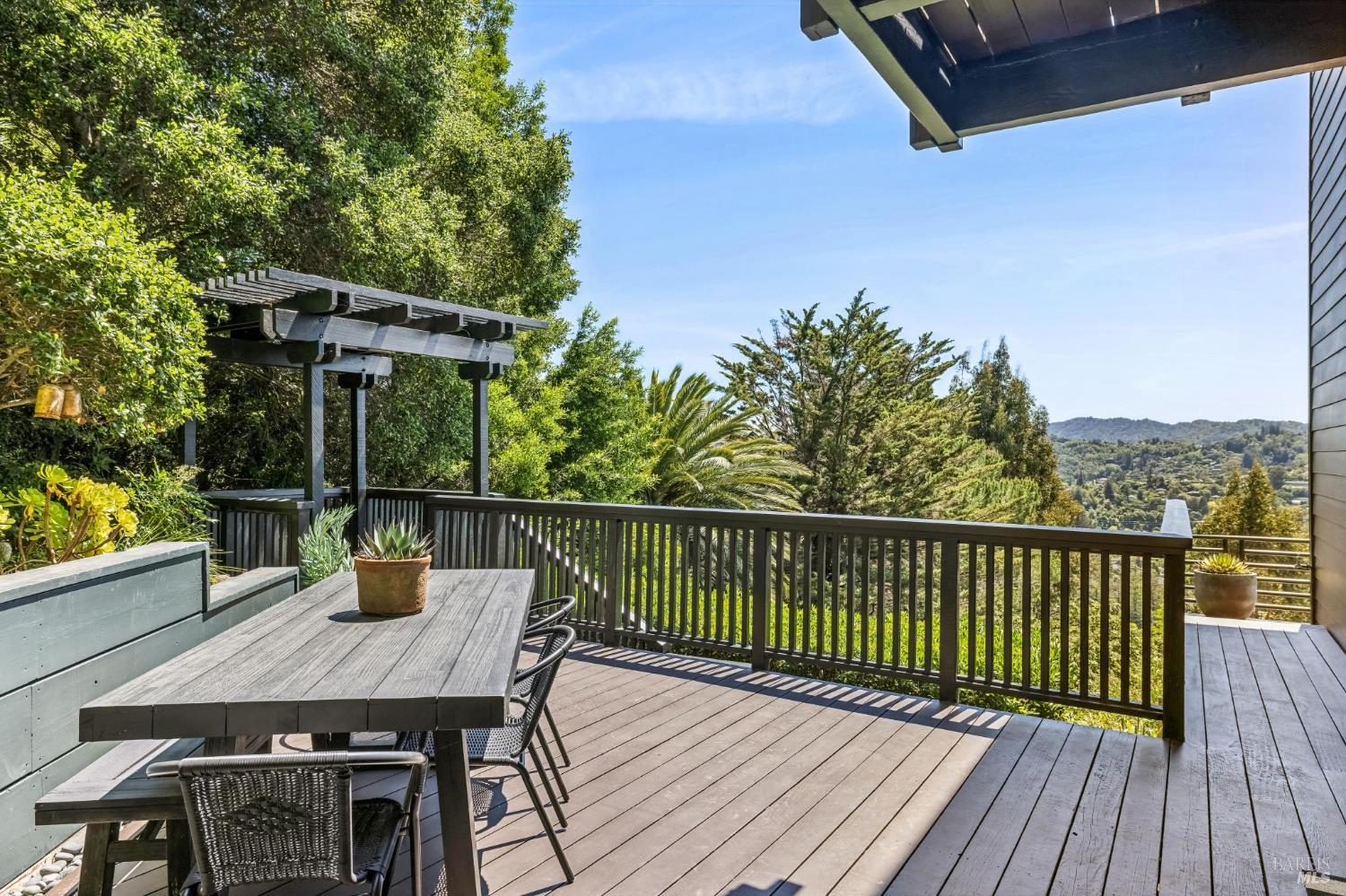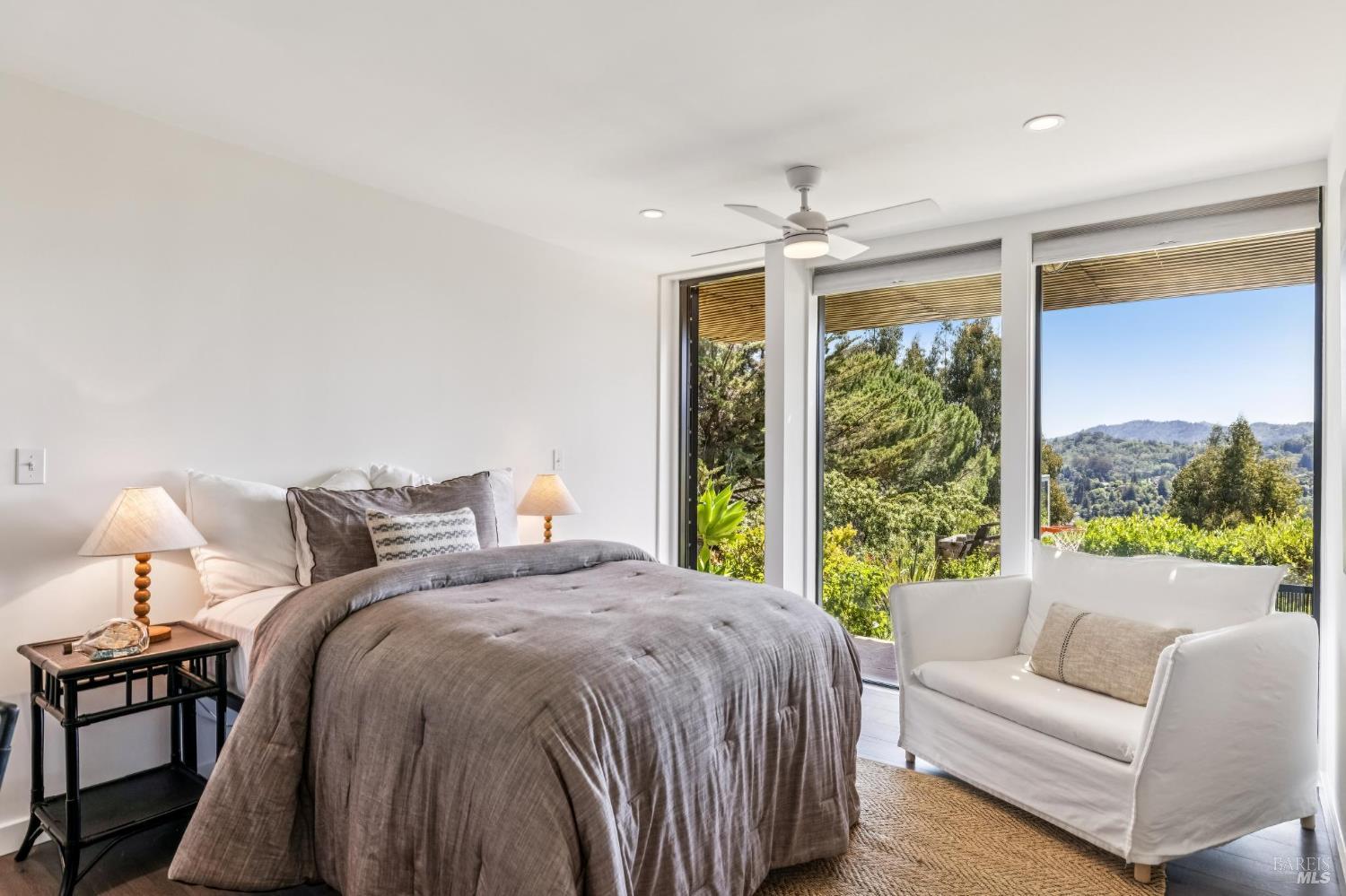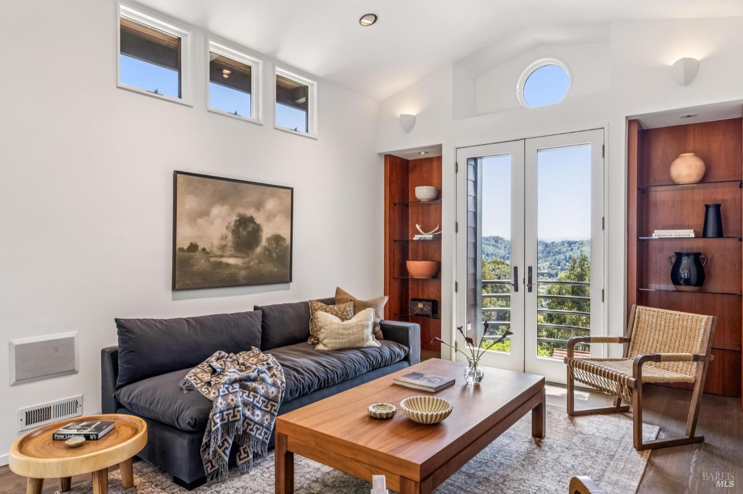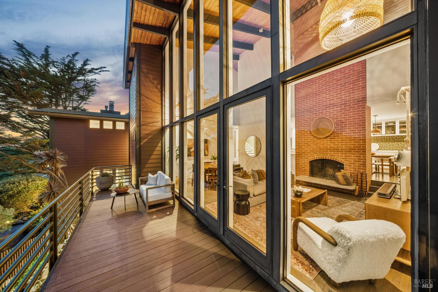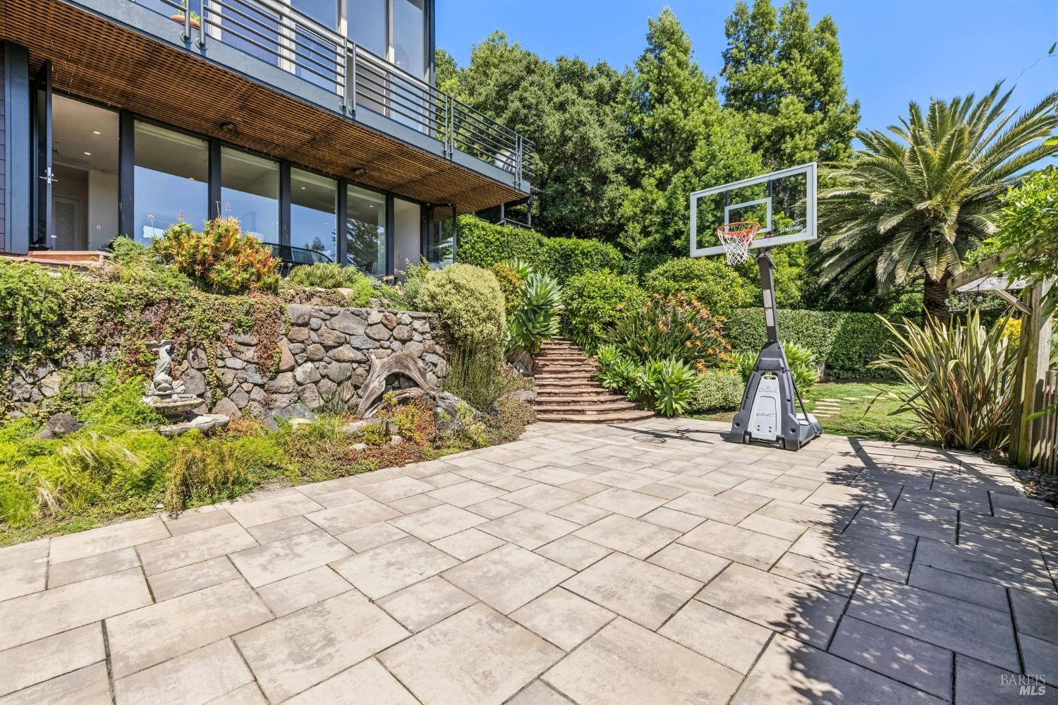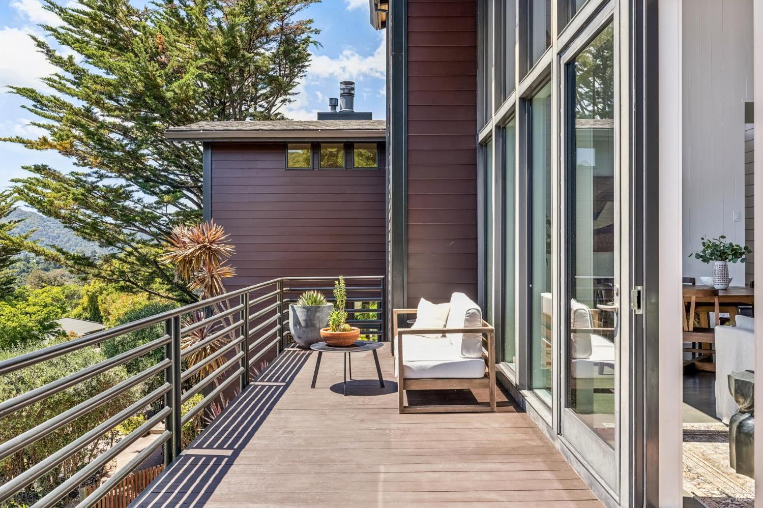 Welcome to 312 Fairhills Drive, an architecturally significant contemporary residence that balances modern design within the prestigious Fairhills neighborhood. This home features an airy living room with soaring two-story beamed ceilings and a towering fireplace that serve as the heart of the home, while the mature landscaping offers privacy and an exceptional California coastal retreat feel. The south-facing orientation ensures the interior is washed in natural light throughout the day, maximizing spectacular panoramic views from Mt. Tamalpais to the city. Inside, the home emphasizes a sense of volume and texture with hardwood floors and clean modern lines. The updated kitchen is designed for both daily use and entertaining, flowing seamlessly into the first of two family rooms where the indoor-outdoor flow is effortless and the connection to the scenery is constant. The layout is highly functional, featuring five bedrooms plus a bonus room and three and a half baths. Ample unique space throughout provide versatility for modern living, offering plenty of room for work, play, or relaxation in tucked-away, quiet corners. The primary suite serves as a private sanctuary, complete with a romantic fireplace and a deck overlooking the rolling hills. Downstairs, a flexible living space with its own separate entrance offers a quiet area for a gym, studio, playroom, or guest suite away from the main living quarters. Throughout the residence, windows frame the landscape, creating a gallery-like feel and drawing the beauty of the gardens inside. The grounds continue the theme of seclusion with lush gardens and a level lawn. You can spend time on the sun-drenched decks or in the spa, all positioned to take advantage of the southern exposure and sweeping views. While this sanctuary feels completely private, it is conveniently located near scenic hiking trails and the vibrant shopping, dining, and entertainment of downtown San Rafael. The home also offers an ideal location for easy access to major commute destinations and community events, providing a rare combination of modern architecture and functional space in a private San Rafael setting. Welcome Home!