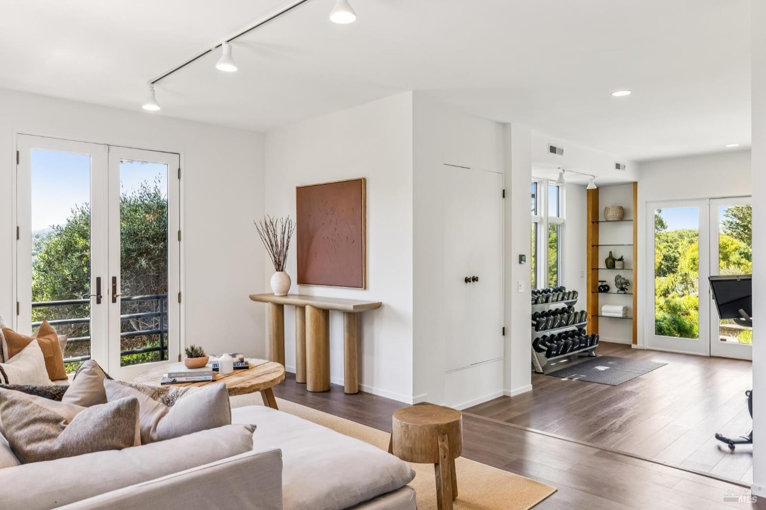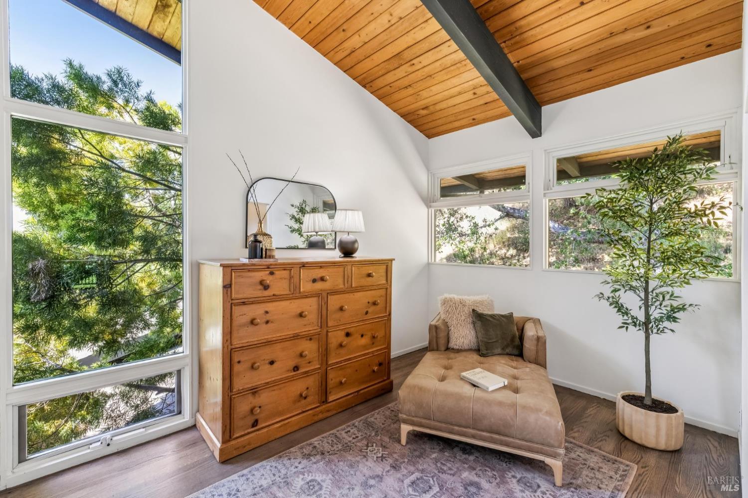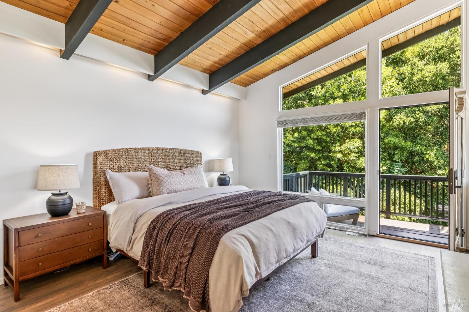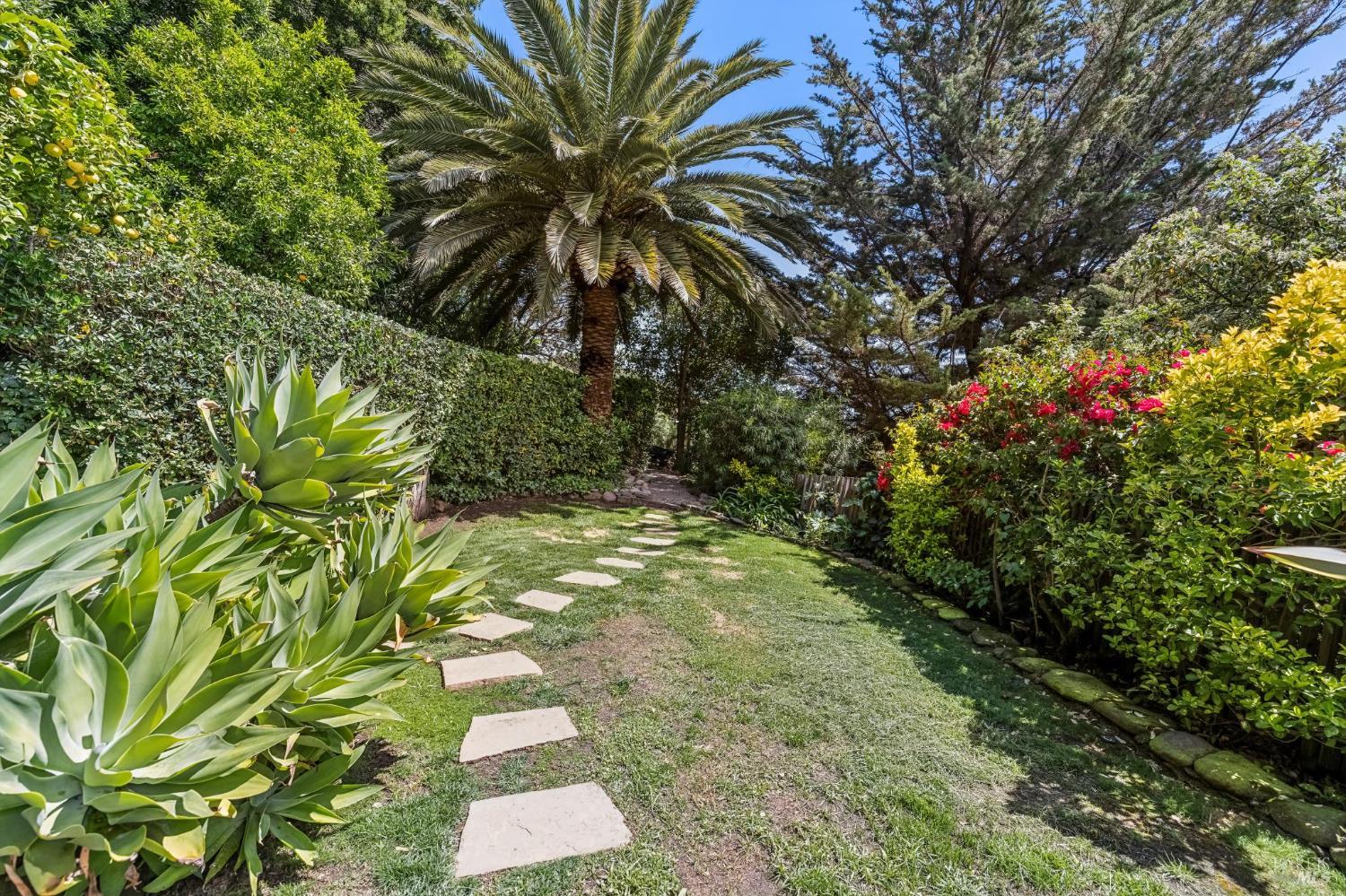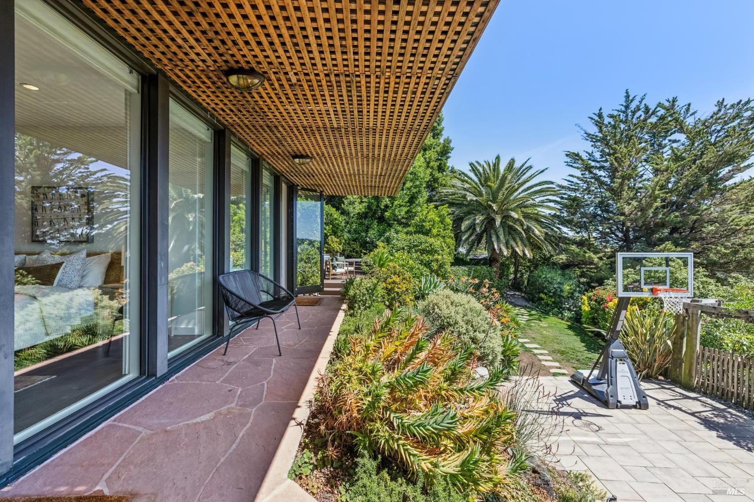 Welcome to 312 Fairhills Drive, an architecturally significant contemporary residence that balances modern design within the prestigious Fairhills neighborhood. This home features an airy living room with soaring two-story beamed ceilings and a towering fireplace that serve as the heart of the home, while the mature landscaping offers privacy and an exceptional California coastal retreat feel. The south-facing orientation ensures the interior is washed in natural light throughout the day, maximizing spectacular panoramic views from Mt. Tamalpais to the city. Inside, the home emphasizes a sense of volume and texture with hardwood floors and clean modern lines. The updated kitchen is designed for both daily use and entertaining, flowing seamlessly into the first of two family rooms where the indoor-outdoor flow is effortless and the connection to the scenery is constant. The layout is highly functional, featuring five bedrooms plus a bonus room and three and a half baths. Ample unique space throughout provide versatility for modern living, offering plenty of room for work, play, or relaxation in tucked-away, quiet corners. The primary suite serves as a private sanctuary, complete with a romantic fireplace and a deck overlooking the rolling hills. Downstairs, a flexible living space with its own separate entrance offers a quiet area for a gym, studio, playroom, or guest suite away from the main living quarters. Throughout the residence, windows frame the landscape, creating a gallery-like feel and drawing the beauty of the gardens inside. The grounds continue the theme of seclusion with lush gardens and a level lawn. You can spend time on the sun-drenched decks or in the spa, all positioned to take advantage of the southern exposure and sweeping views. While this sanctuary feels completely private, it is conveniently located near scenic hiking trails and the vibrant shopping, dining, and entertainment of downtown San Rafael. The home also offers an ideal location for easy access to major commute destinations and community events, providing a rare combination of modern architecture and functional space in a private San Rafael setting. Welcome Home!