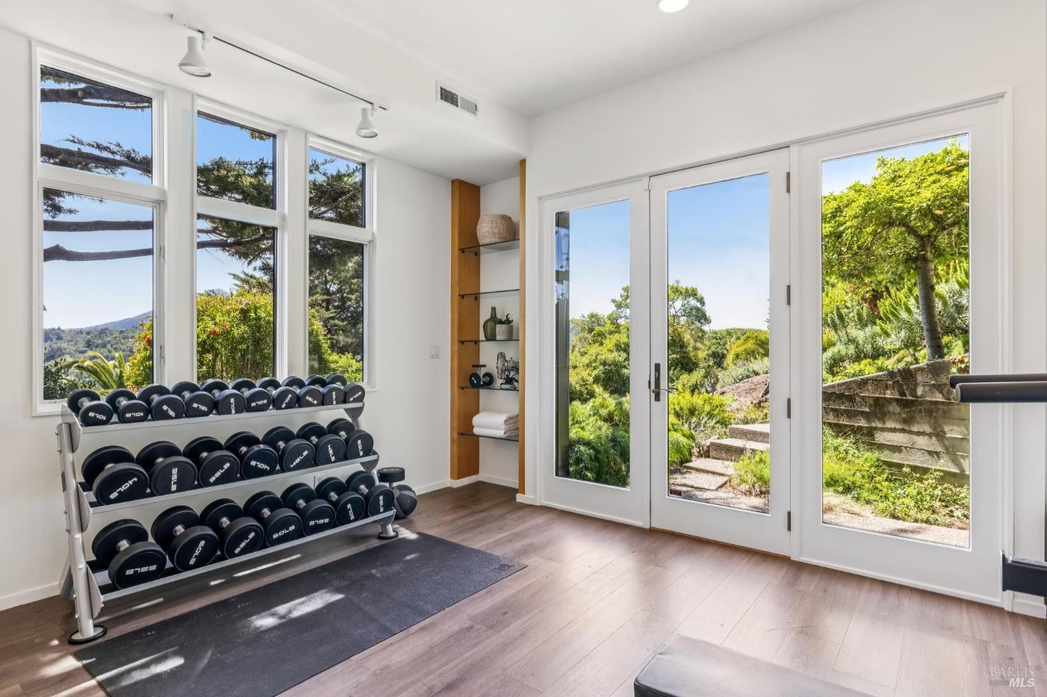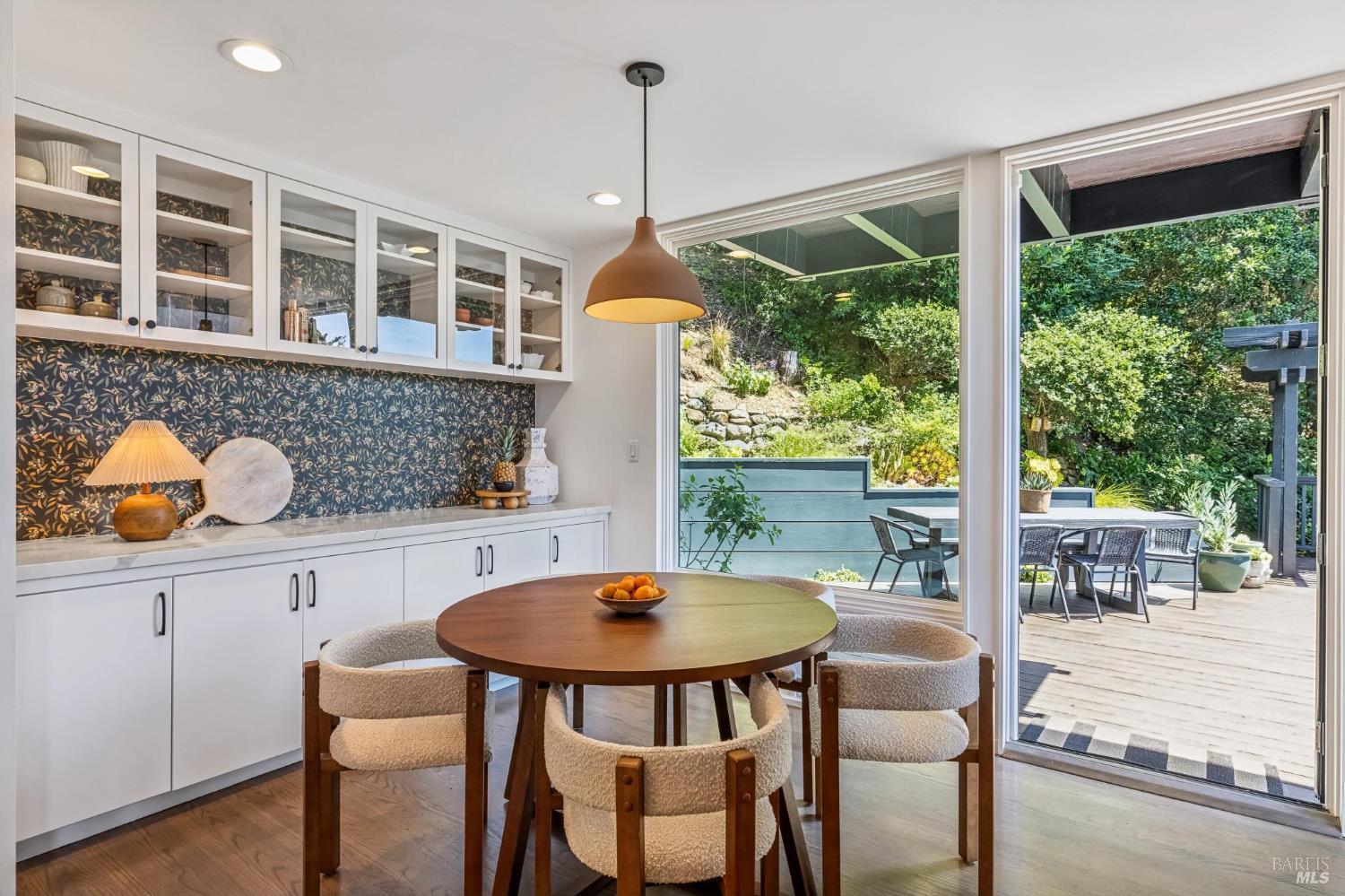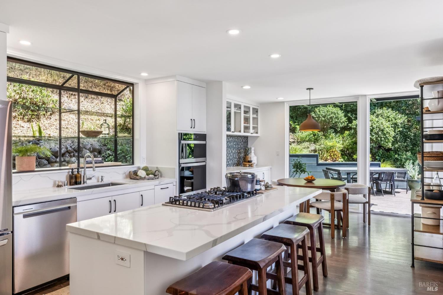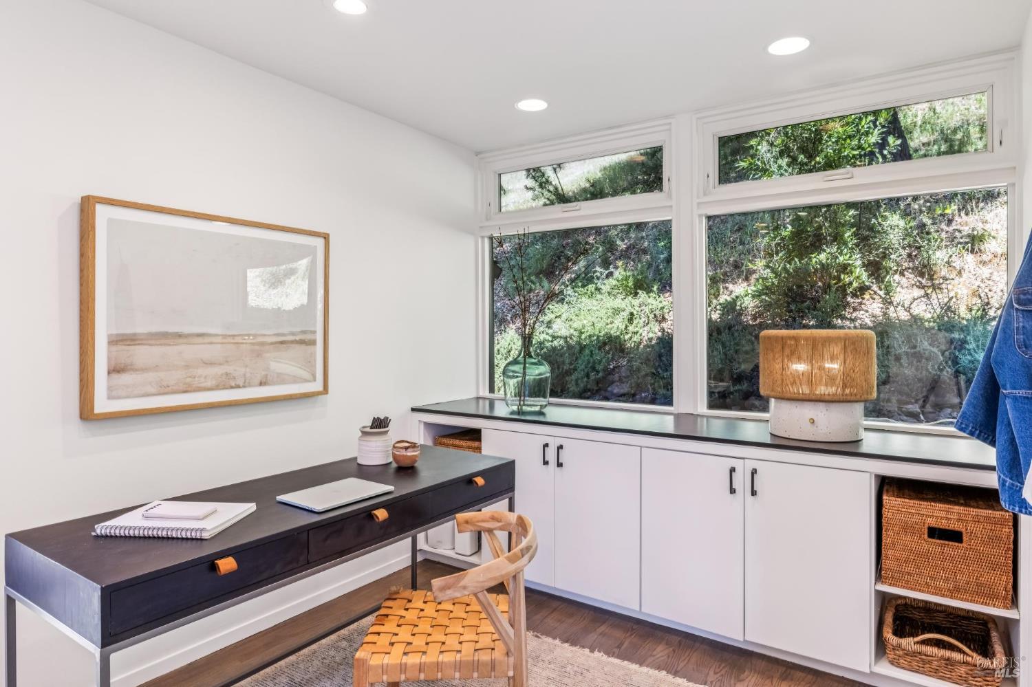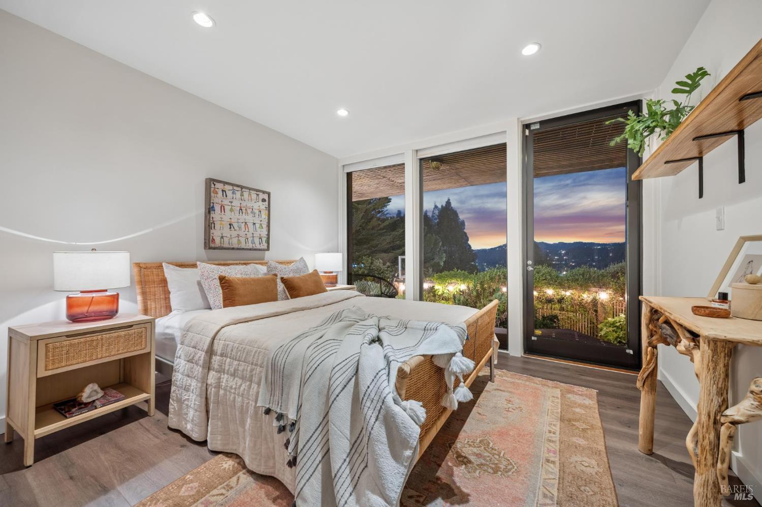 Welcome to 312 Fairhills Drive, an architecturally significant contemporary residence that balances modern design within the prestigious Fairhills neighborhood. This home features an airy living room with soaring two-story beamed ceilings and a towering fireplace that serve as the heart of the home, while the mature landscaping offers privacy and an exceptional California coastal retreat feel. The south-facing orientation ensures the interior is washed in natural light throughout the day, maximizing spectacular panoramic views from Mt. Tamalpais to the city. Inside, the home emphasizes a sense of volume and texture with hardwood floors and clean modern lines. The updated kitchen is designed for both daily use and entertaining, flowing seamlessly into the first of two family rooms where the indoor-outdoor flow is effortless and the connection to the scenery is constant. The layout is highly functional, featuring five bedrooms plus a bonus room and three and a half baths. Ample unique space throughout provide versatility for modern living, offering plenty of room for work, play, or relaxation in tucked-away, quiet corners. The primary suite serves as a private sanctuary, complete with a romantic fireplace and a deck overlooking the rolling hills. Downstairs, a flexible living space with its own separate entrance offers a quiet area for a gym, studio, playroom, or guest suite away from the main living quarters. Throughout the residence, windows frame the landscape, creating a gallery-like feel and drawing the beauty of the gardens inside. The grounds continue the theme of seclusion with lush gardens and a level lawn. You can spend time on the sun-drenched decks or in the spa, all positioned to take advantage of the southern exposure and sweeping views. While this sanctuary feels completely private, it is conveniently located near scenic hiking trails and the vibrant shopping, dining, and entertainment of downtown San Rafael. The home also offers an ideal location for easy access to major commute destinations and community events, providing a rare combination of modern architecture and functional space in a private San Rafael setting. Welcome Home!