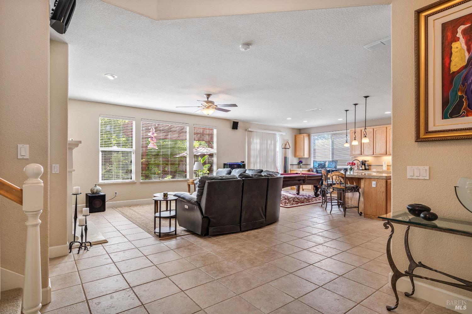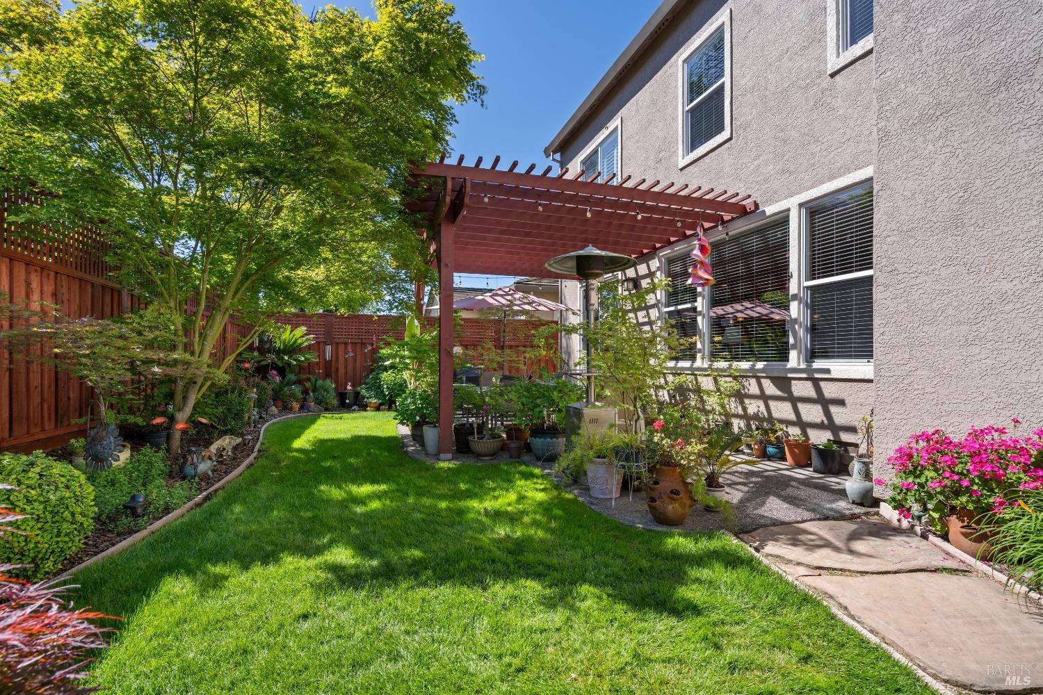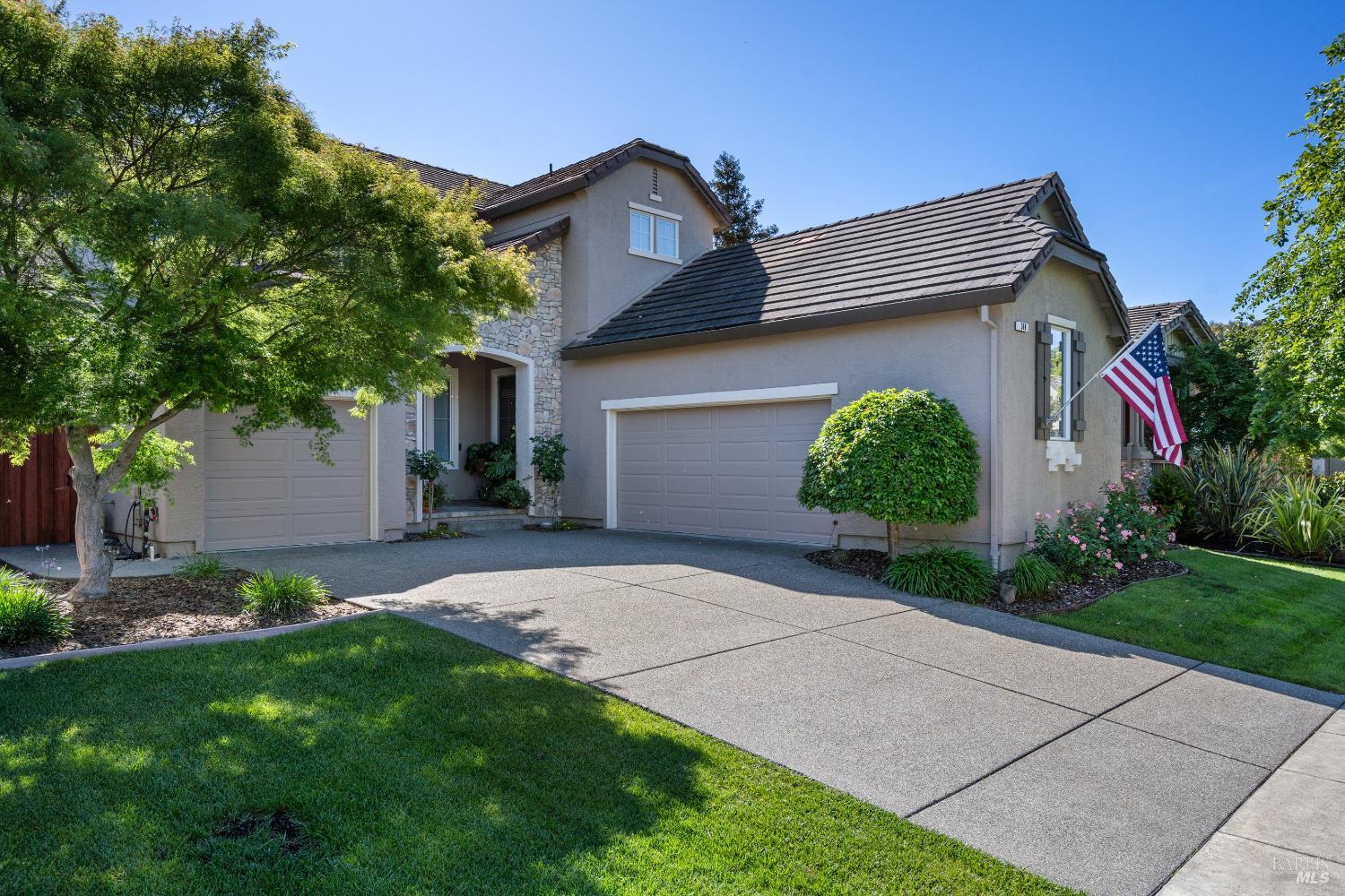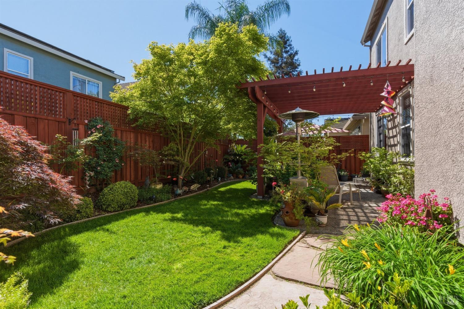 Welcome to this beautifully maintained 4-bedroom, 3 full-bath home offering thoughtfully designed living space that blends comfort, flexibility, and timeless style. Filled with an abundance of windows, the home is bright and inviting, with natural light flowing throughout the open-concept floor plan. Designed for both everyday living and entertaining, the spacious layout creates seamless connection between the kitchen, family room, and dining spaces. The heart of the home is the well-appointed kitchen featuring stainless steel appliances, a large center island, trash compactor, abundant cabinetry, and generous prep space. Just steps away, the formal dining room offers an elegant setting for gatherings, holidays, and dinner parties. Beautiful crown molding throughout adds warmth and sophistication, while surround sound speakers, ethernet connectivity, and dual-zone air conditioning provide modern convenience and comfort. A desirable downstairs bedroom and full bath offer flexibility for guests, extended family, or a private office space. Upstairs, one bedroom has been opened into a versatile loft/playroom/office area overlooking the main living space below. The expansive primary retreat offers a peaceful escape with plantation shutters, abundant natural light, and generous proportions. The oversized primary bathroom features dual vanities, a soaking tub, separate shower, and extensive counter space. A remarkably large walk-in closet provides exceptional storage and organization. Additional highlights include a rare 3-car garage configuration with a two-car garage on one side and a separate single-car perfect for storage, hobbies, or workshop space. Step outside into a private backyard retreat complete with a covered patio, mature trees, flowering landscaping, new fencing, dedicated gardening space and a relaxing hot tub. Whether hosting guests or enjoying a quiet evening outdoors, this backyard offers beauty, privacy, and year-round enjoyment. This home combines spacious living, thoughtful upgrades, and an entertainer-friendly layout in a setting designed to feel comfortable and inviting.