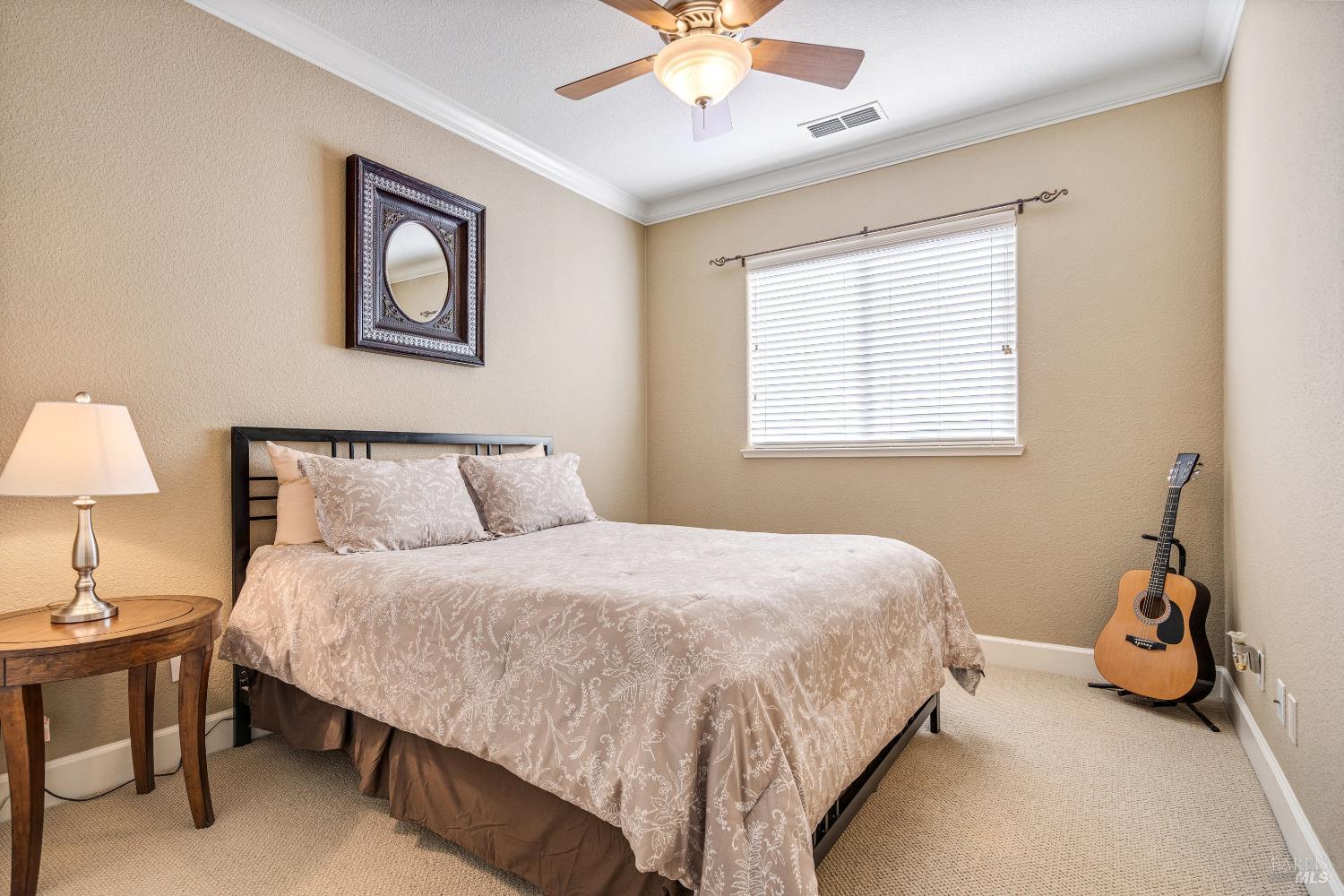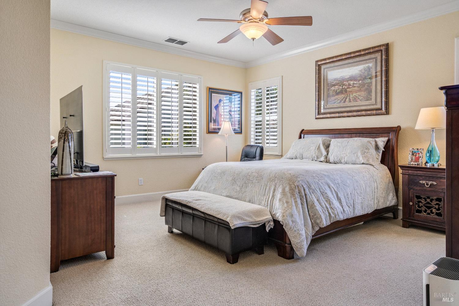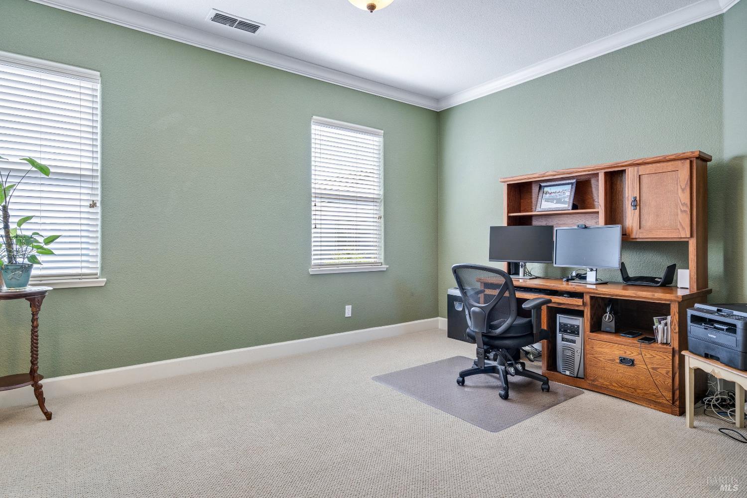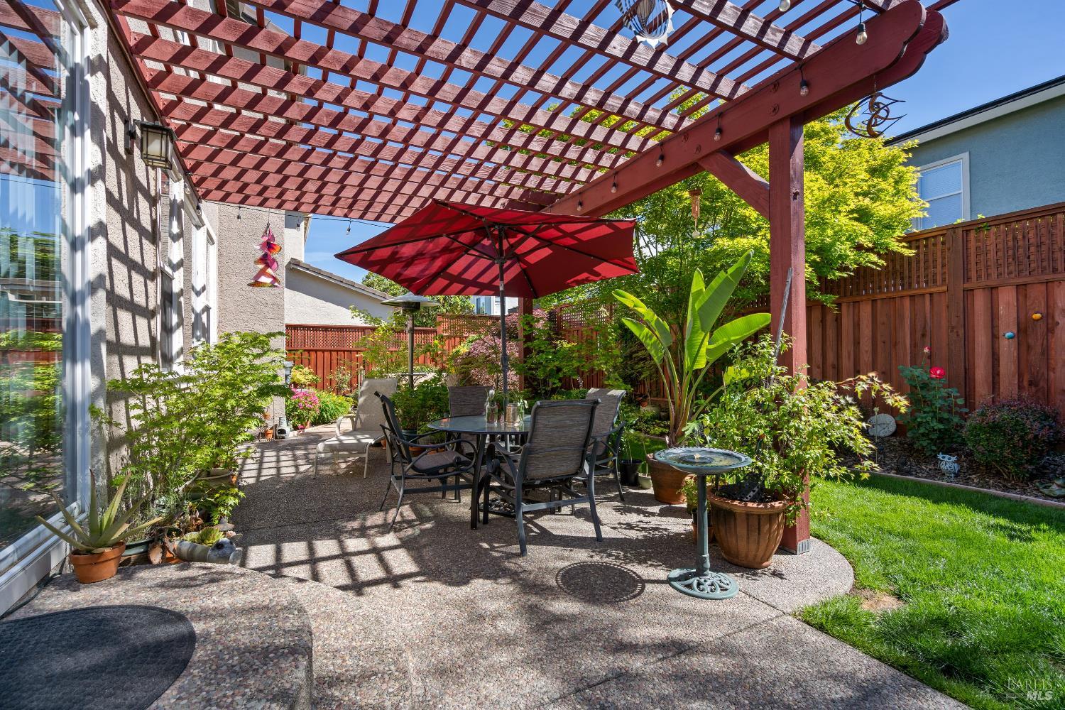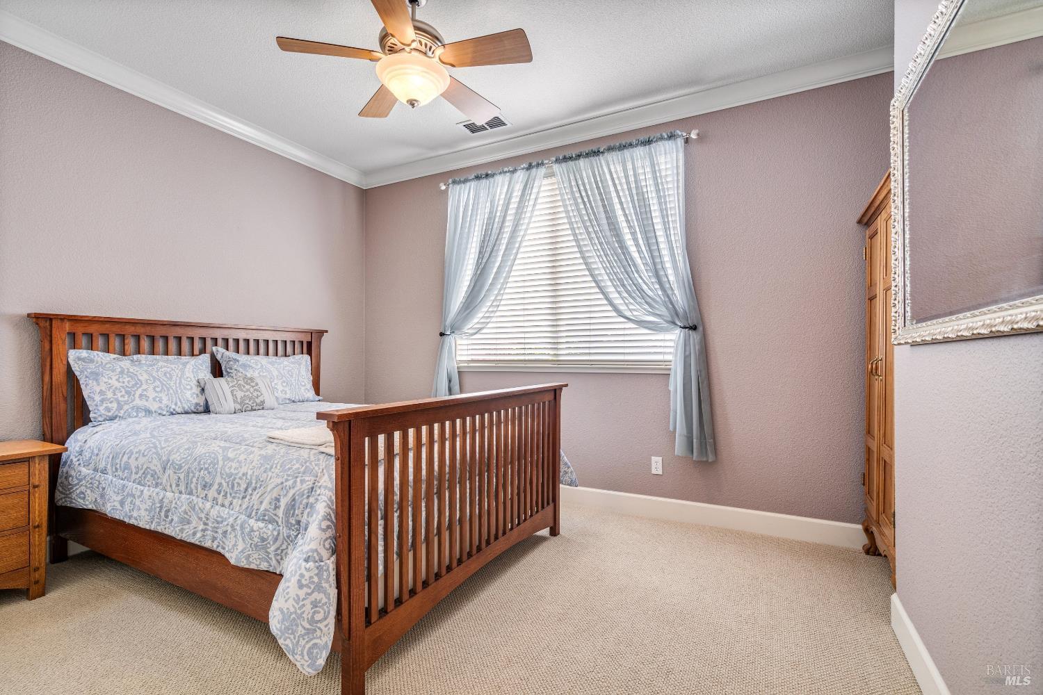 Welcome to this beautifully maintained 4-bedroom, 3 full-bath home offering thoughtfully designed living space that blends comfort, flexibility, and timeless style. Filled with an abundance of windows, the home is bright and inviting, with natural light flowing throughout the open-concept floor plan. Designed for both everyday living and entertaining, the spacious layout creates seamless connection between the kitchen, family room, and dining spaces. The heart of the home is the well-appointed kitchen featuring stainless steel appliances, a large center island, trash compactor, abundant cabinetry, and generous prep space. Just steps away, the formal dining room offers an elegant setting for gatherings, holidays, and dinner parties. Beautiful crown molding throughout adds warmth and sophistication, while surround sound speakers, ethernet connectivity, and dual-zone air conditioning provide modern convenience and comfort. A desirable downstairs bedroom and full bath offer flexibility for guests, extended family, or a private office space. Upstairs, one bedroom has been opened into a versatile loft/playroom/office area overlooking the main living space below. The expansive primary retreat offers a peaceful escape with plantation shutters, abundant natural light, and generous proportions. The oversized primary bathroom features dual vanities, a soaking tub, separate shower, and extensive counter space. A remarkably large walk-in closet provides exceptional storage and organization. Additional highlights include a rare 3-car garage configuration with a two-car garage on one side and a separate single-car perfect for storage, hobbies, or workshop space. Step outside into a private backyard retreat complete with a covered patio, mature trees, flowering landscaping, new fencing, dedicated gardening space and a relaxing hot tub. Whether hosting guests or enjoying a quiet evening outdoors, this backyard offers beauty, privacy, and year-round enjoyment. This home combines spacious living, thoughtful upgrades, and an entertainer-friendly layout in a setting designed to feel comfortable and inviting.