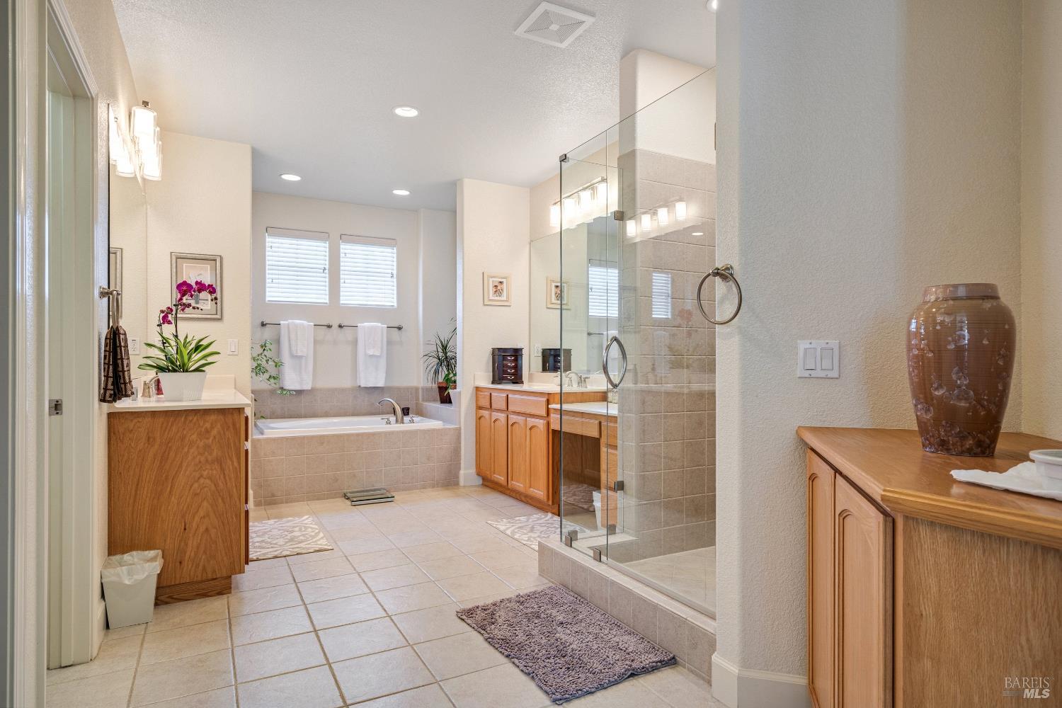 • Primary Bathroom Features Double Sinks,Shower Stall(s),Tub