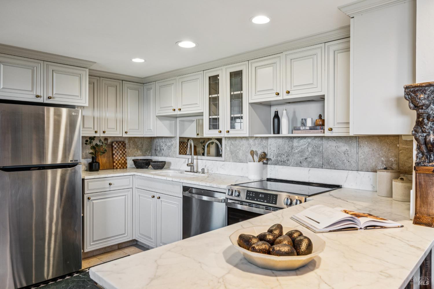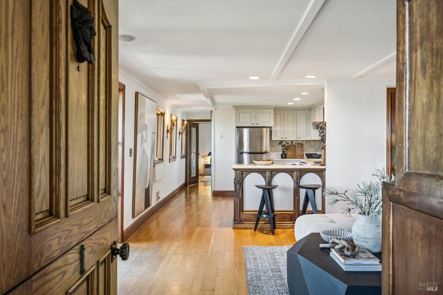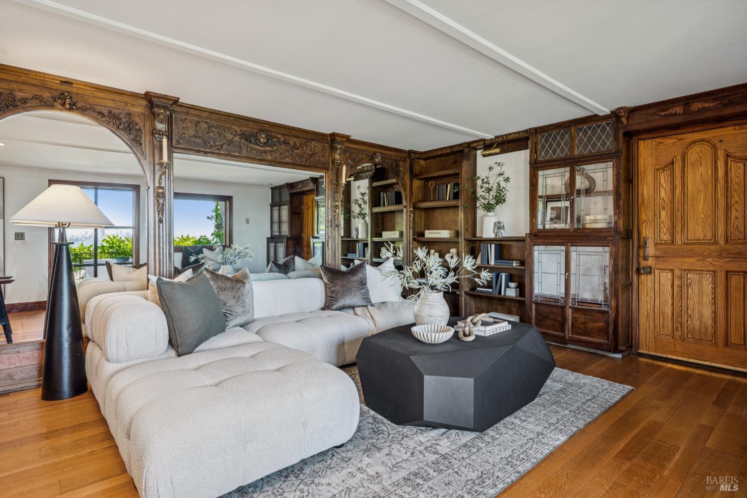 Located in a beautiful historic Mediterranean style building, Unit One at Villa Ladera offers sweeping views of Sausalito and the city skyline. This charming one bedroom, one bathroom residence features original built-ins, rich woodwork, and French doors opening to a spacious private patio ideal for outdoor dining and relaxing. Surrounded by lush gardens, the home feels peaceful and private while being just a short stroll to the waterfront, cafs, and ferry. Built in 1927, Villa Ladera blends timeless architecture with easy indoor outdoor living in one of Marin's most desirable locations. Parking included.