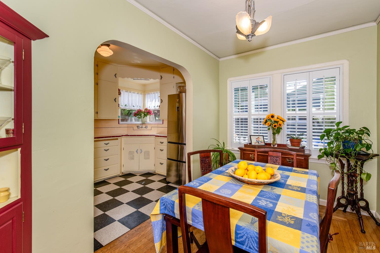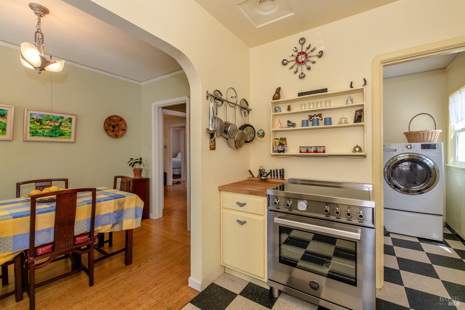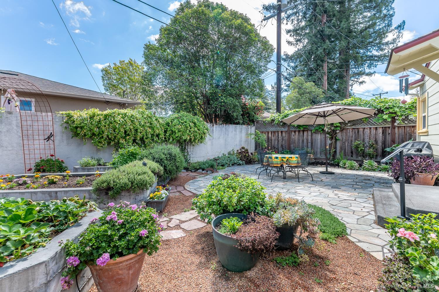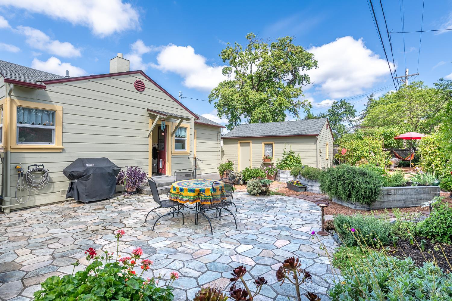 Welcome to this utterly charming 1938 cottage, tucked away on a quiet street where time seems to slow down. This 2 bd 1ba home offers 1,005 sq ft of pure sweetness, blending classic character with thoughtful updates. Step inside to find original hardwood floors, a cozy fireplace, and a coffered ceiling living room that adds timeless elegance and architectural interest. Dual pane windows create an abundance of light. The updated Bath offers modern convenience, hexagon tile flooring, tiled walk in shower while respecting the home's original charm. Indoor laundry room includes front loading washer Dryer. Kitchen with period tile, stainless steel induction range and refrigerator. Easy outside access to the fully landscaped backyard is where the magic begins. This is a Gardner's dream with raised beds, multiple fruit trees and flowering plants. Large Patio for peaceful entertaining. 2 car garage provides ample storage and parking. Ideally located for all of your needs. This home has been meticulously maintained and is unparallel to others. Time to downsize and move to this beauty.