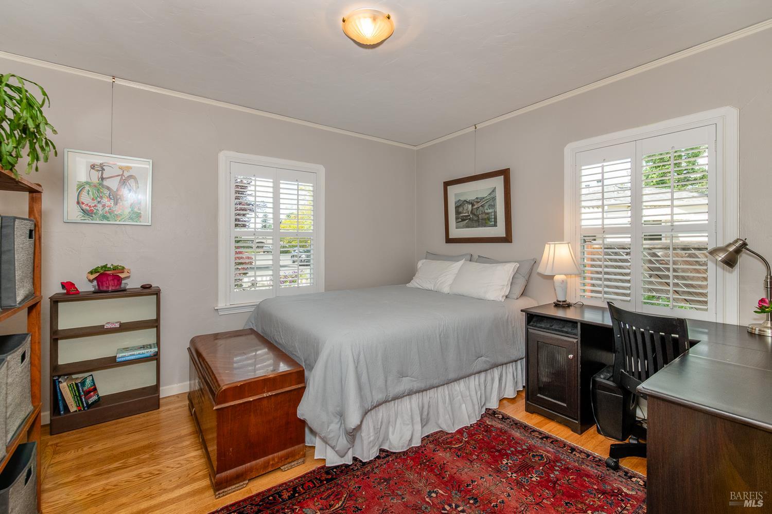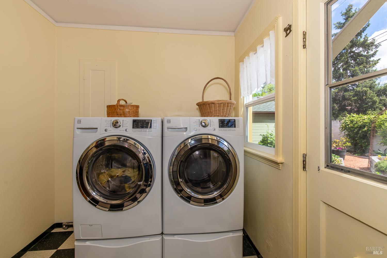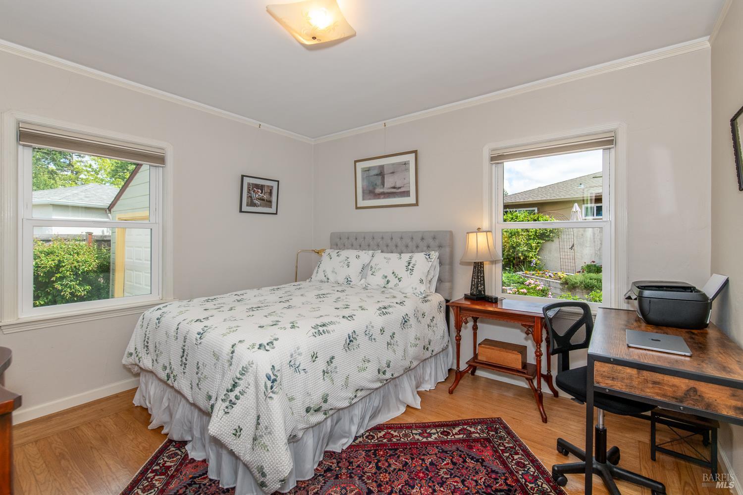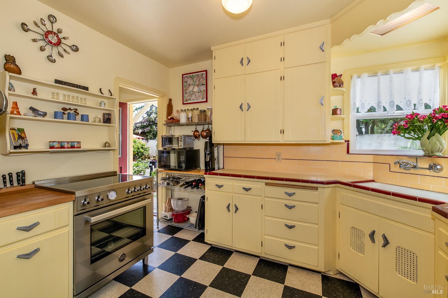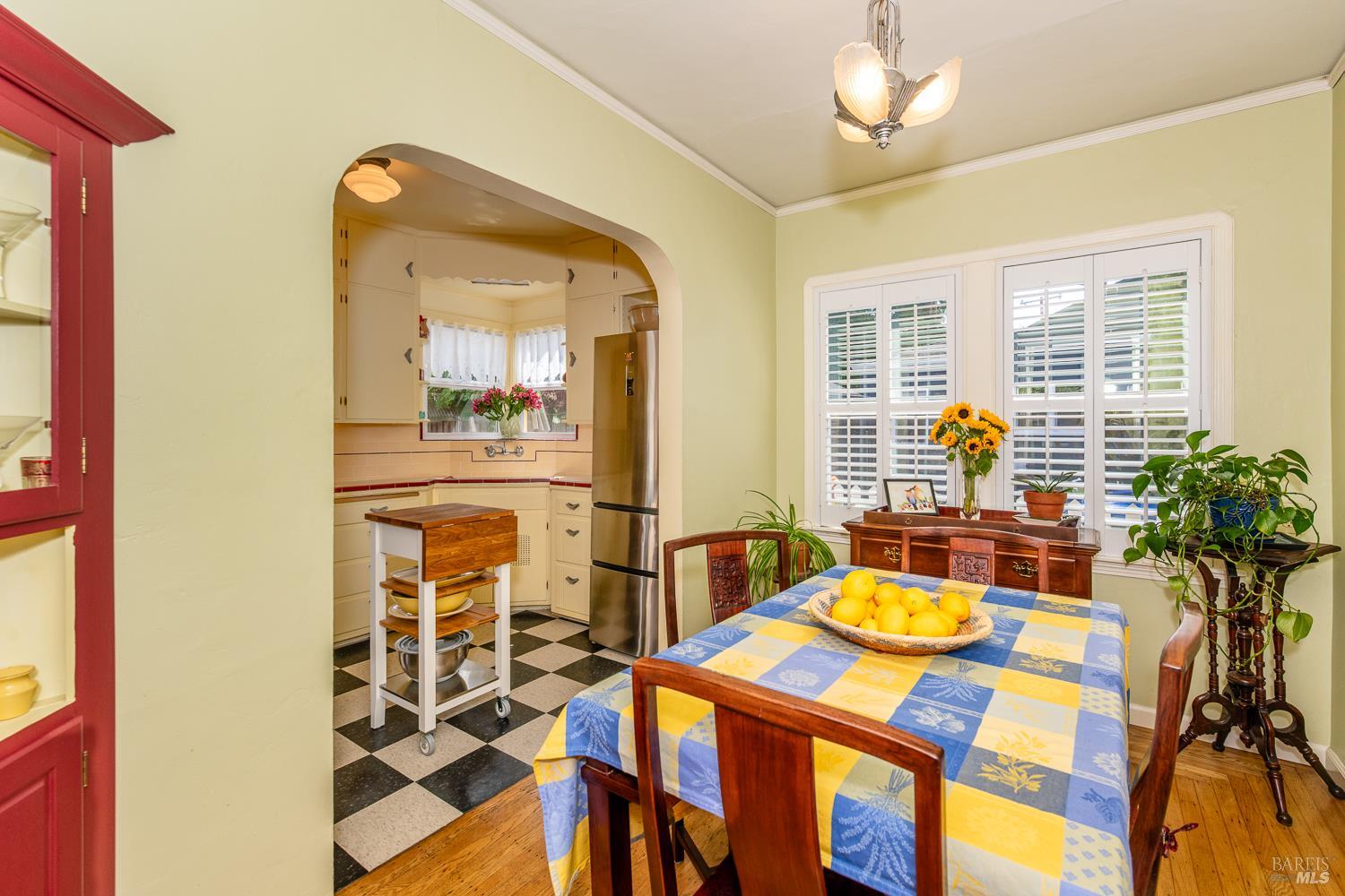 Welcome to this utterly charming 1938 cottage, tucked away on a quiet street where time seems to slow down. This 2 bd 1ba home offers 1,005 sq ft of pure sweetness, blending classic character with thoughtful updates. Step inside to find original hardwood floors, a cozy fireplace, and a coffered ceiling living room that adds timeless elegance and architectural interest. Dual pane windows create an abundance of light. The updated Bath offers modern convenience, hexagon tile flooring, tiled walk in shower while respecting the home's original charm. Indoor laundry room includes front loading washer Dryer. Kitchen with period tile, stainless steel induction range and refrigerator. Easy outside access to the fully landscaped backyard is where the magic begins. This is a Gardner's dream with raised beds, multiple fruit trees and flowering plants. Large Patio for peaceful entertaining. 2 car garage provides ample storage and parking. Ideally located for all of your needs. This home has been meticulously maintained and is unparallel to others. Time to downsize and move to this beauty.