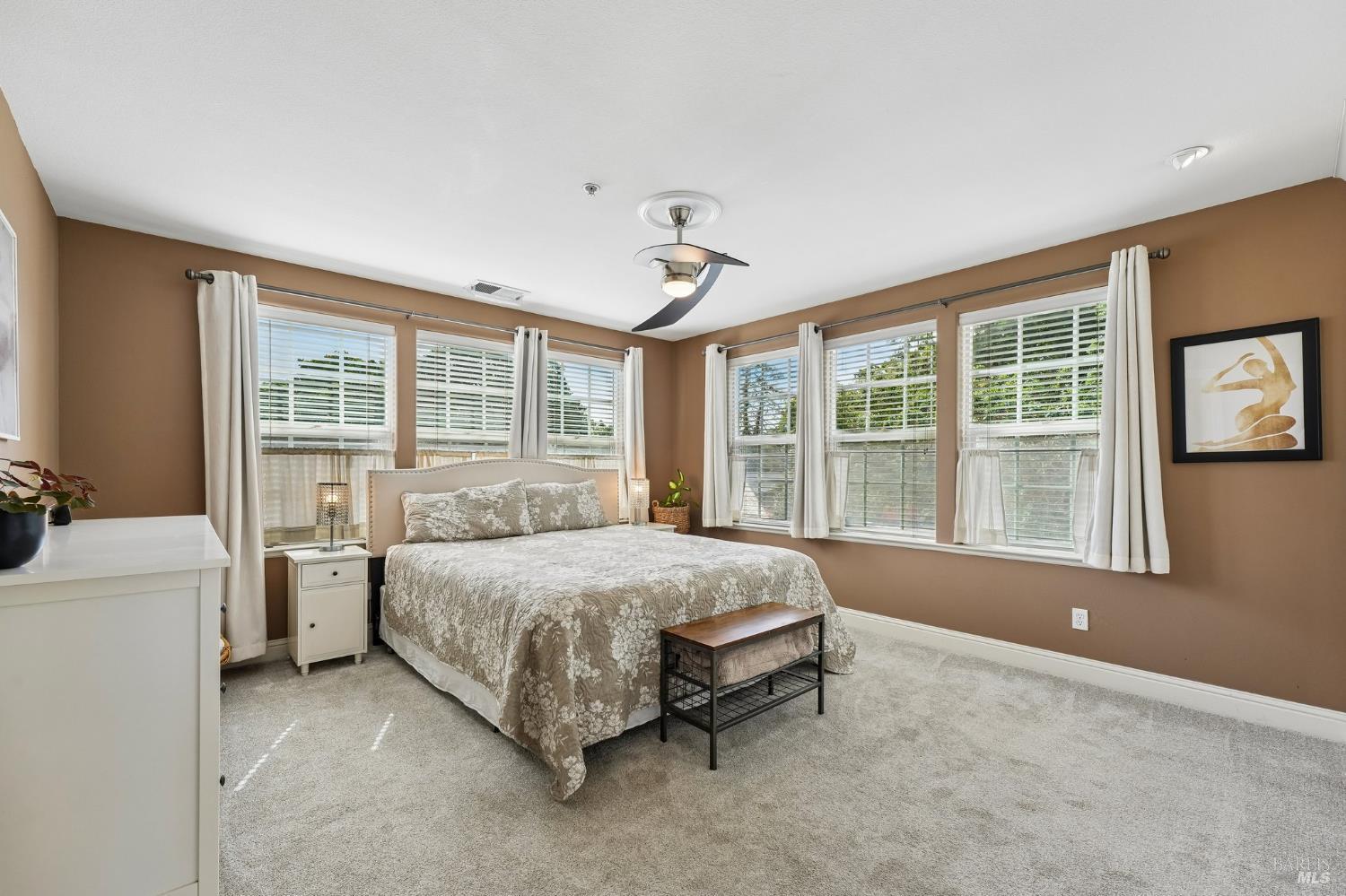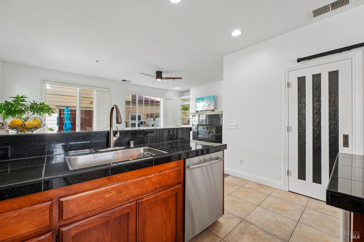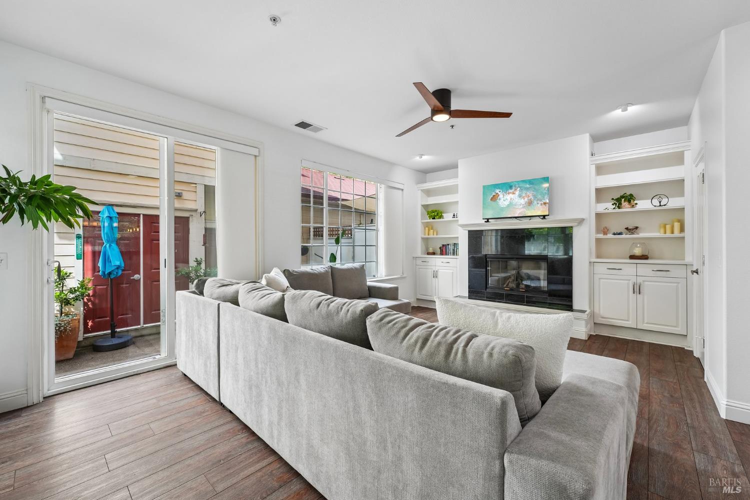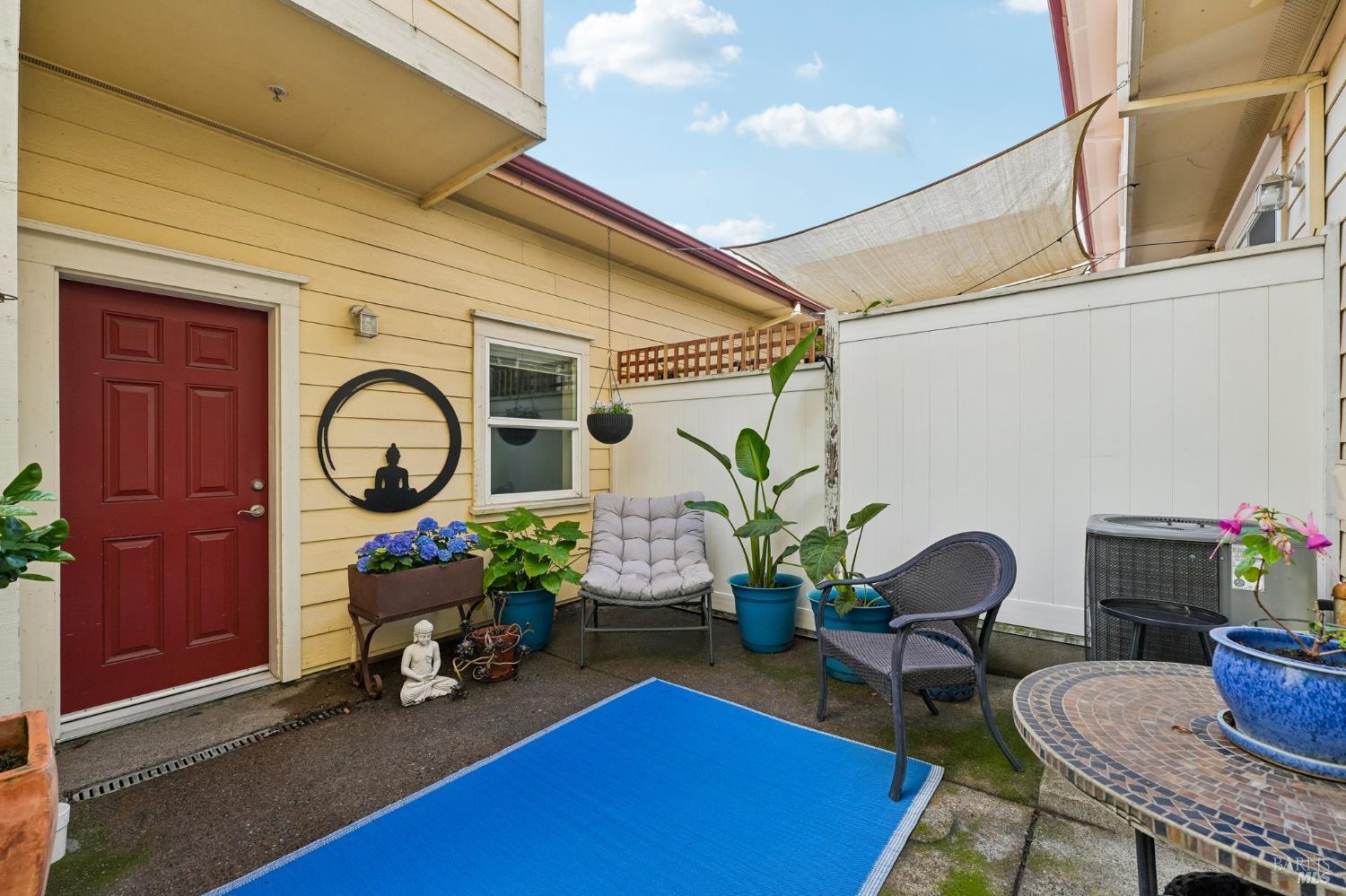 Located near Windsor's Town Green, this end-unit condo stands out for its layout, natural light, and especially appealing location. Set away from the busiest part of downtown, it offers a more tucked-away feel while still keeping restaurants, community events, the farmers market, and SMART train access close at hand. With 1,611+/- square feet, 3 bedrooms, 2.5 baths, a two-level floor plan, and a side-by-side 2-car garage, the home offers the comfort and function many buyers want but do not always find in condo living. The main level is open and inviting, with high ceilings, modern lighting, a gas fireplace, and a half bath off the great room. The kitchen opens directly to the living space and private courtyard patio, creating an easy flow for both everyday living and entertaining. Upstairs, the bedroom layout is practical and well separated, with a spacious primary suite that includes built-in storage, plus the added convenience of an upstairs laundry area. The private walk-up entry gives the home a more independent feel, and the end-unit placement adds to its overall appeal. HOA dues are $658 per month and include insurance on the structure, exterior and roof maintenance, common area and grounds maintenance, and professional management. For buyers looking for low-maintenance living on the Town Green without giving up space, light, or location, this home is truly set apart. The most compelling opportunity in downtown Windsor!