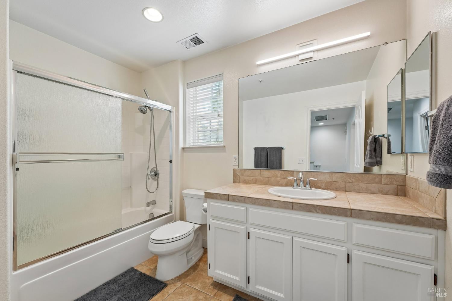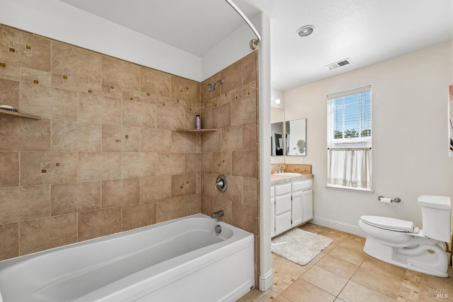 • Primary Bathroom Features Double Sinks,Tile,Tub w/Shower Over