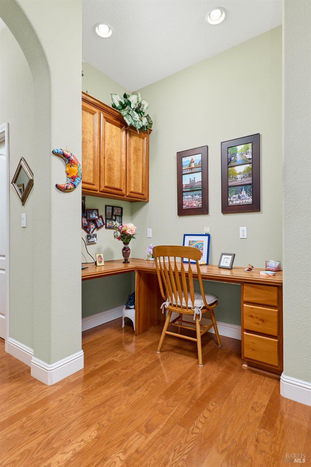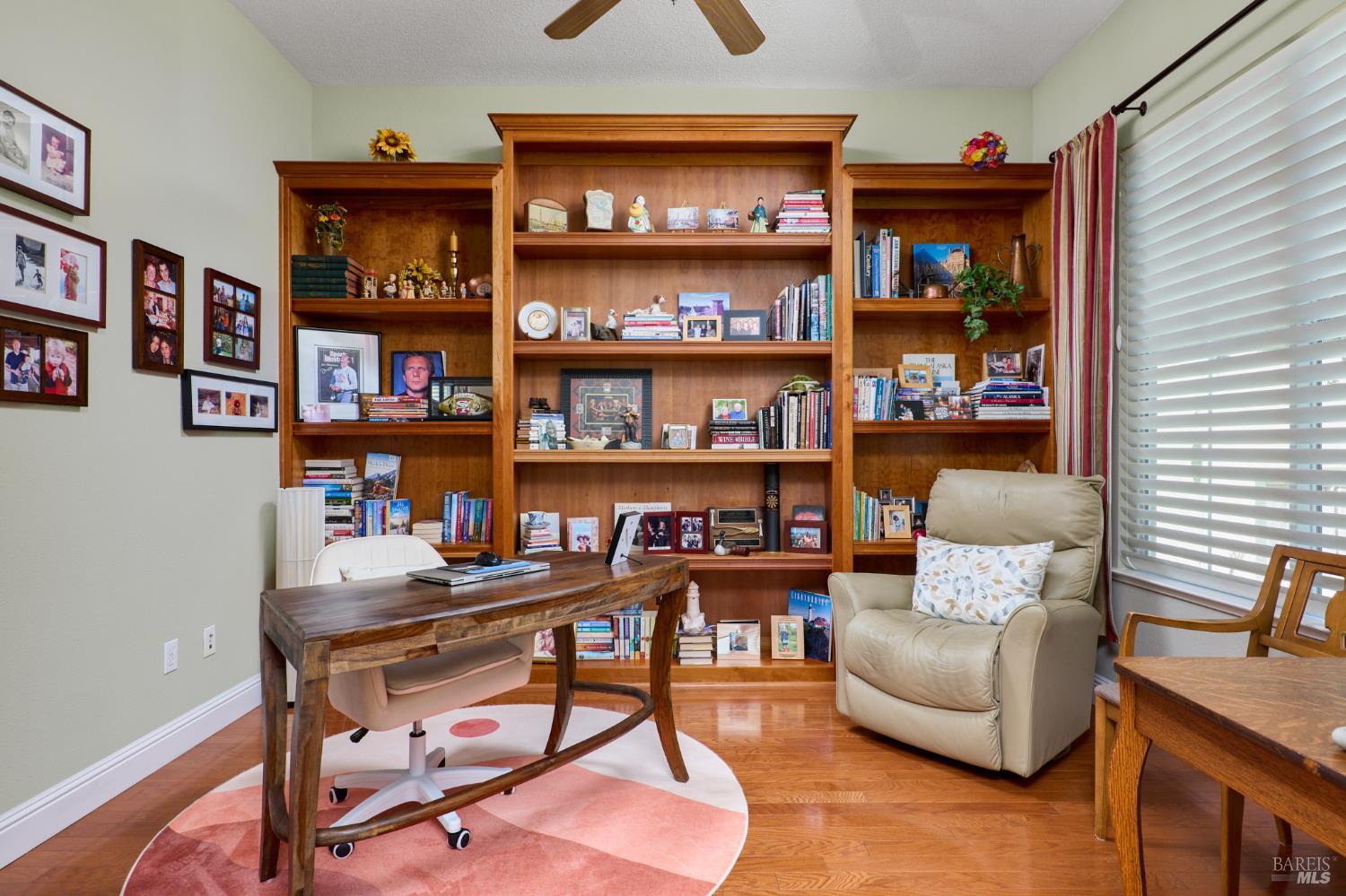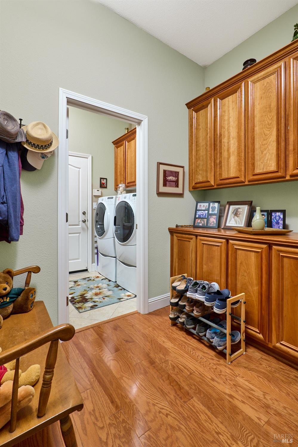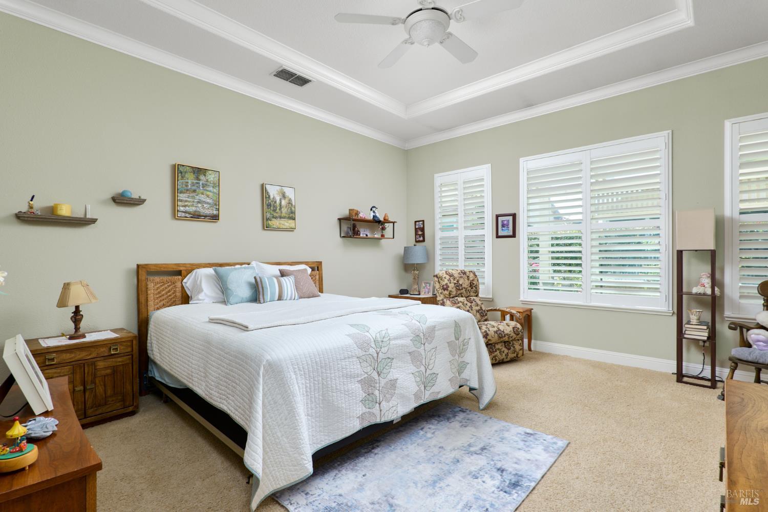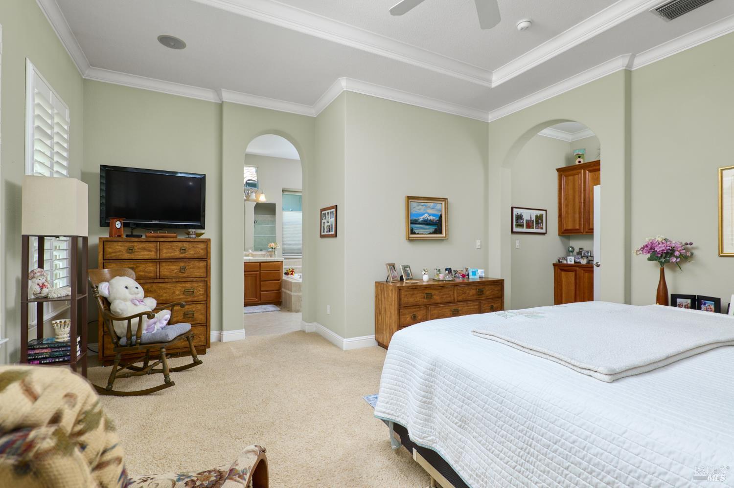Walking this neighborhood for several years, one would enjoy the beautiful landscape and effort this seller has put into their yard. With curb appeal all the way to the back fence, this home is a showplace! The use of color from the walls to the warm wood floors through most of the home will bring a smile to your face. This is the Asti plan done the way it should be! After marveling at the beautiful yard, you will enter through the custom glass front door to the family and dining rooms with a wall of windows and doors viewing onto the courtyard with a custom wood burning fireplace. What a great place to sit and share a beverage. Off the dining room is an office/den with built in bookcases and views to courtyard. Now into the great room you will be greeted by granite counters, clear finish cherry cabinets, stainless appliances with true double ovens, an electric cooktop (pre-plumbed for gas), over the range type micro/hood and dishwasher. The unique island has a rounded end to it and the custom pendant lights follow that flow from above. The adjacent breakfast nook sits near rear patio doors with white shutters peaking out to the back yard where the rounded look is carried through to the patio hard surface. Another highlight are the two peak-a-boo windows under the cabinets. Across from the kitchen, the family room sits with wine/beverage bar, fireplace and room for your entertainment center. Meander down the hallway a bit and you will see the tech area with built in desk and then a half bath. Continue to the bedroom wing and to the left is the primary suite with spacious bedroom, a grand bathroom with 2 separate walk-in closets two vanities and a large soaking tub and separate shower. To the right is a secondary bedroom/bathroom suite before you come to the indoor laundry room. Yes, this home has a lot, including a 2 car and a 1 car garage, a large patio with an Alumawood type patio cover surrounded by stunning grounds! Trilogy at Rio Vista is a gated community built around an 18-hole golf course that weaves through the development. There are clubhouses, indoor and outdoor pools, BBQ areas, an indoor walking track, a gym and spa, many club rooms, tennis/pickleball courts bocce and so much more. There are about 100 clubs and groups to be involved with. HOA dues do not include golf play.