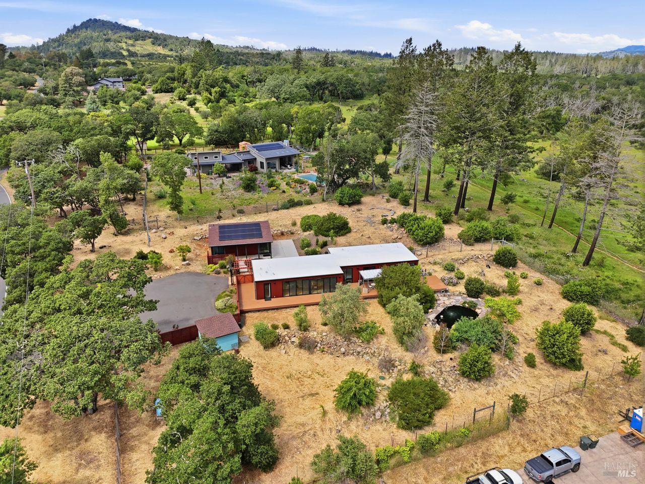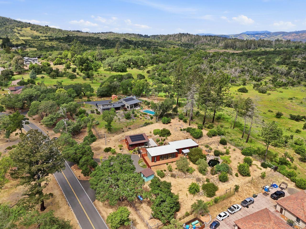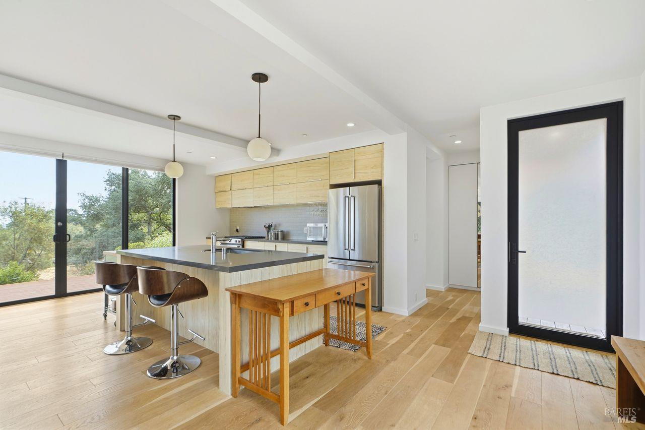 Welcome to 2663 Bennett Ridge, where peace, privacy, and natural beauty come together with effortless living. Set in a truly special neighborhood that feels worlds away from the hustle and bustle yet just minutes from Santa Rosa and the charming town of Glen Ellen this property is perfectly positioned in the heart of Wine Country. Built in 2019, this stunning single-story home offers 3 bedrooms and 2.5 bathrooms across 1,908 square feet of thoughtfully designed living space. An open floor plan, bamboo flooring, walls of glass, and abundant natural light create a seamless connection between indoor comfort and the surrounding landscape. Situated on 1.08 acres, the property is a nature lover's dream. Enjoy expansive views, decking, an artist's studio, storage building and a spectacular natural koi pond with waterfall, all backing directly to Trione-Annadel State Park and the Ridge Trail, offering unparalleled access to hiking and outdoor adventure right from your backyard. Energy efficiency and modern upgrades are key highlights, including a heat pump system, on-demand water heater, and fully paid solar providing comfort, sustainability, and long-term savings. 2663 Bennett Ridge is more than a home it's a peaceful retreat where style, serenity, and the beauty of Wine Country living truly shine.
