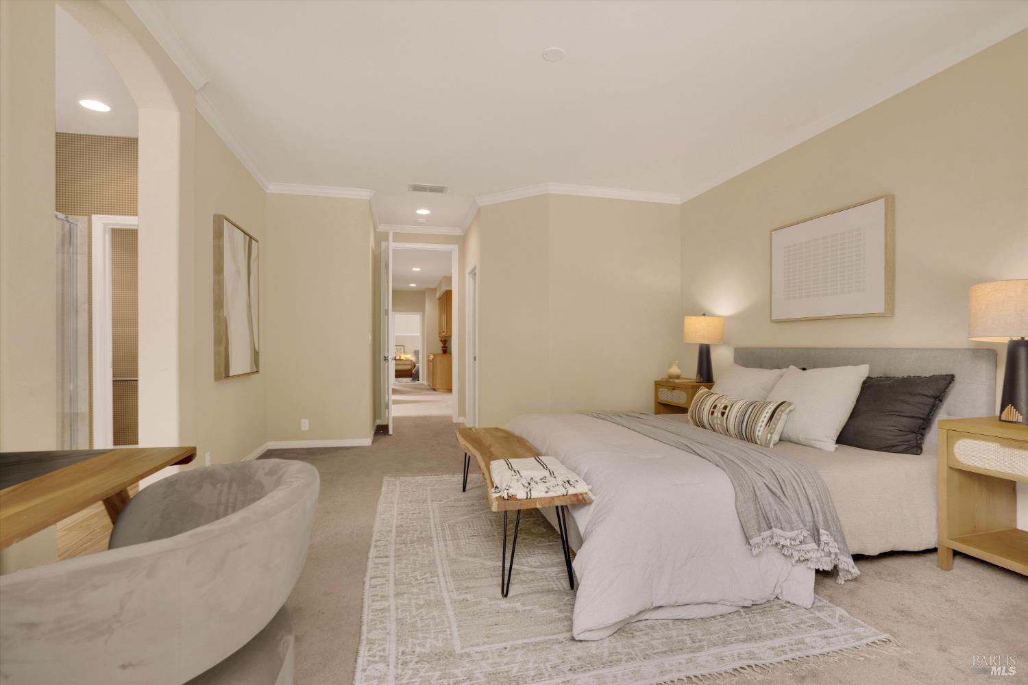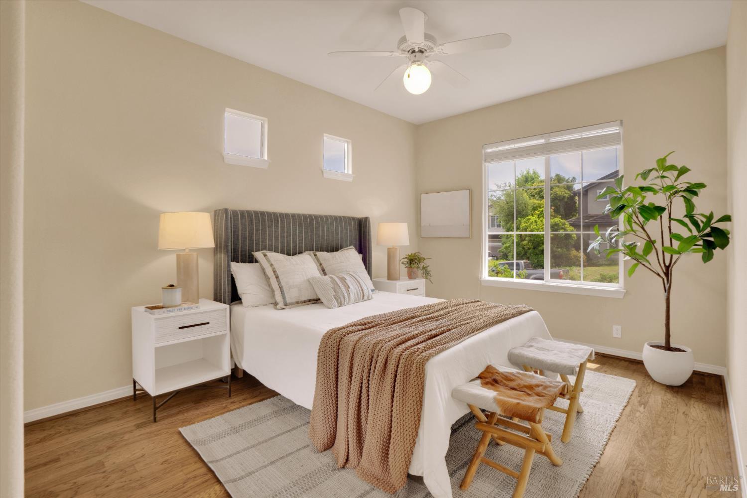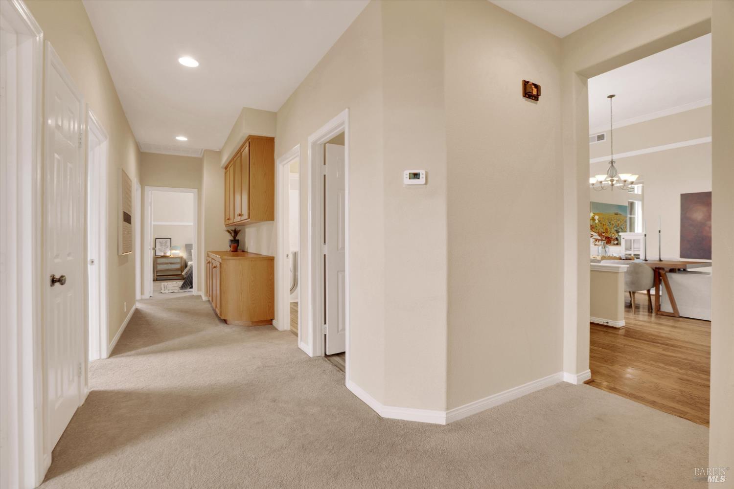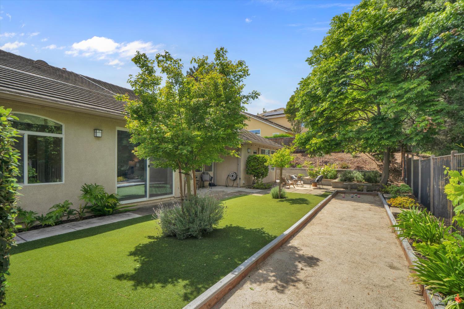Tucked on a quiet cul-de-sac this single-story, sought-after beautifully maintained home offers privacy with no rear neighbors. Sunlight fills the space through tall ceilings and expansive windows. The kitchen features granite slab counters, stainless steel appliances, and a wine refrigerator that is perfect for entertaining. As a former model home, it showcases custom built-ins and detailed trim throughout. A flexible office offers the option for a 5th bedroom. Newer solar panels with Tesla battery back-up helps keep costs low on the utility bills. The beautiful landscaping is low-maintenance provides a serene environment. There is a practice bocce ball court in the back yard! 487 Gray Court is just moments from Benicia Community Park and award-winning Matthew Turner Elementary and all major freeways.